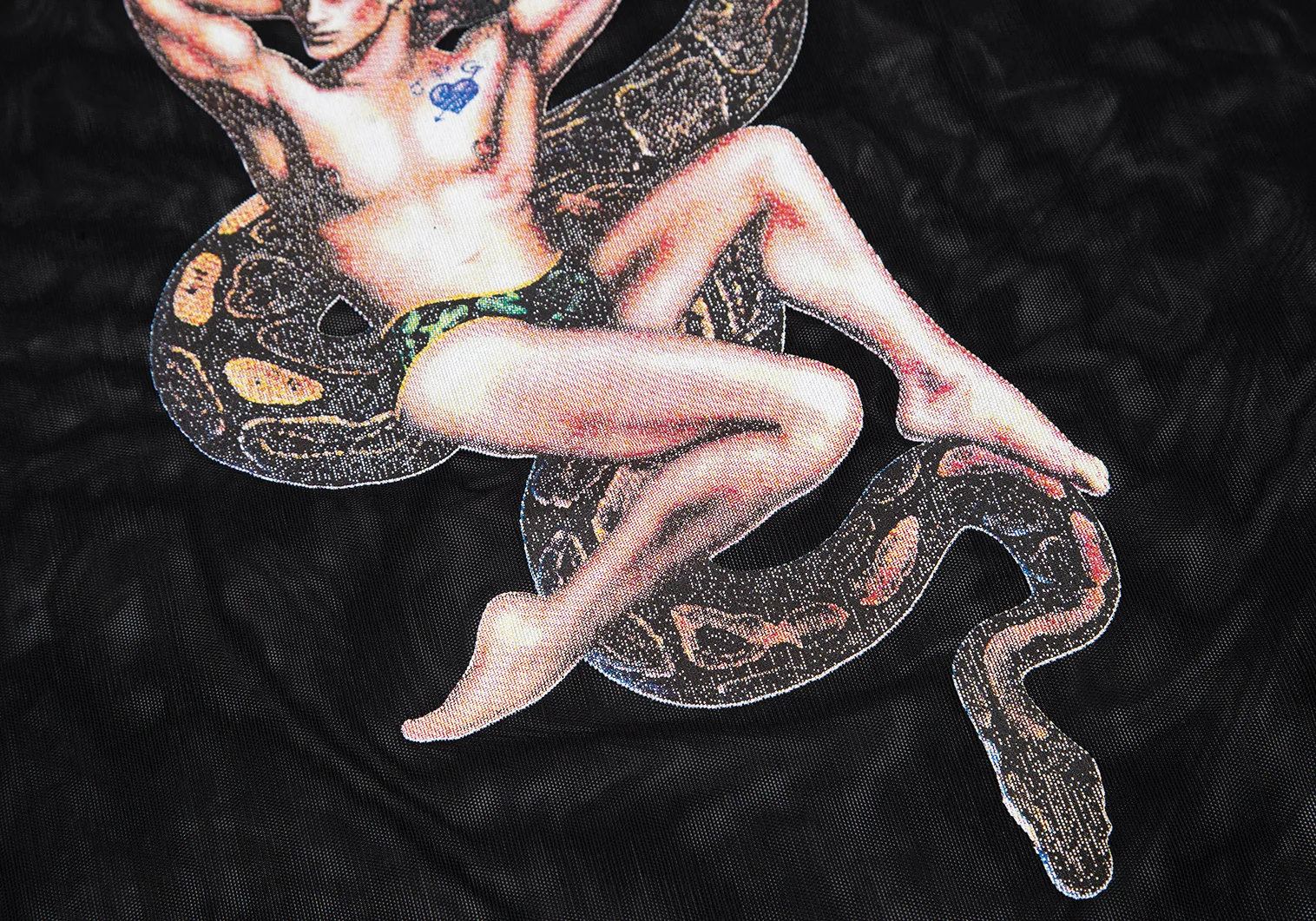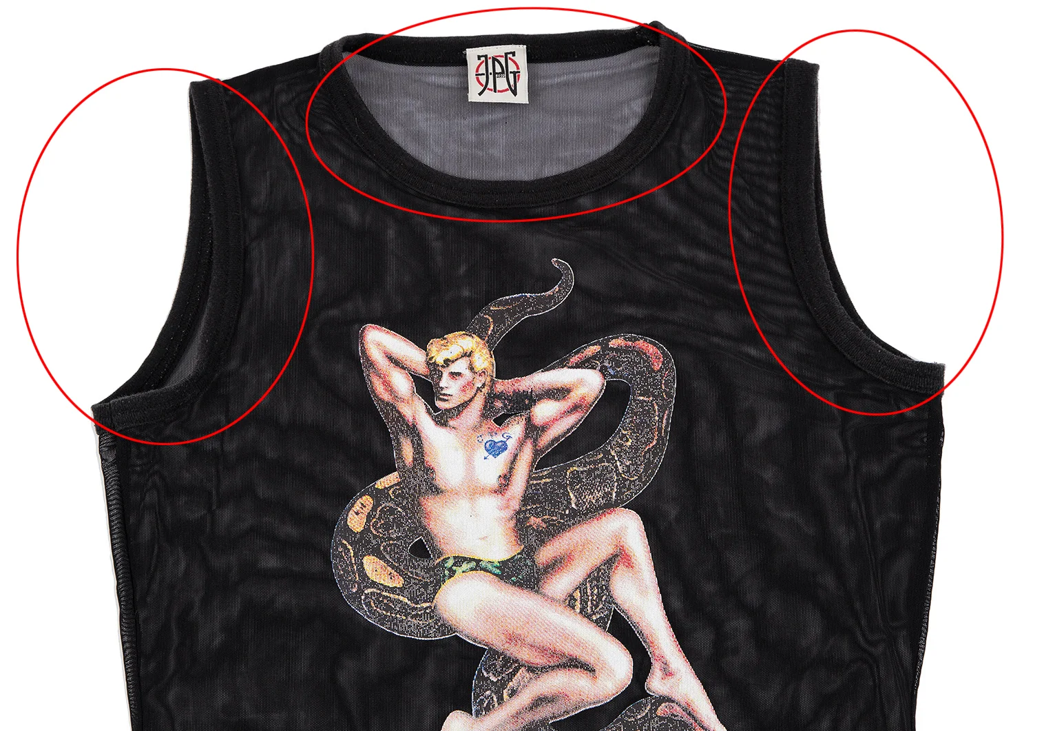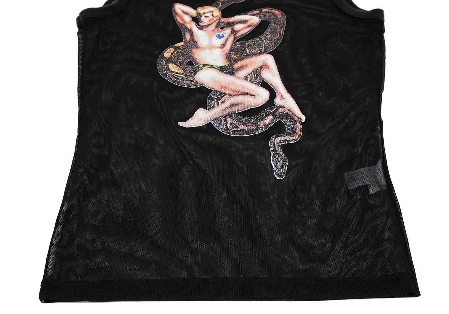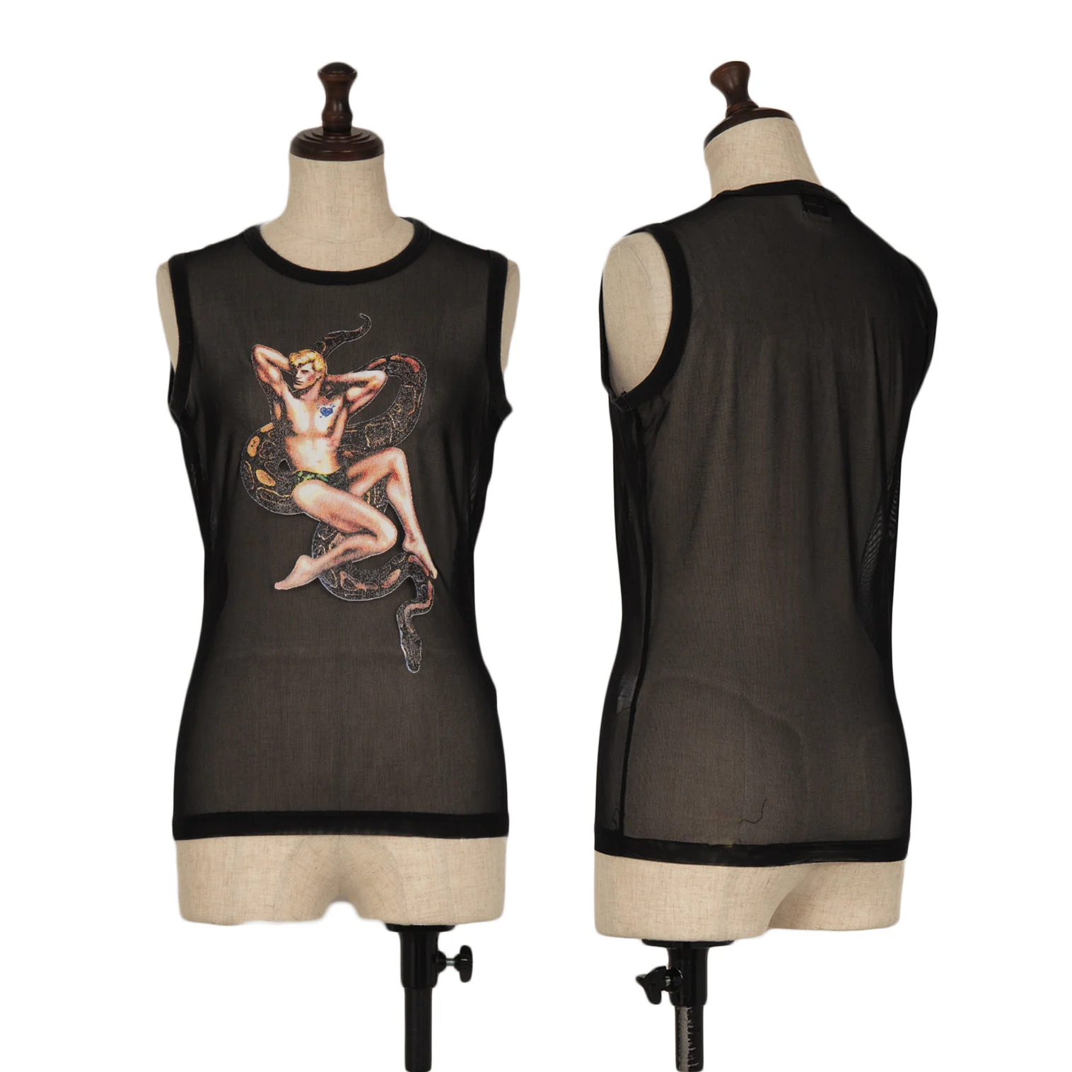 ジャンポールゴルチエJean Paul GAULTIER PARIS スネークガイラバープリントパワーネットタンクトップ 黒40