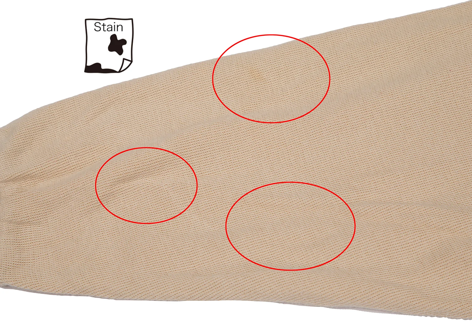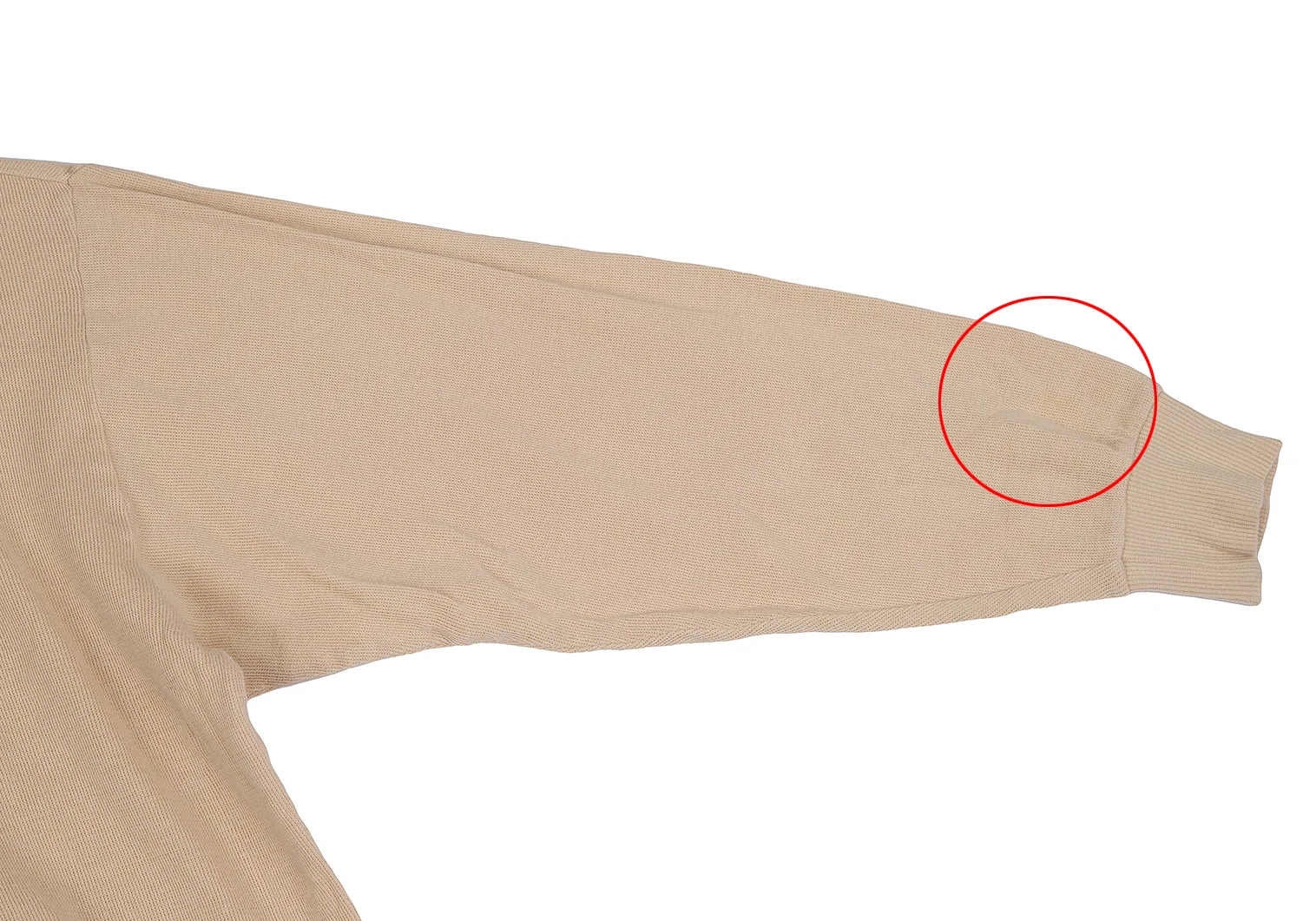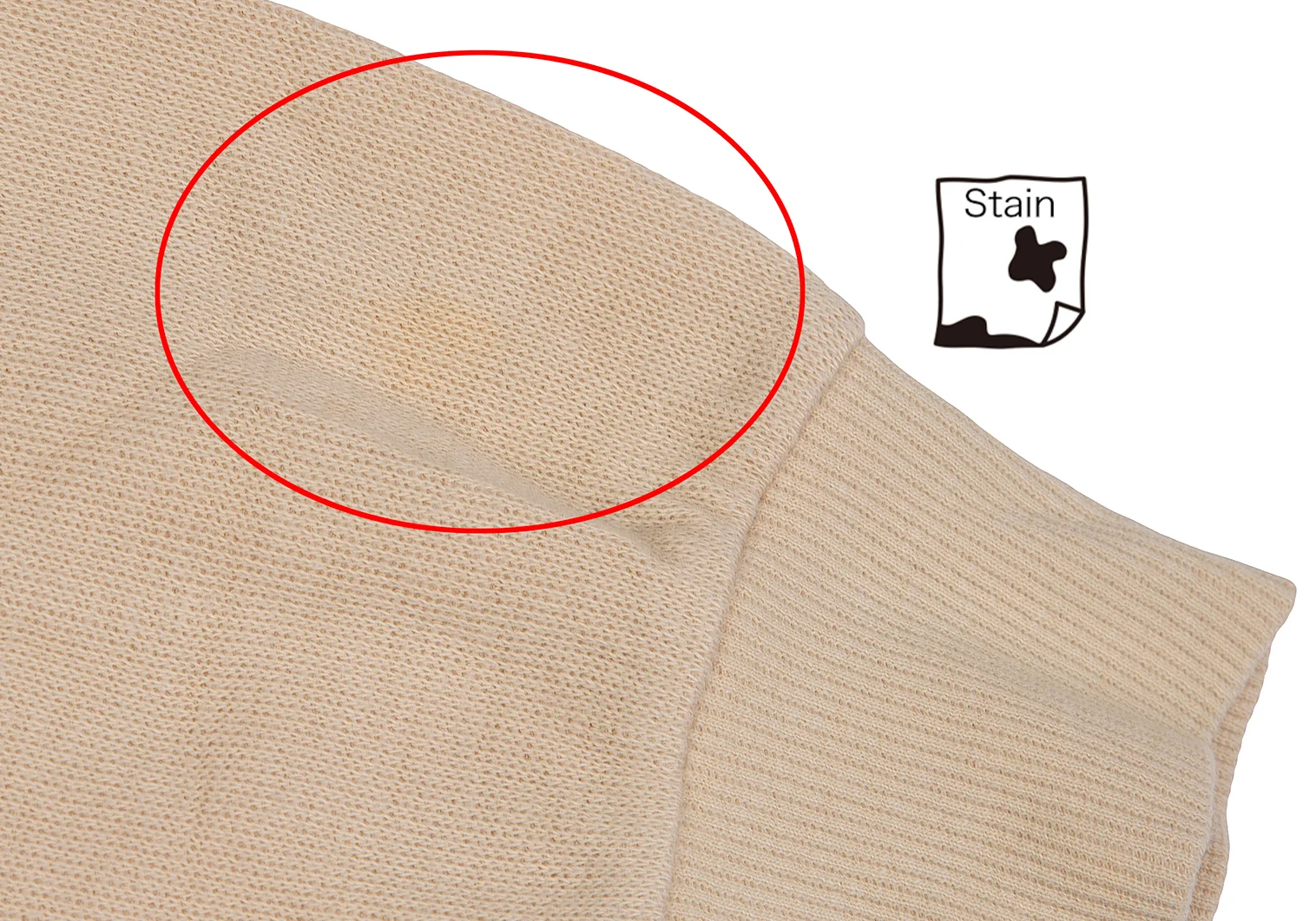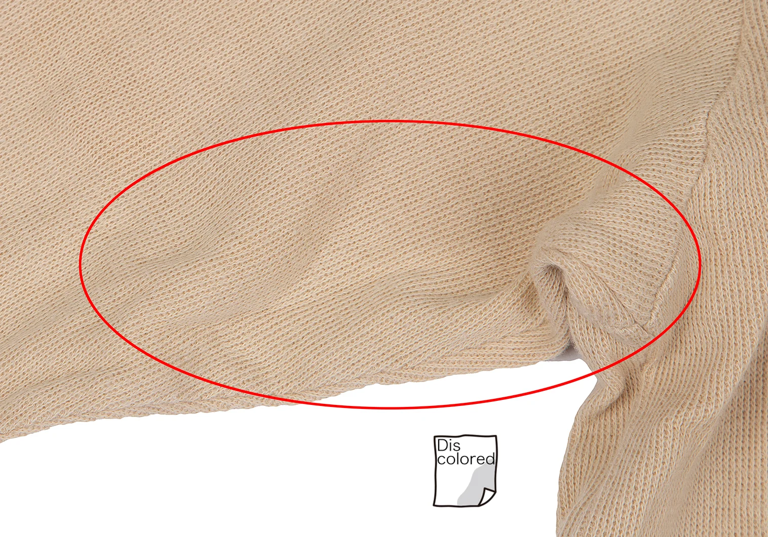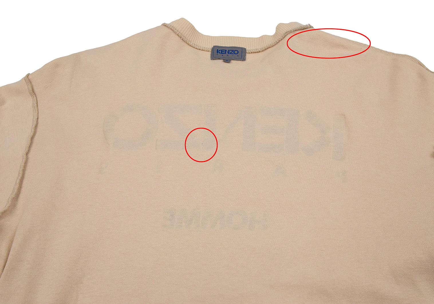 着用感、袖にシミ・色褪せ、裏側の肩・プリント部にダメージがあります(写真参照)。クリーニング済み