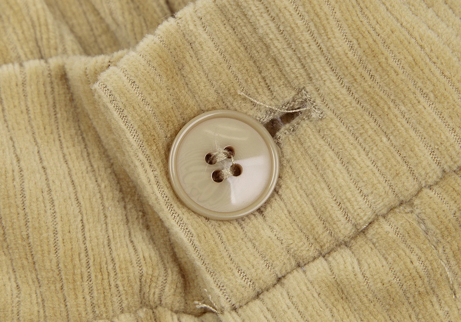 前右腿に薄シミがあります(写真参照)。その他目立ったシミ、汚れ、ほつれ等なくいい状態です。クリーニング済み