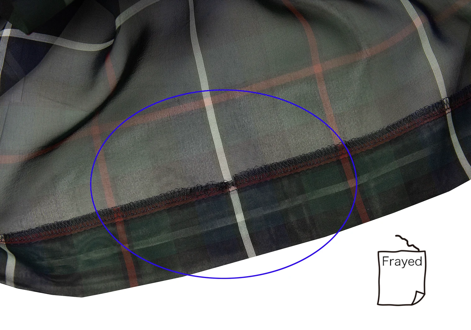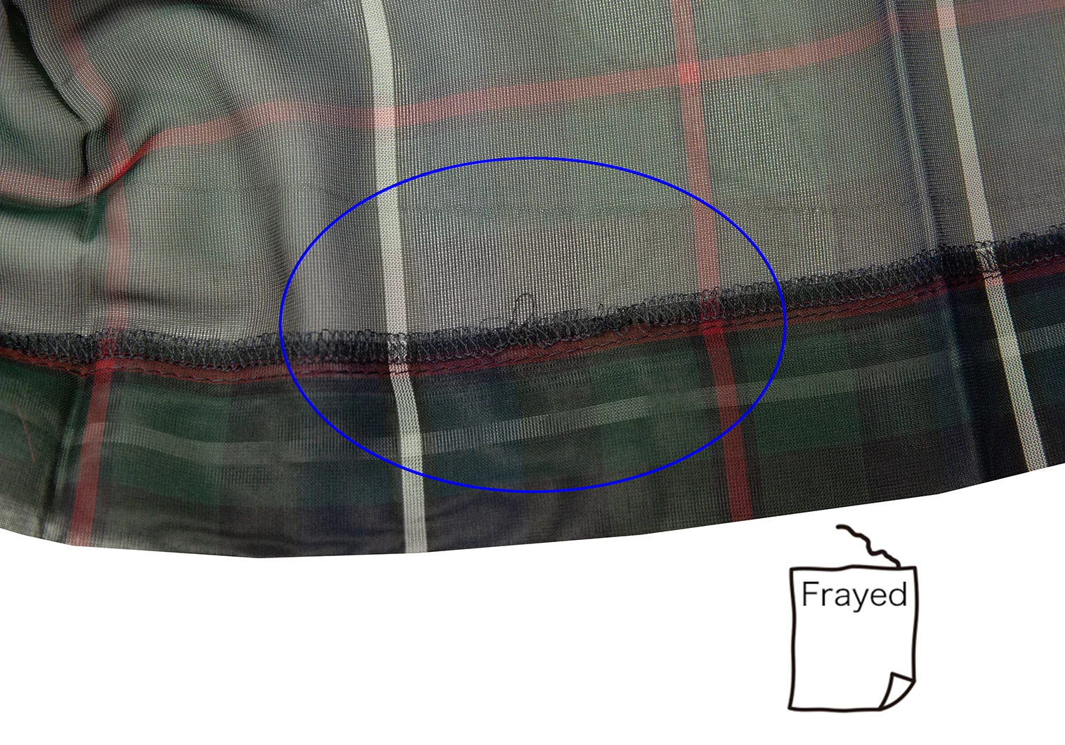 透け感があります。裾裏ロックに所々ほつれがあります。(写真参照)その他目立ったシミ、汚れ、ほつれ等なくいい状態です。クリーニング済み