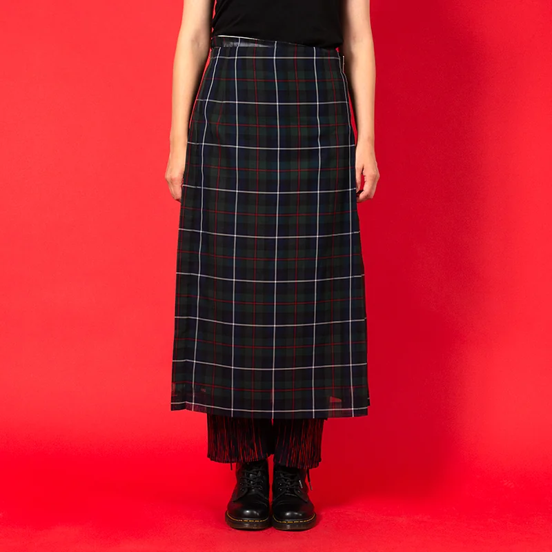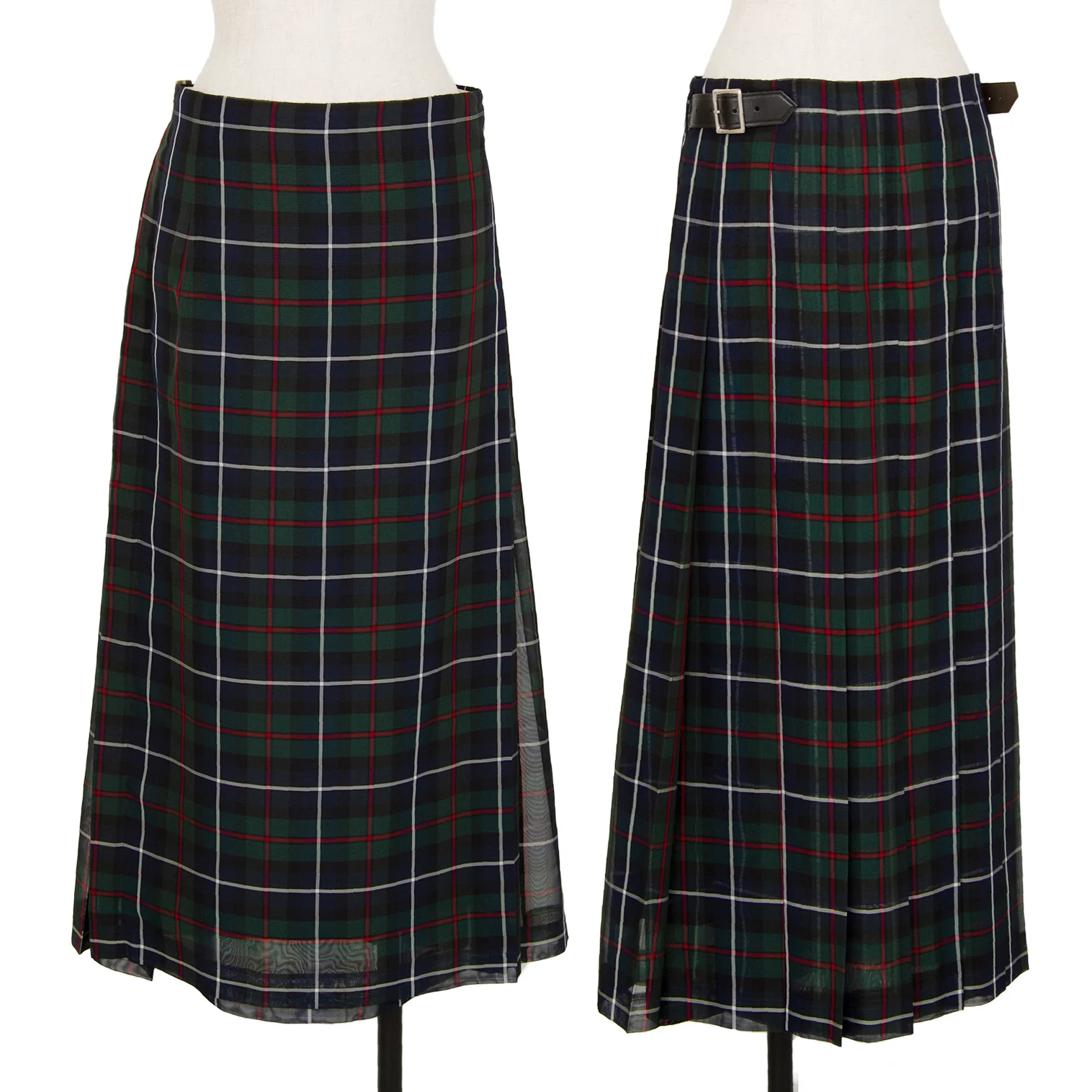 コムデギャルソンCOMME des GARCONSタータンチェックシースルーラップスカート 緑紺赤M