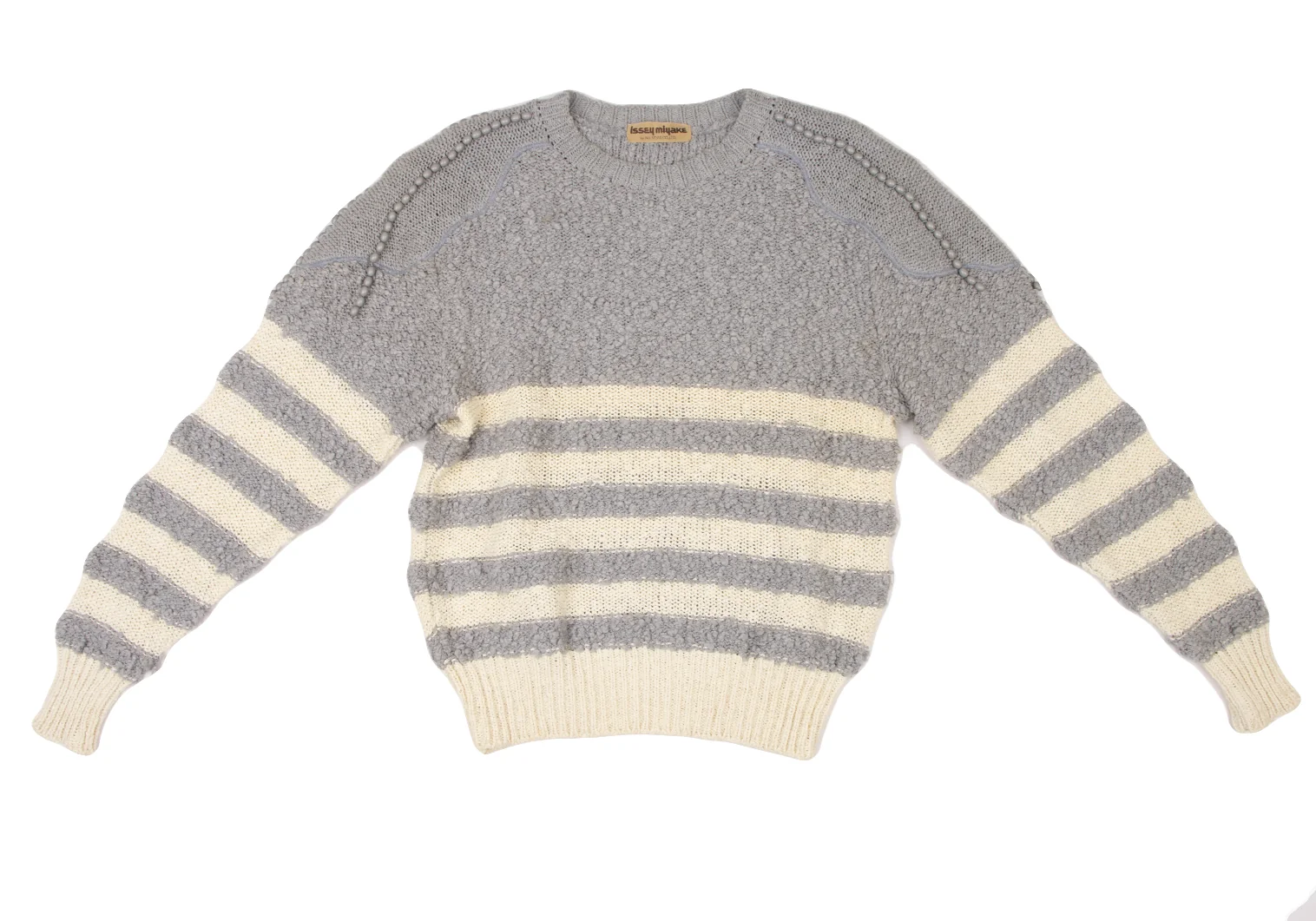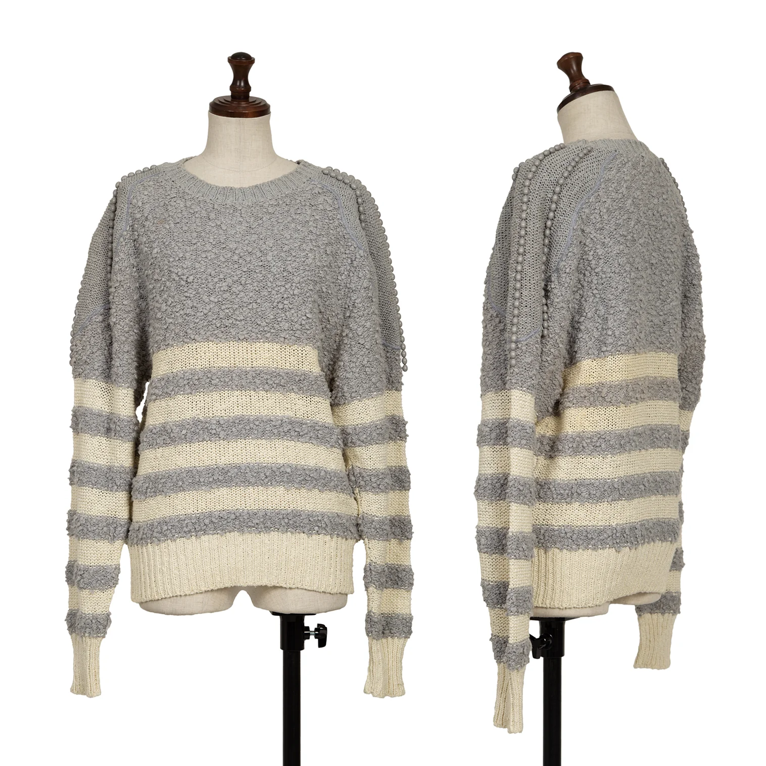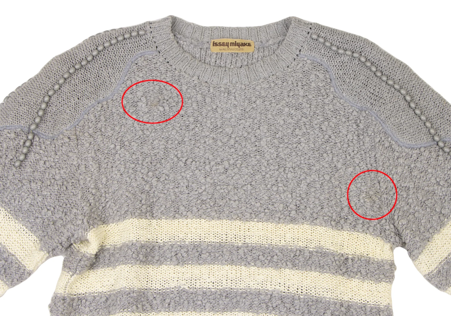 イッセイミヤケISSEY MIYAKE ビジュー装飾ボーダー織りニットセーター ブルーグレークリームM位