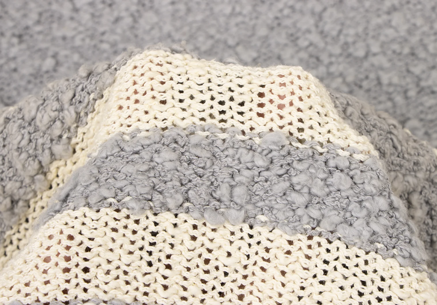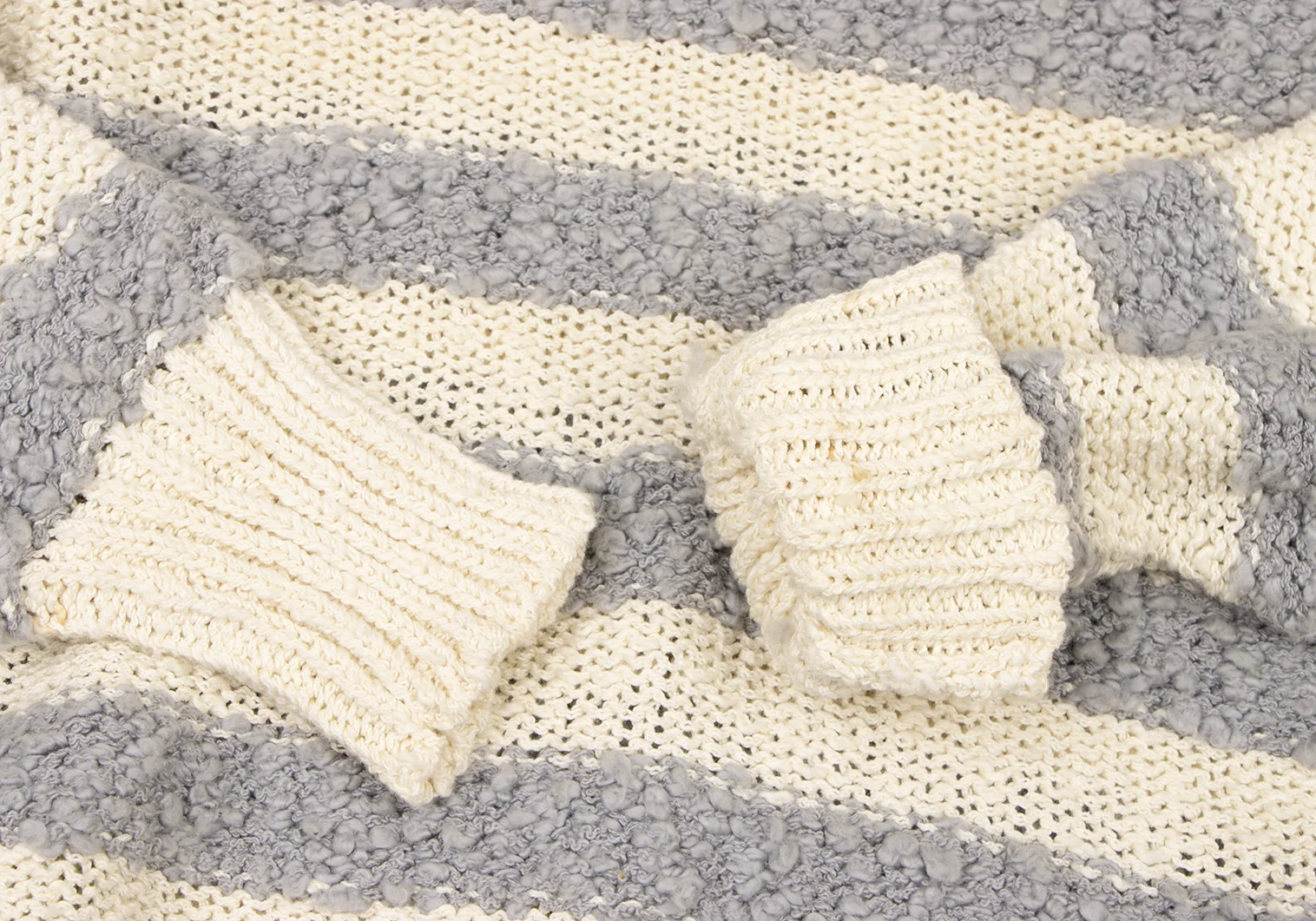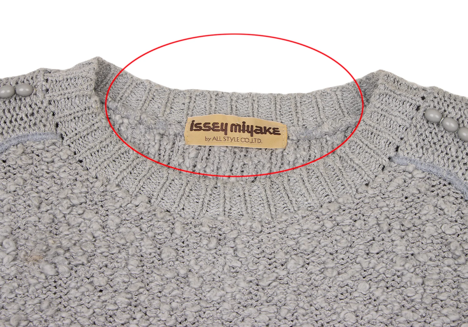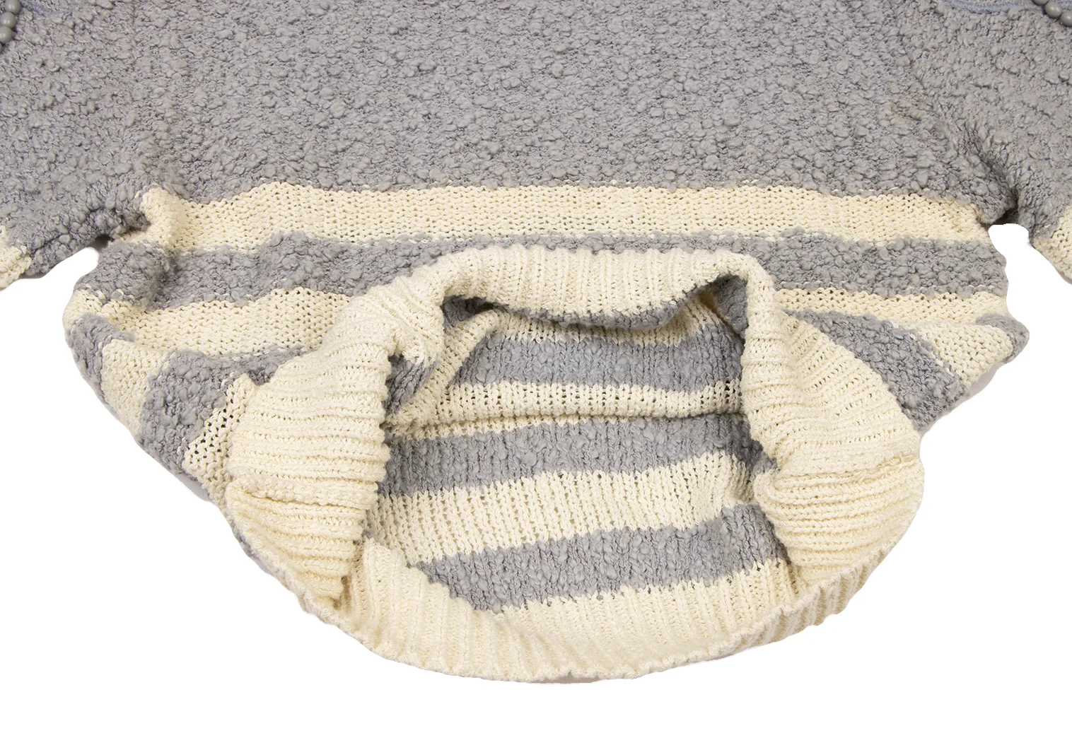 イッセイミヤケISSEY MIYAKE ビジュー装飾ボーダー織りニットセーター ブルーグレークリームM位