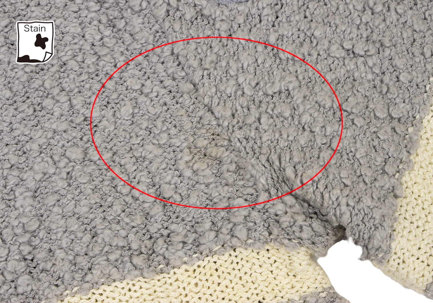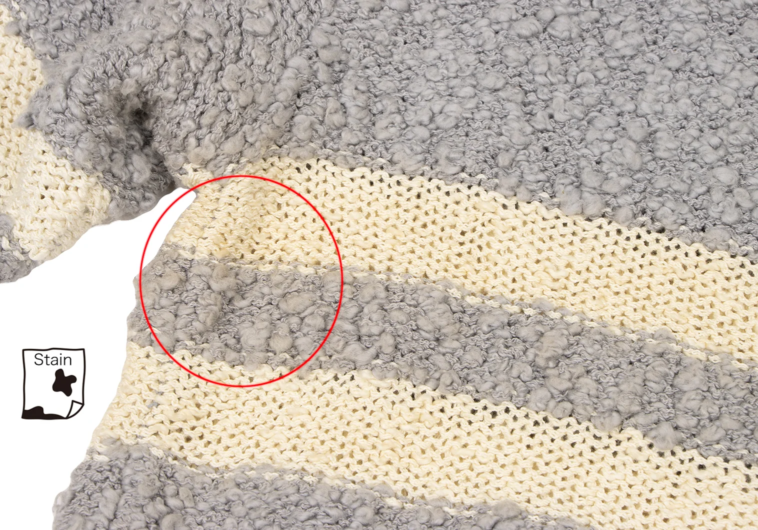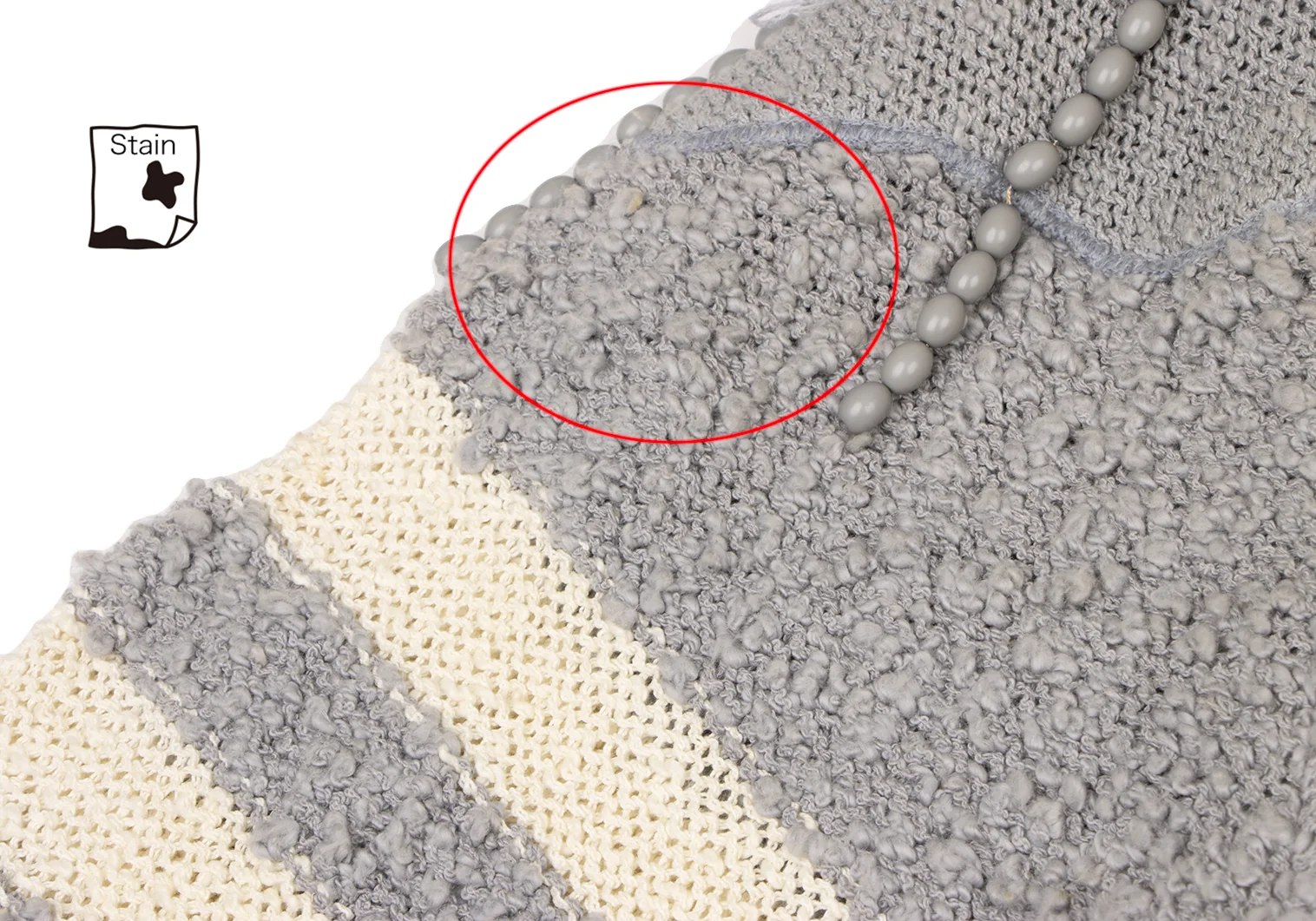 品質タグがありません。透け感があります。襟ぐりに汚れ、所々にシミがあります(写真参照)クリーニング済み