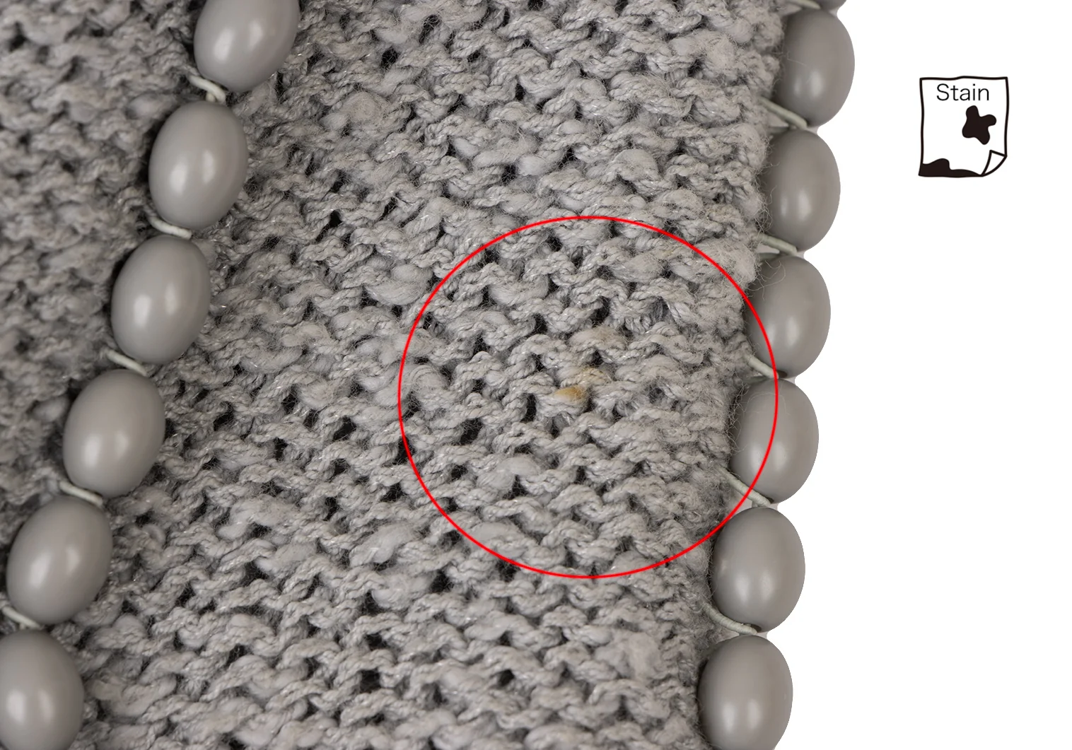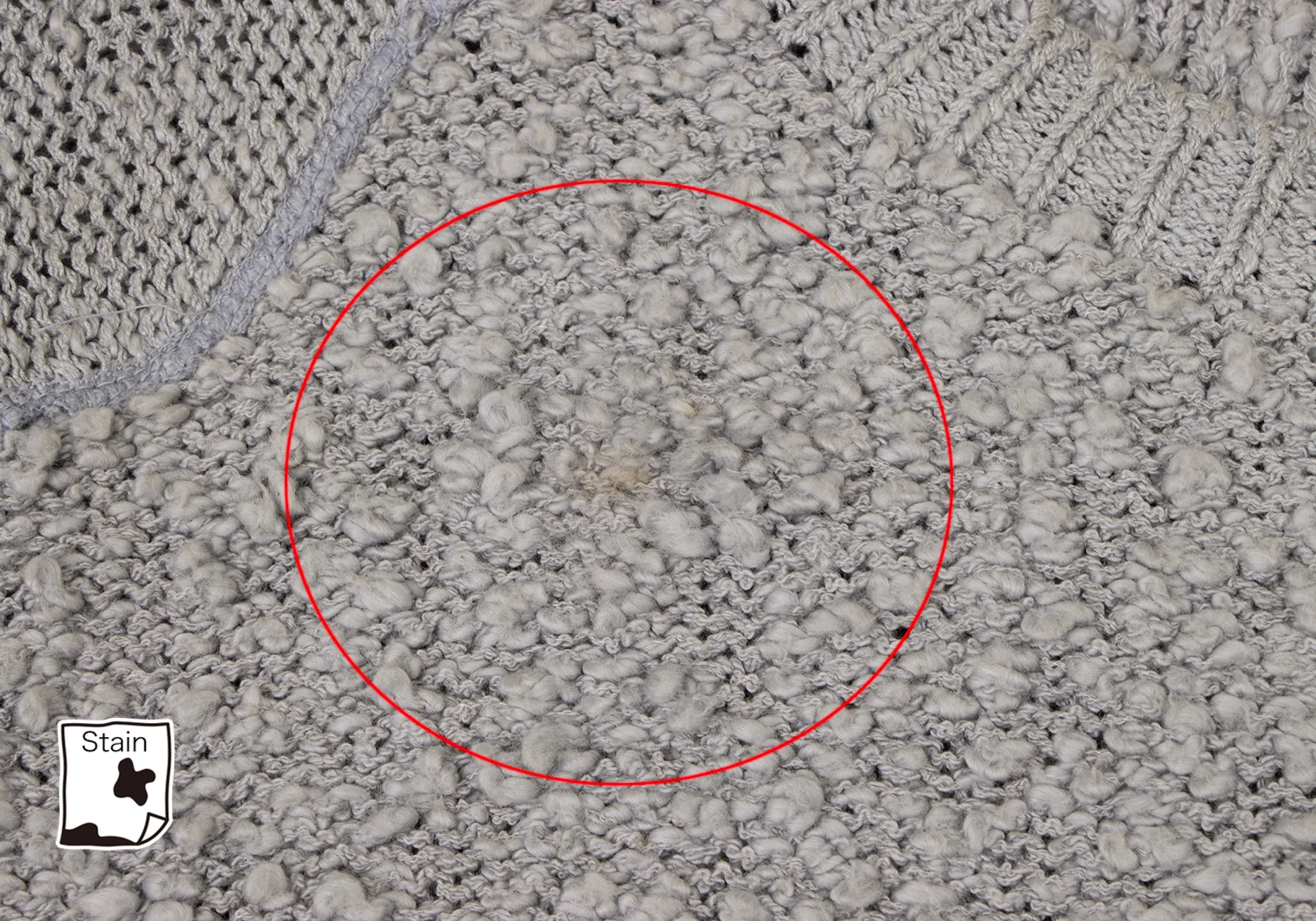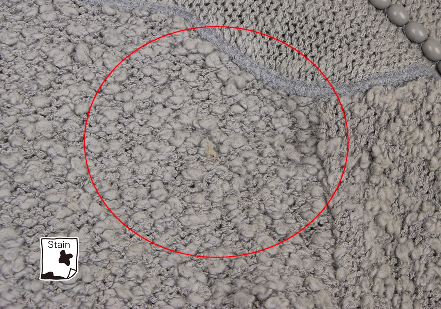 品質タグがありません。透け感があります。襟ぐりに汚れ、所々にシミがあります(写真参照)クリーニング済み