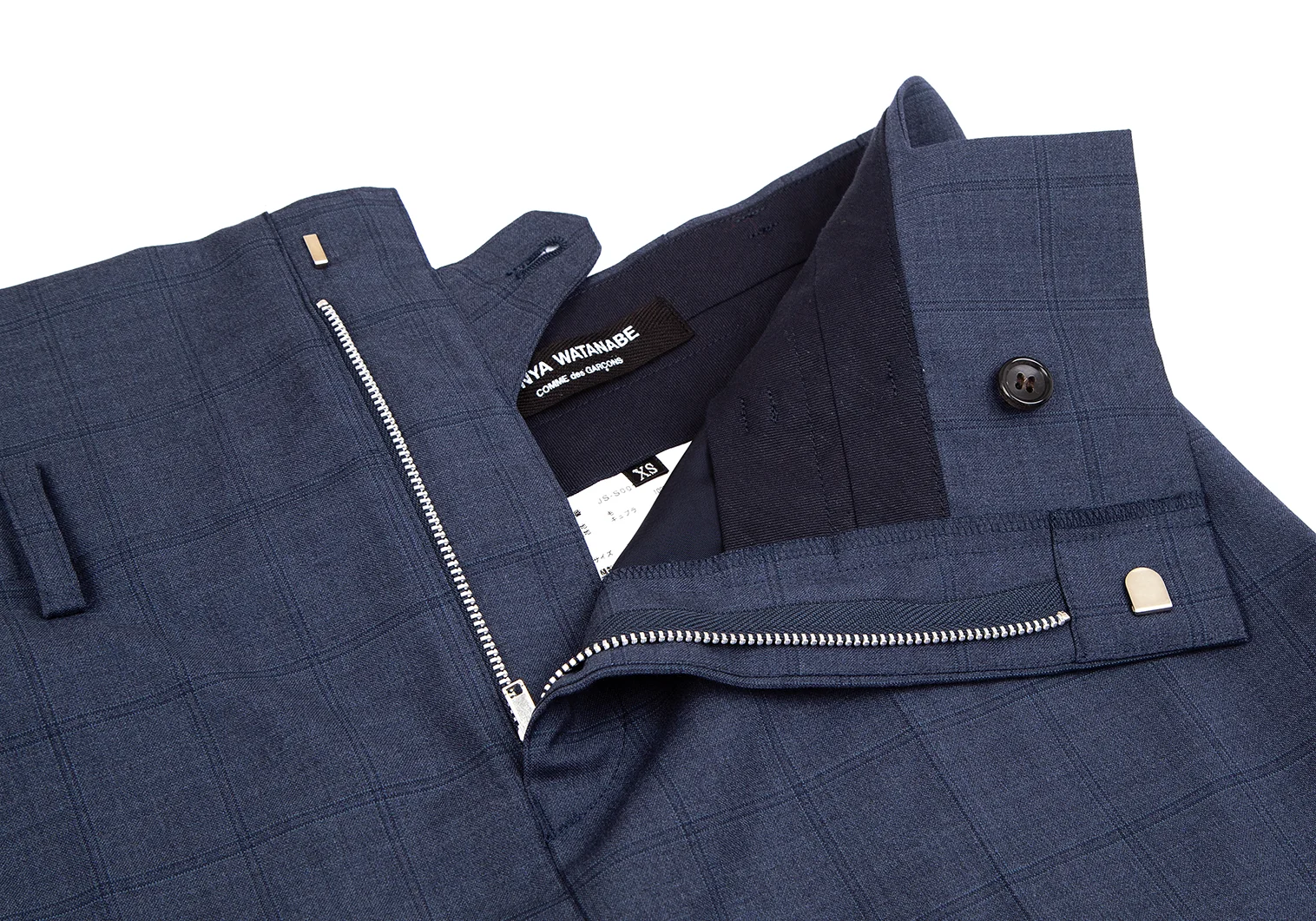 ジュンヤワタナベ コムデギャルソンJUNYA WATANABE COMME des GARCONS ウール格子チェックハイウエストクロップドパンツ 紺XS
