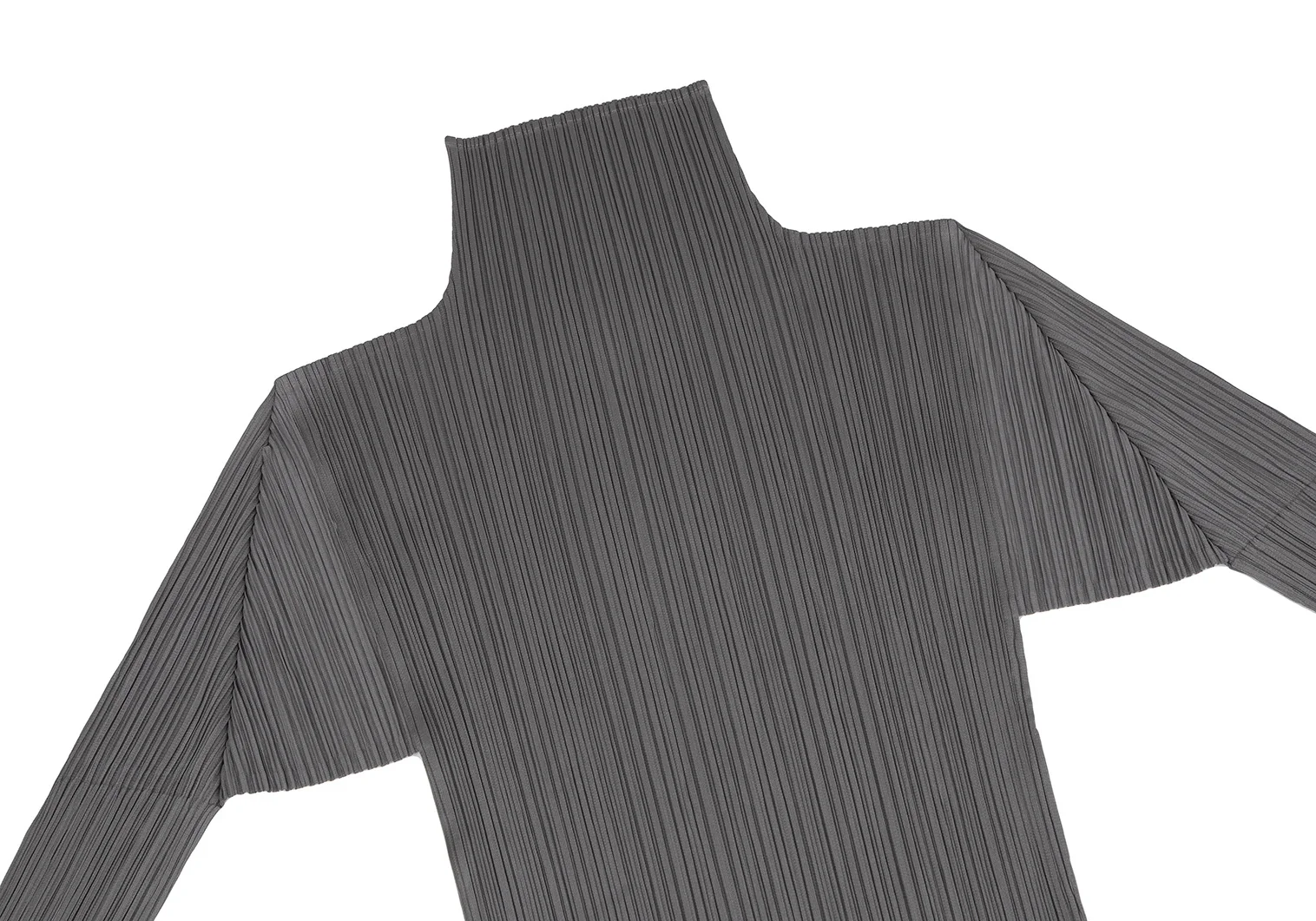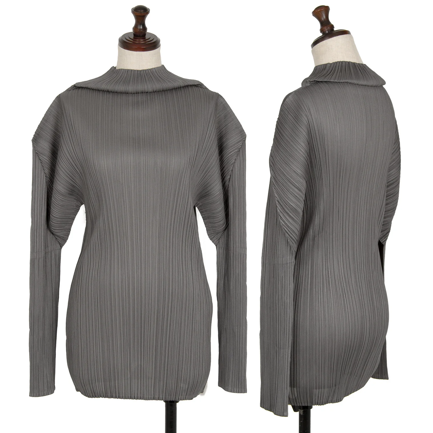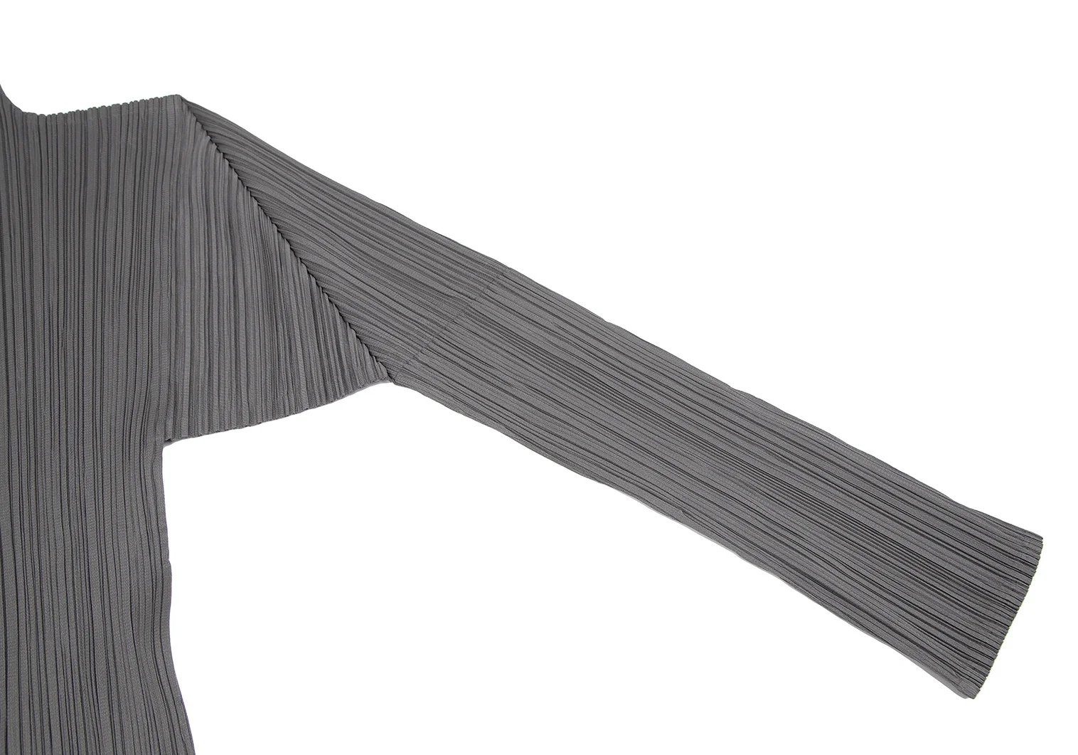 イッセイミヤケISSEY MIYAKEプリーツハイネックカットソー グレーM