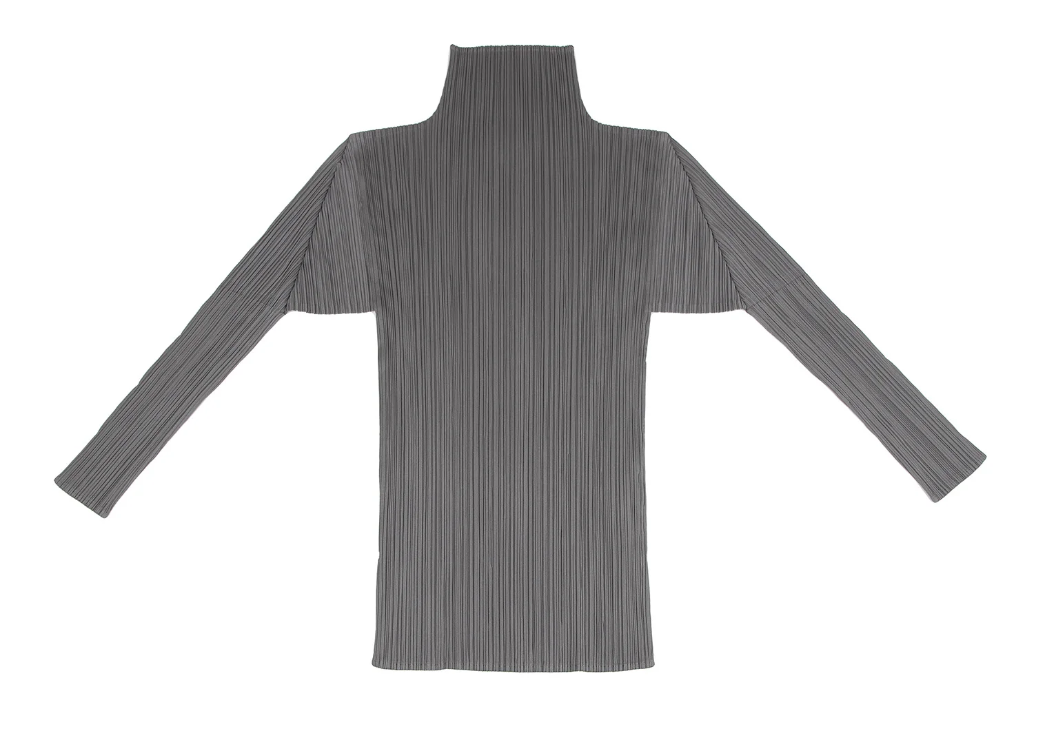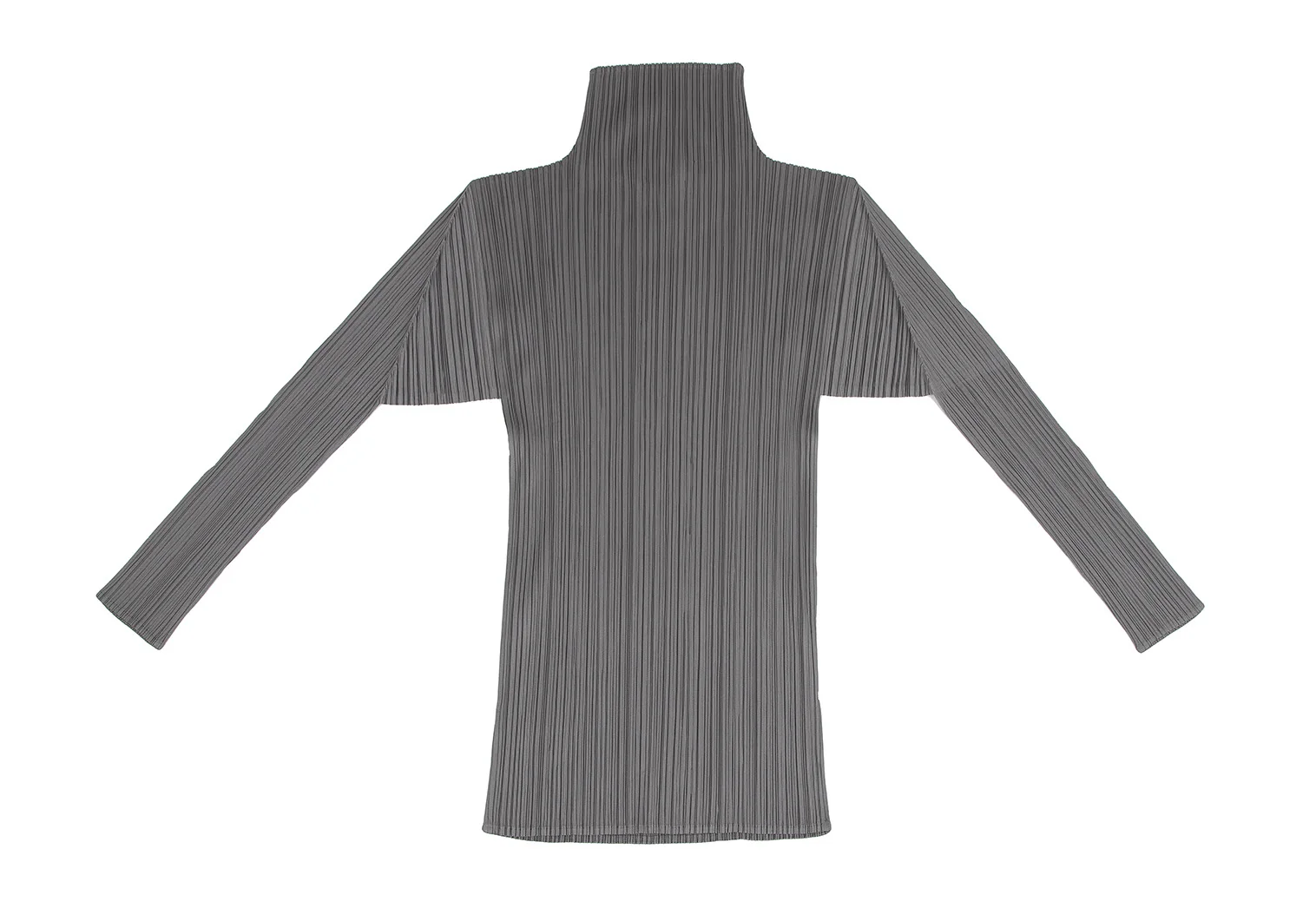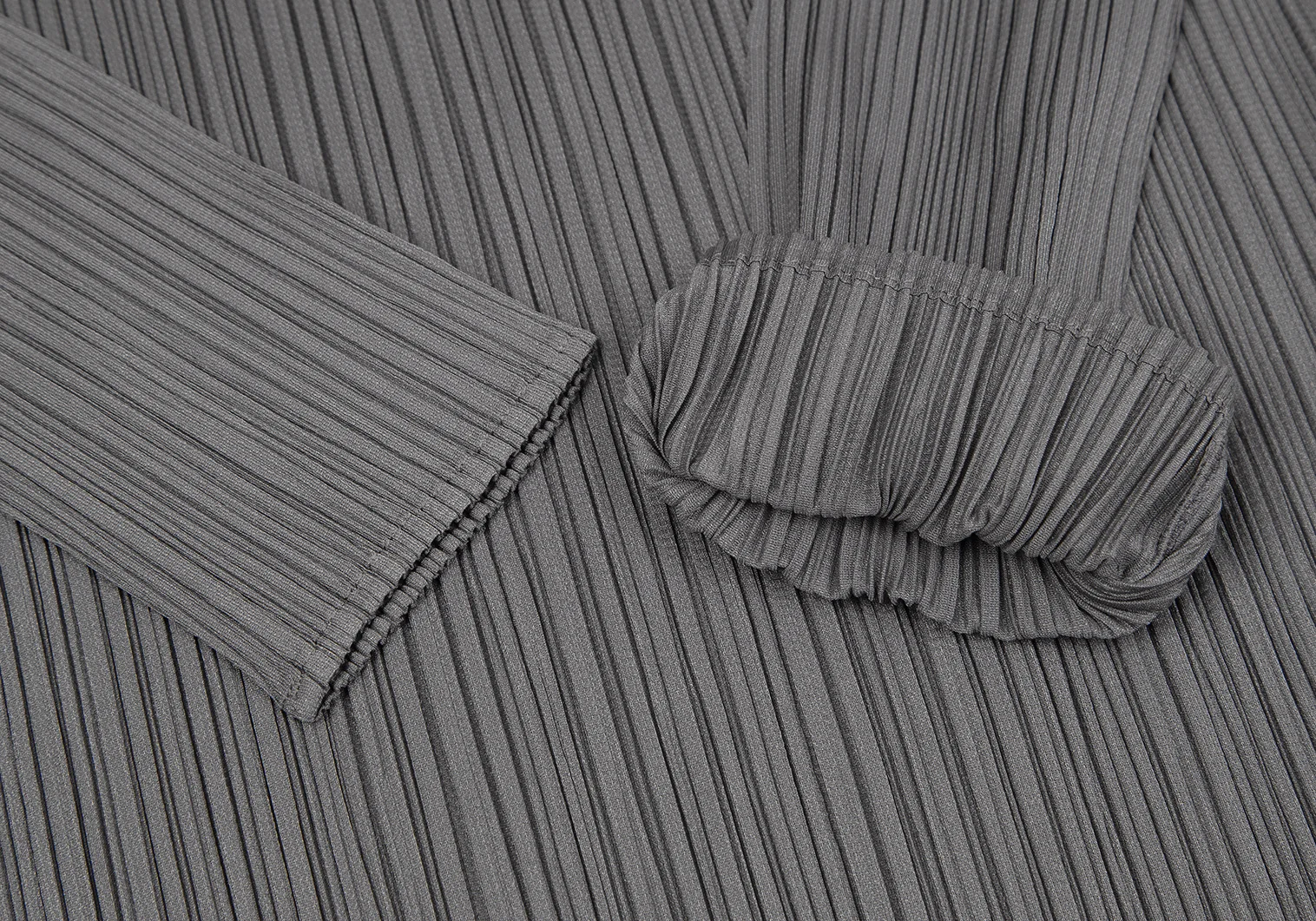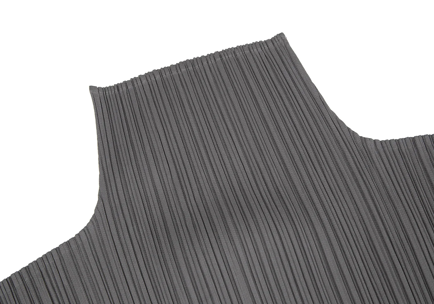 イッセイミヤケISSEY MIYAKEプリーツハイネックカットソー グレーM