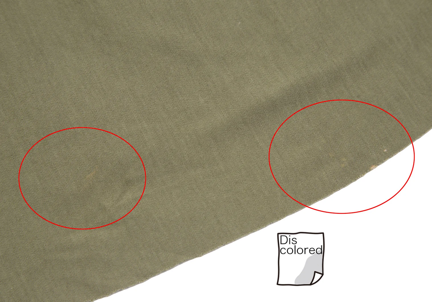 首元・袖口に褪せ、前裾に変色があります(写真参照)。その他目立ったシミ、汚れ、ほつれ等はありません。クリーニング済み