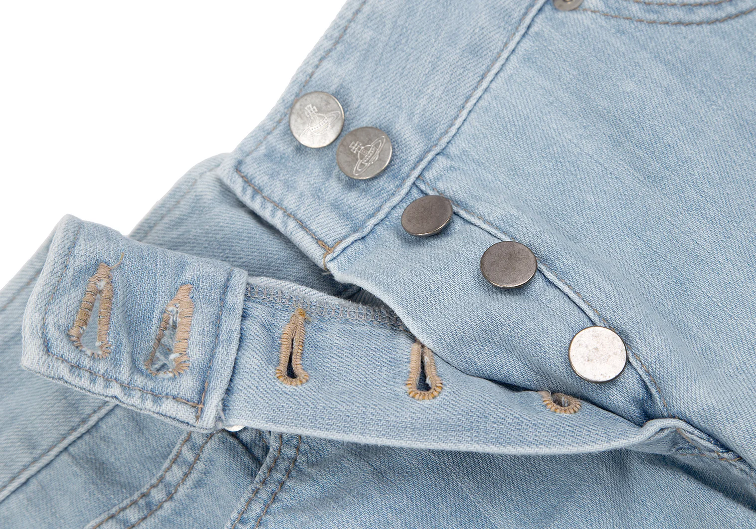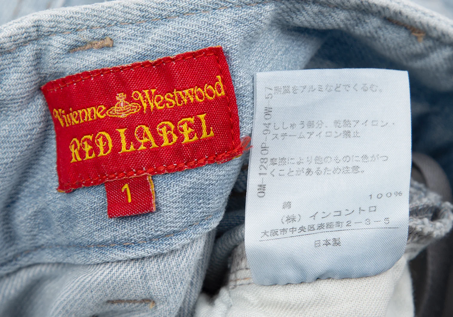 ヴィヴィアンウエストウッド レッドレーベルVivienne Westwood Red Label バックオーブ刺繍デニムキュロット 水色1