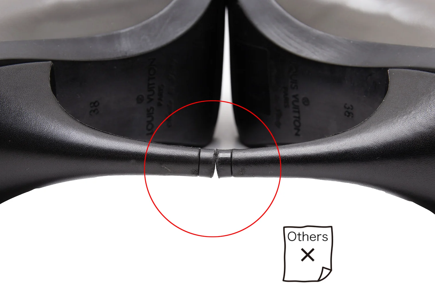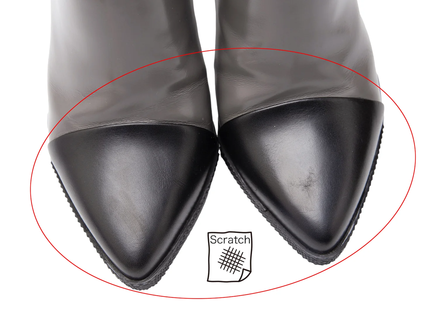 表面に小傷、ヒールチップに少しダメージがあります(写真参照)その他目立った傷や汚れなどなくいい状態です。