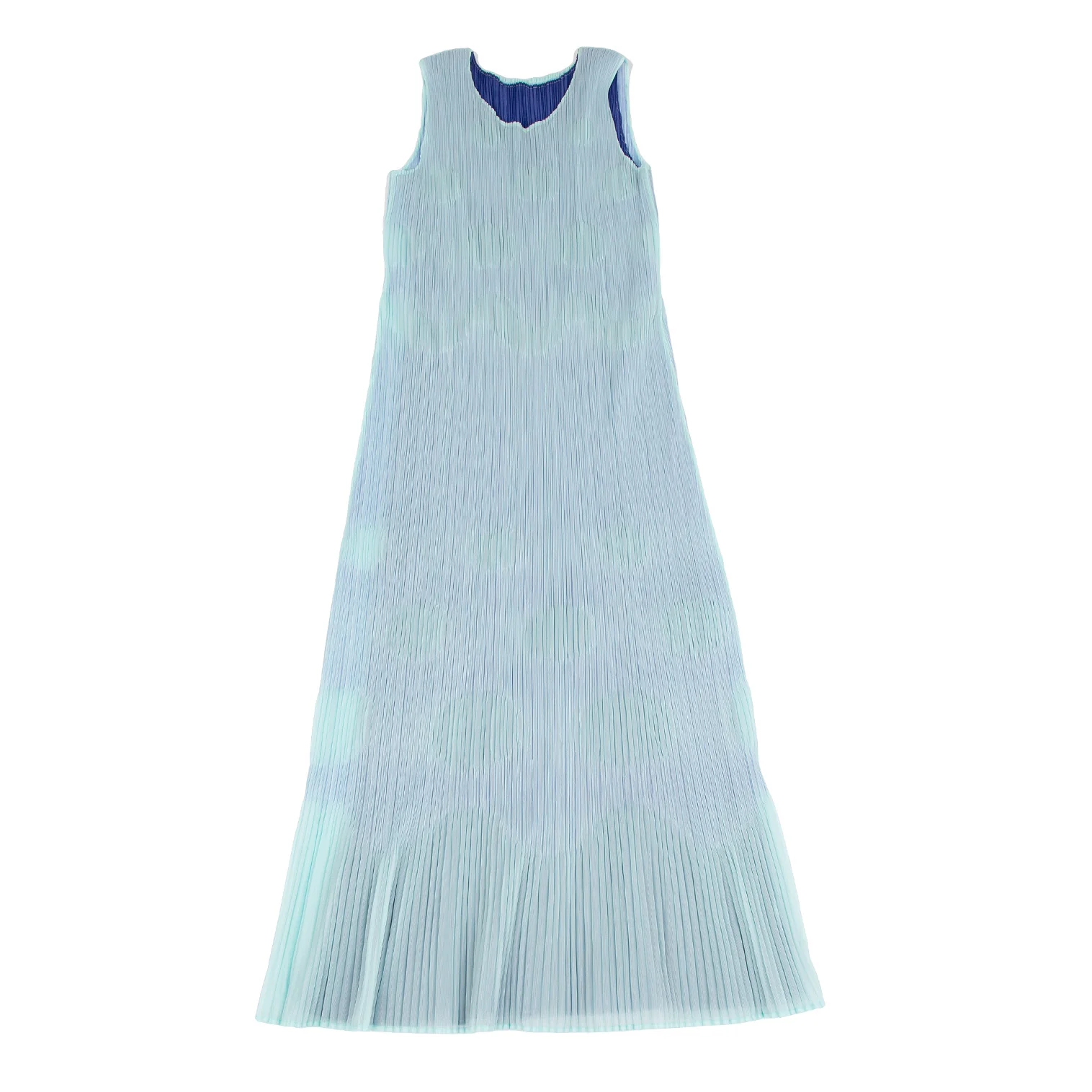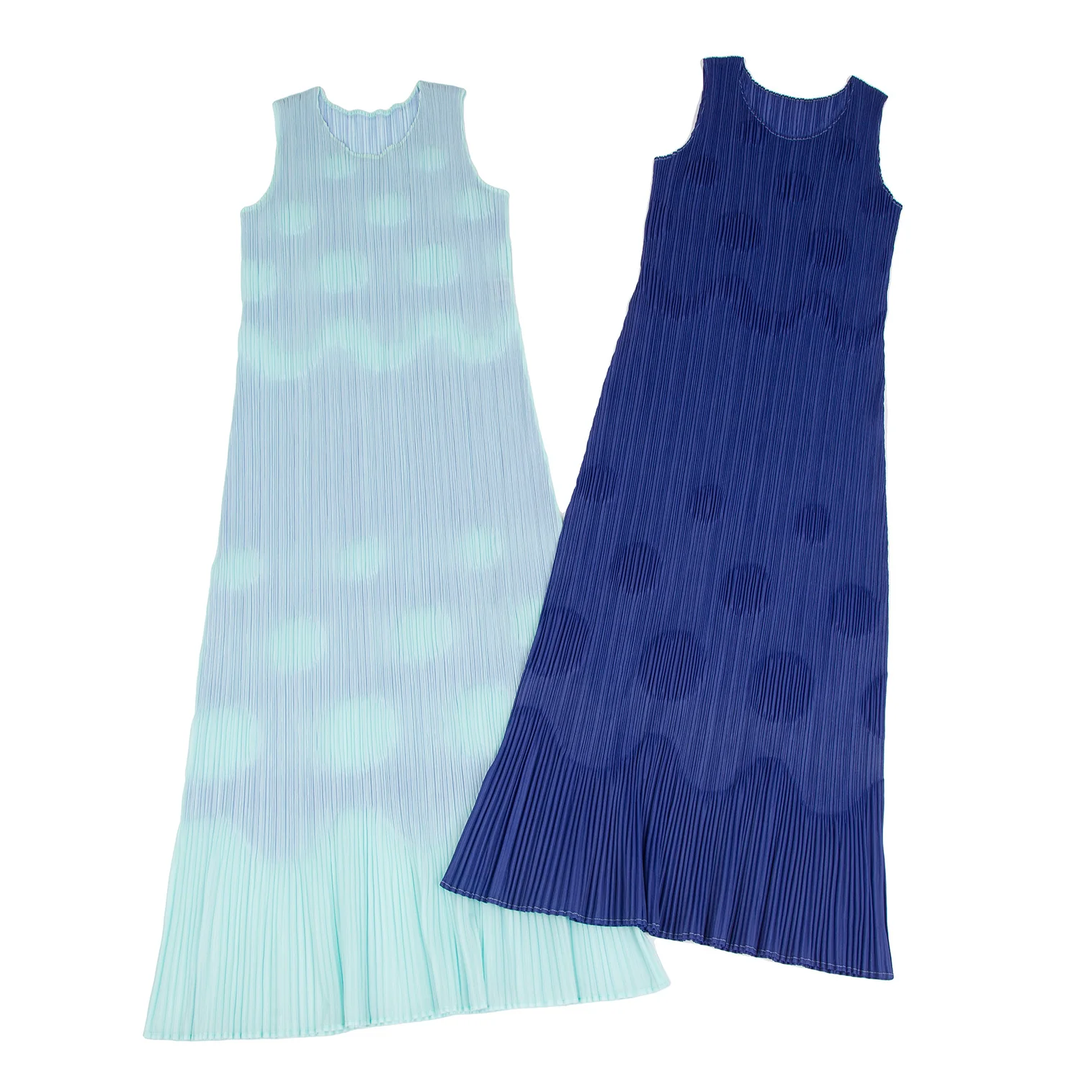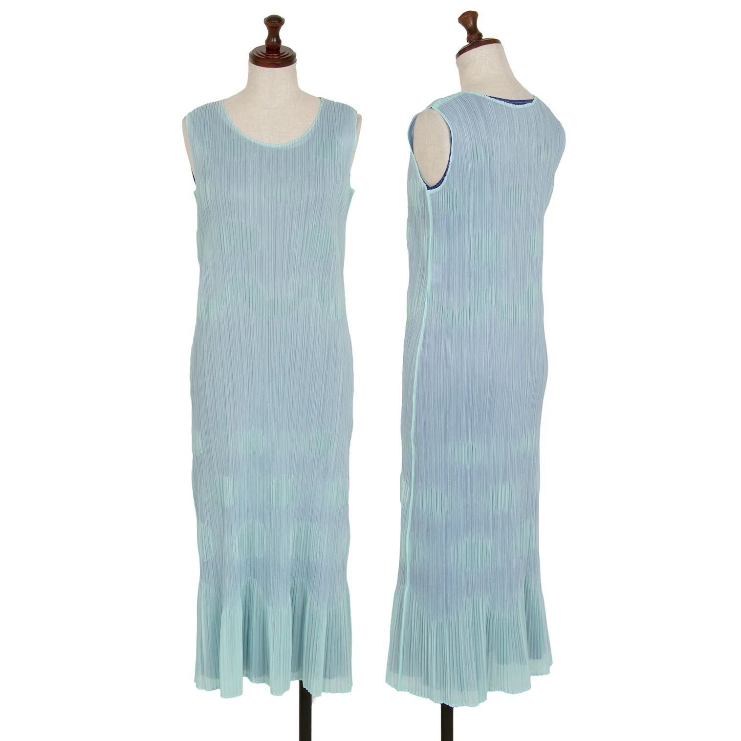 プリーツプリーズPLEATS PLEASE ドットエンボスレイヤードノースリーブワンピース 水色青2