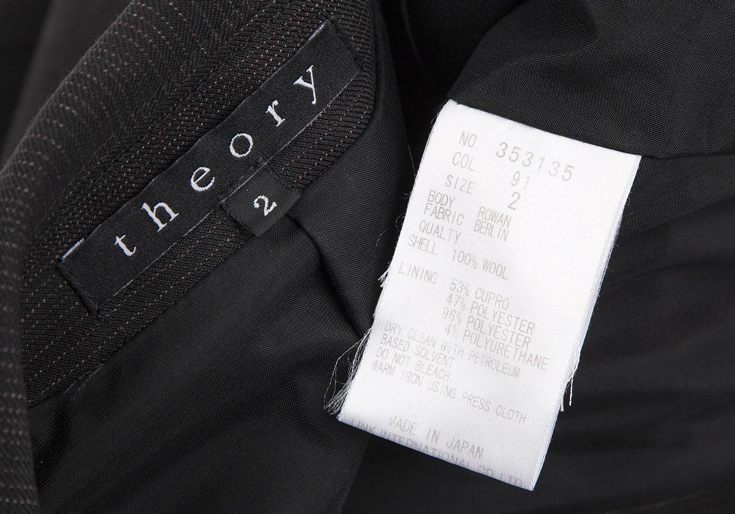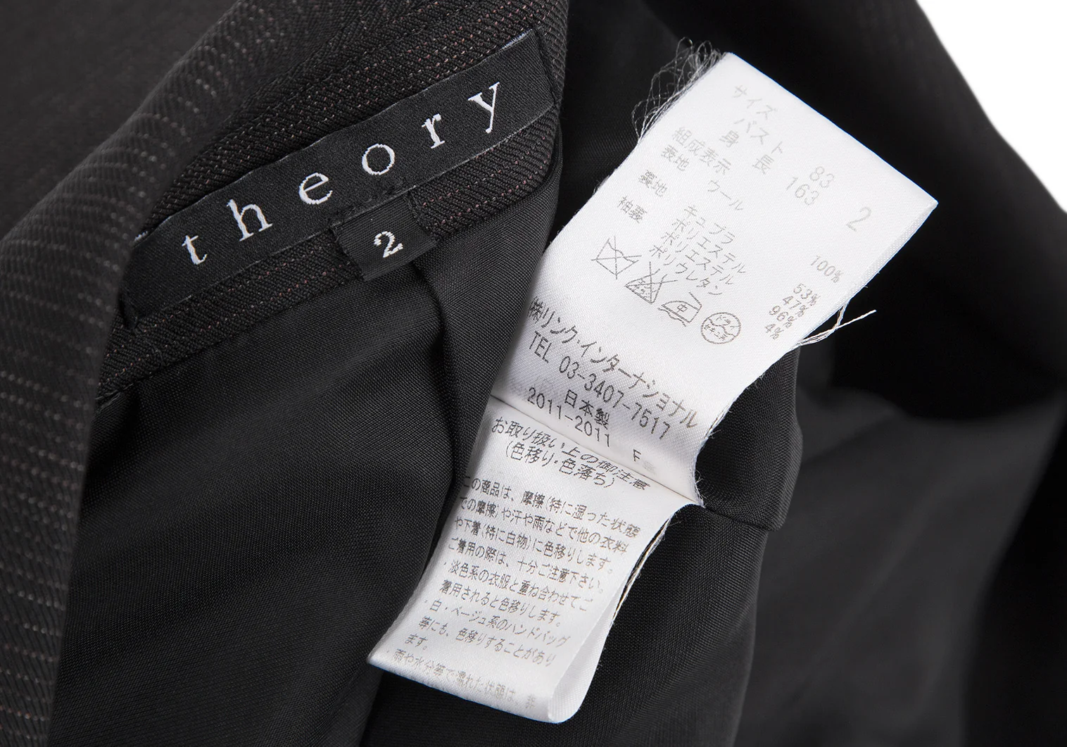 表地 ウール100% 裏地 キュプラ53% ポリエステル47% 袖裏 ポリエステル96% ポリウレタン4%