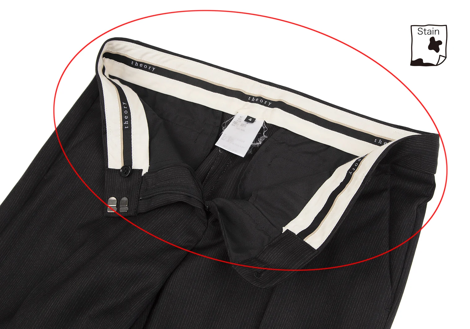 ウエスト見返し部分に汚れがあります(写真参照)。その他目立ったシミ、汚れ、ほつれ等なくいい状態です。クリーニング済み