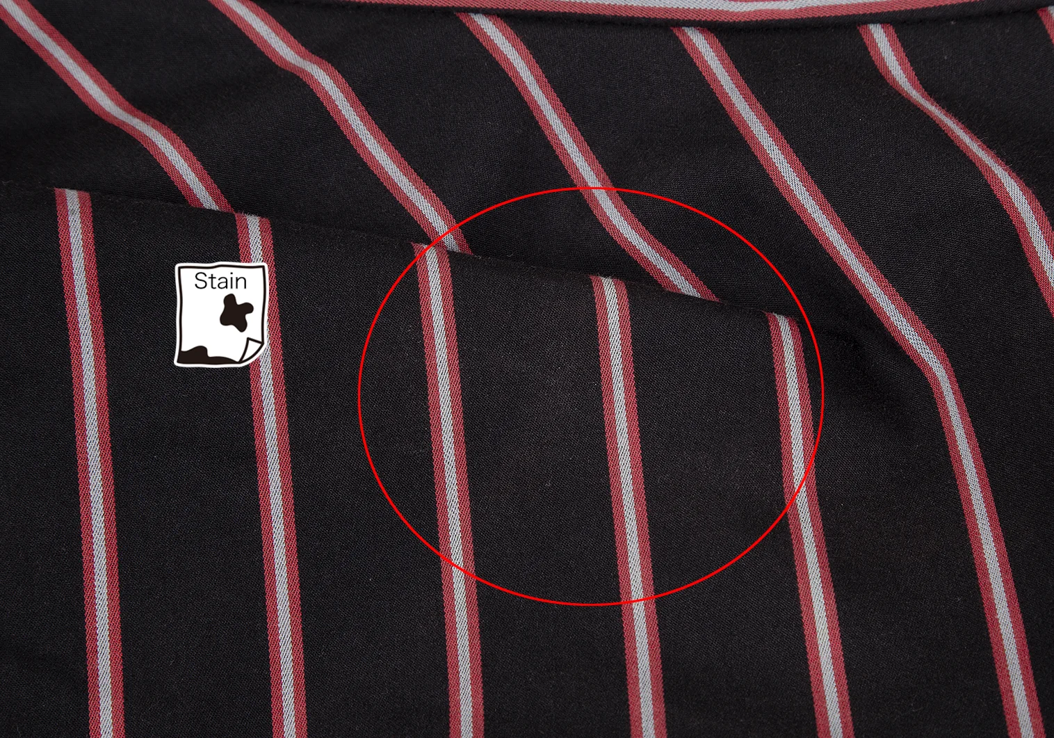 前身頃に汚れがあります。(写真参照)その他目立ったシミ、汚れ、ほつれ等なくいい状態です。クリーニング済み