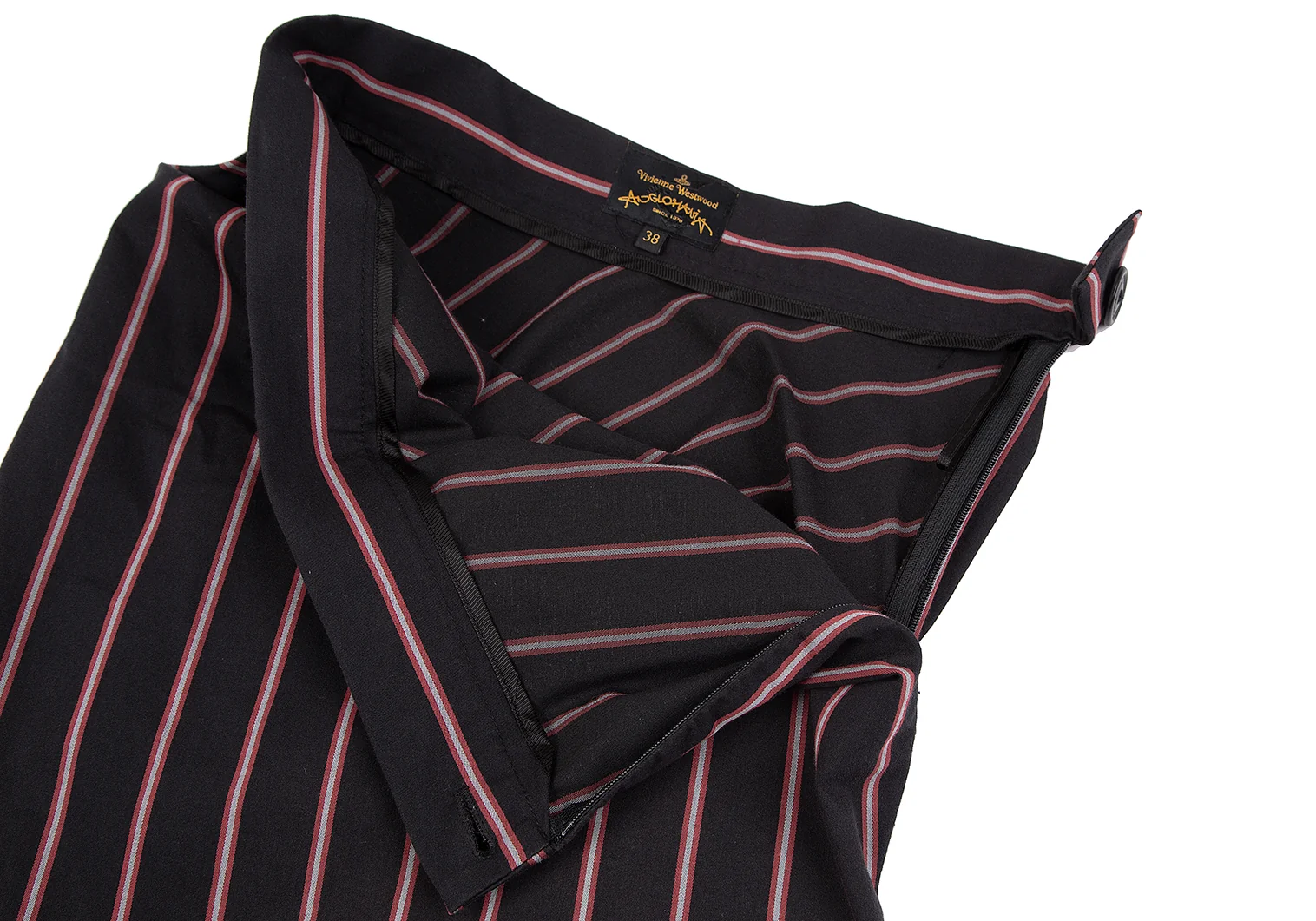 ヴィヴィアンウエストウッド アングロマニアVivienne Westwood ANGLOMANIA タック変形ストライプスカート 黒38