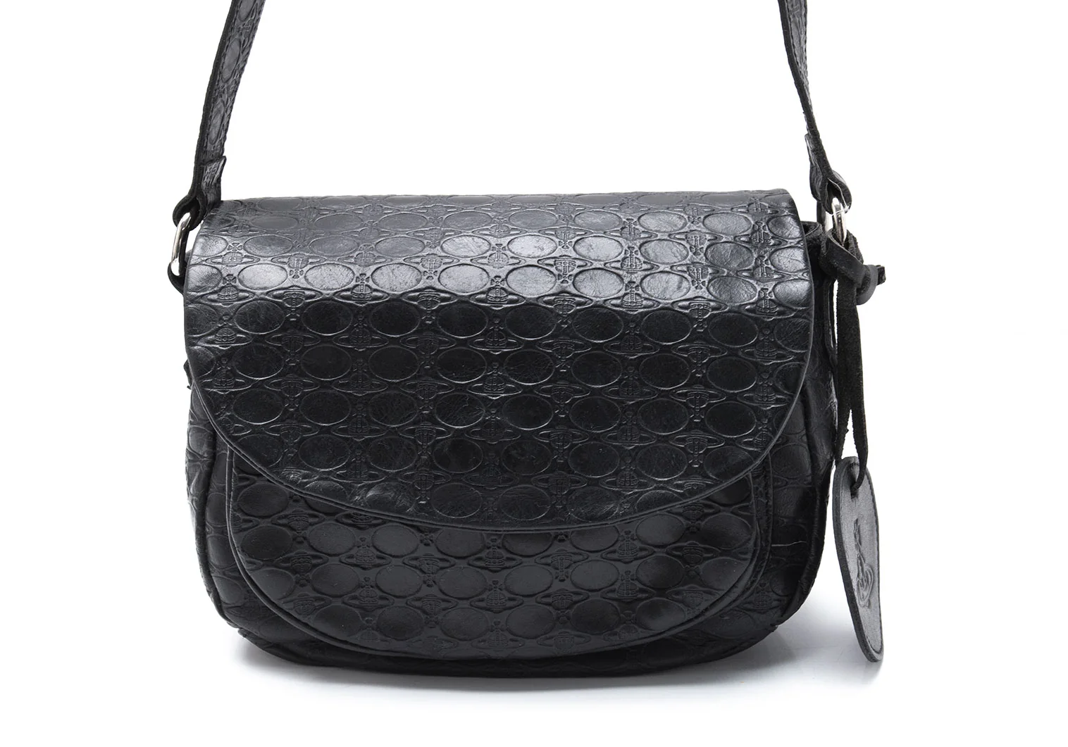 ヴィヴィアンウエストウッドVivienne Westwood オーブ型押しレザーショルダーバッグ 黒
