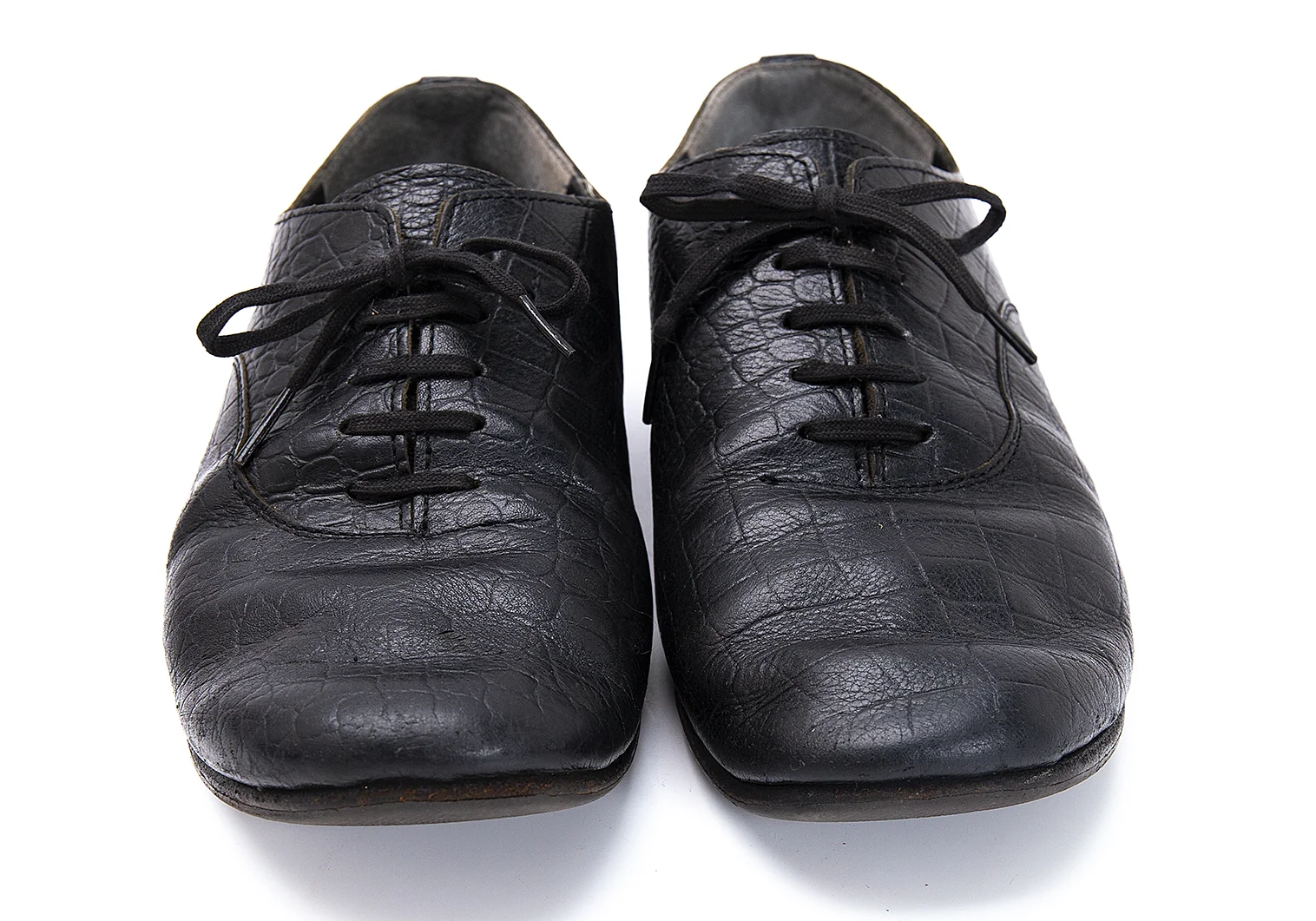 コムデギャルソンCOMME des GARCONS クロコダイルエンボスラウンドトゥシューズ 黒24.5
