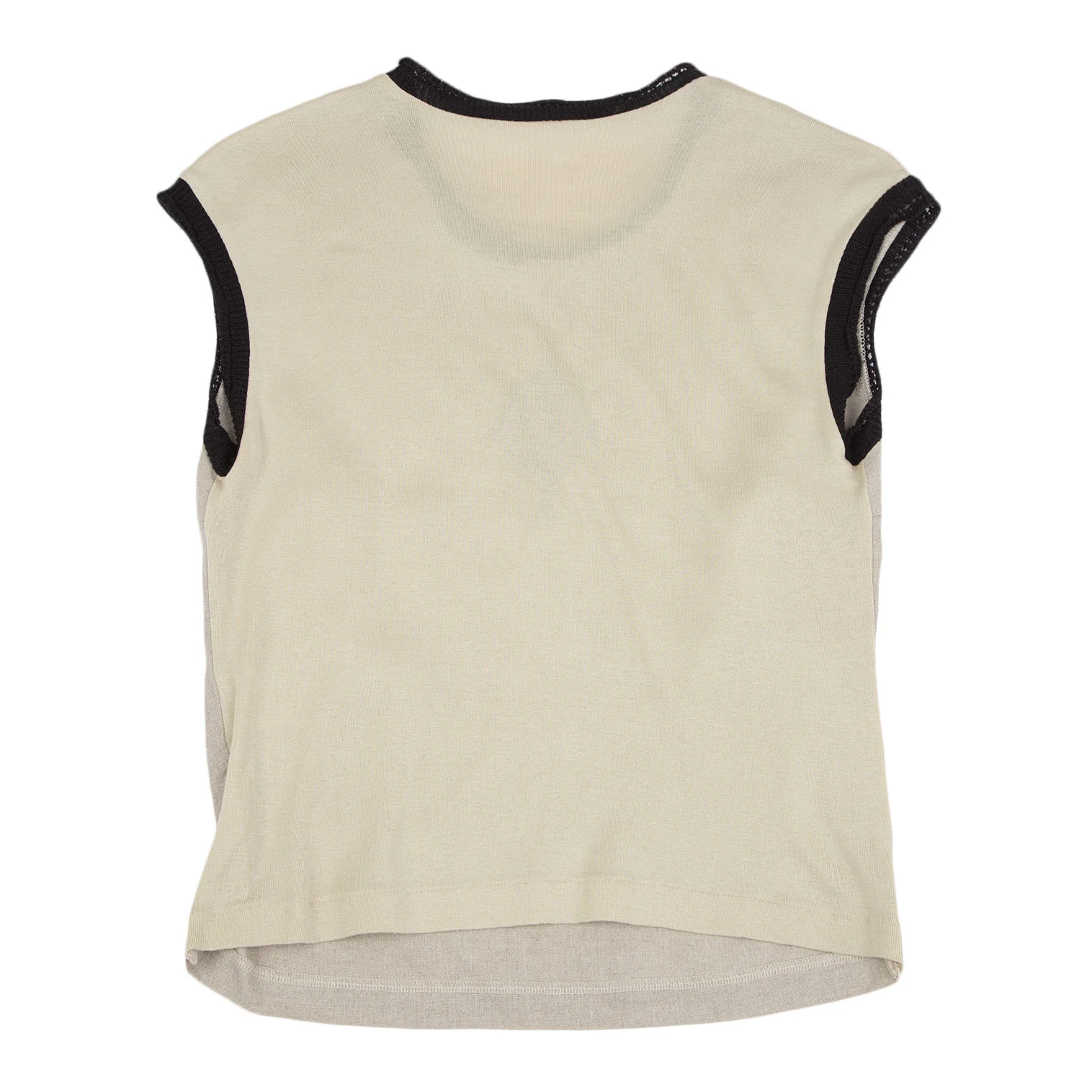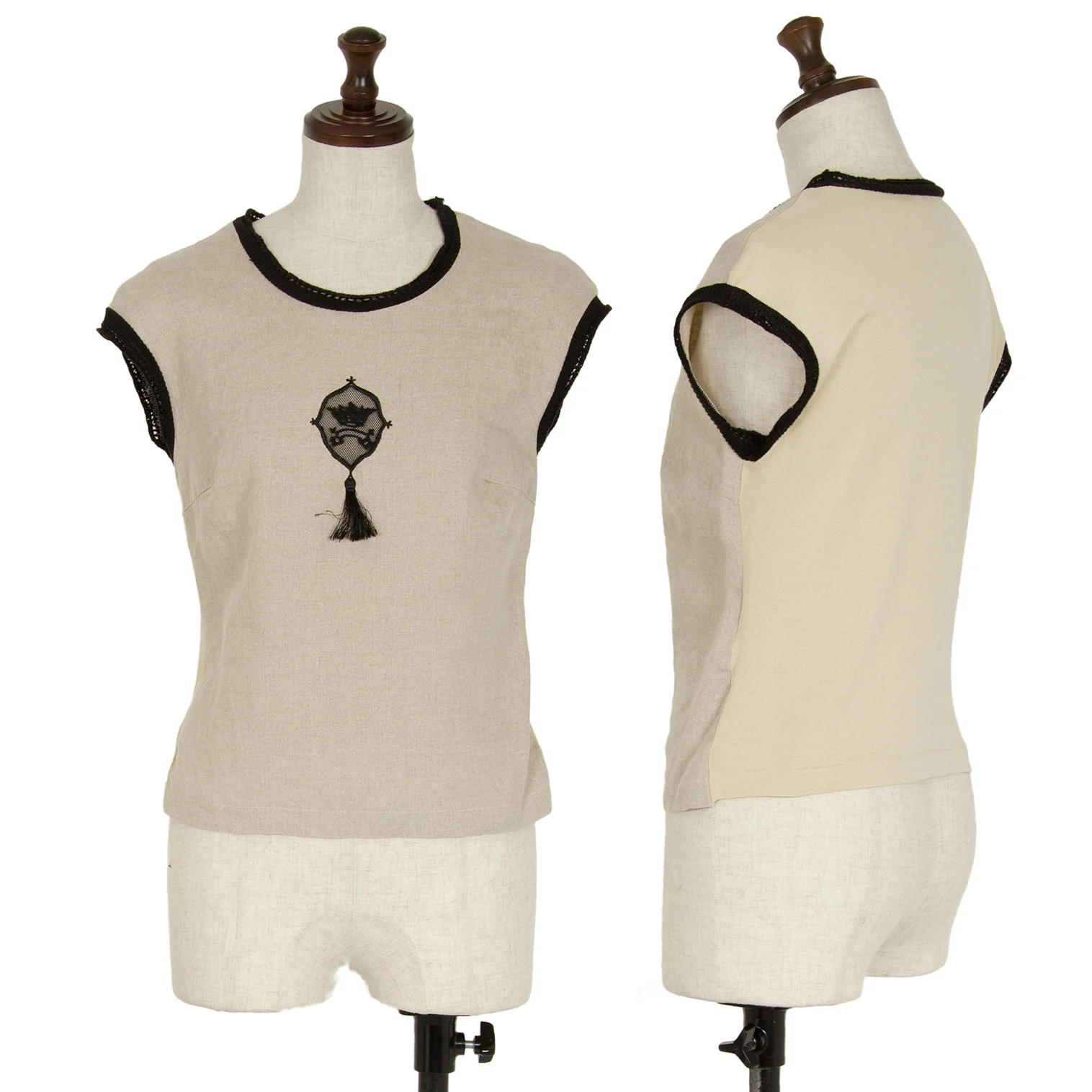 アンティパストANTIPAST クラウンメッシュ装飾異素材切替ノースリーブトップス ベージュ黒S位