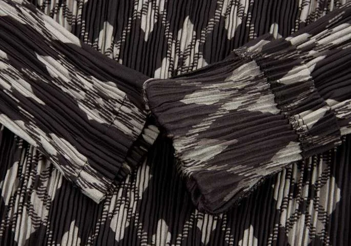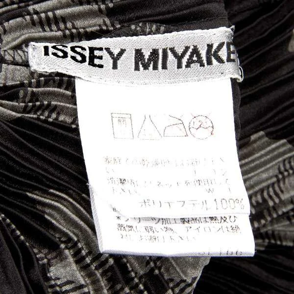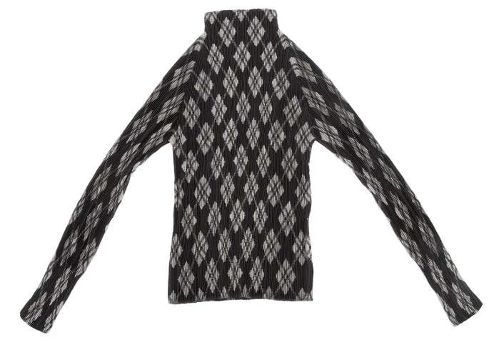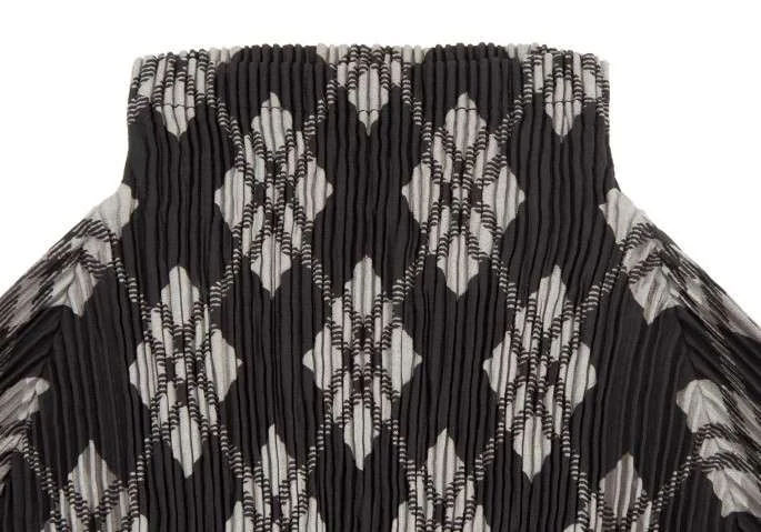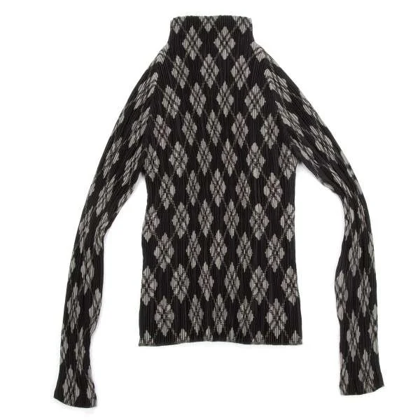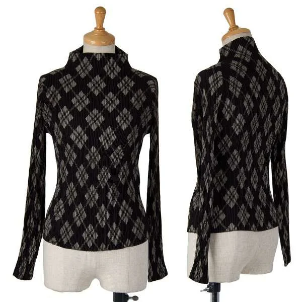イッセイミヤケISSEY MIYAKEプリーツアーガイル柄ハイネックブラウス 黒×グレーM