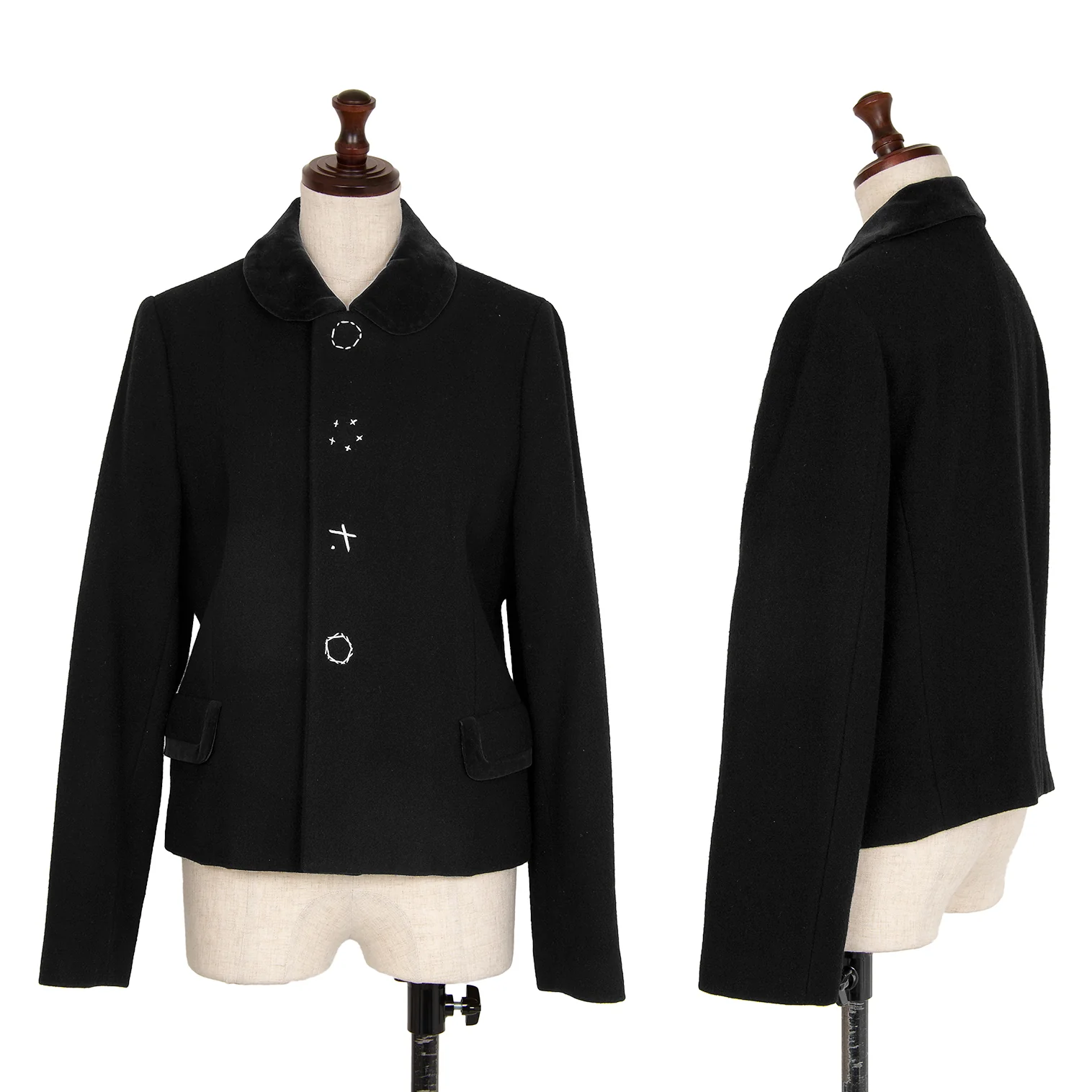 ローブドシャンブル コムデギャルソンrobe de chambre COMME des GARCONS スナップボタンステッチデザインラウンドカラージャケット 黒M位