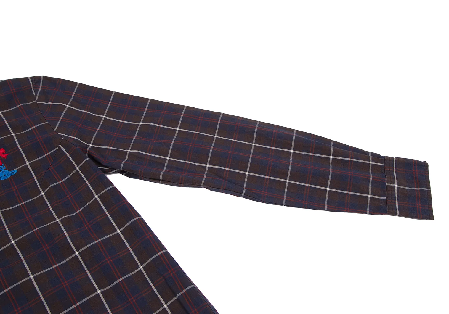 ヴィヴィアンウエストウッド レッドレーベルVivienne Westwood Red Label オーブワンポイントラウンドカラーチェックシャツ 紺茶赤2