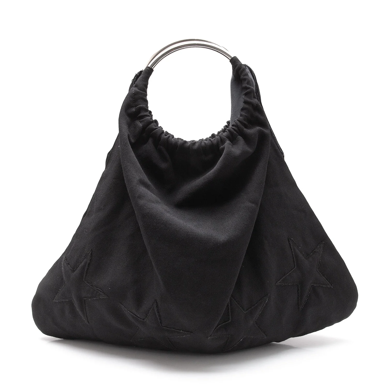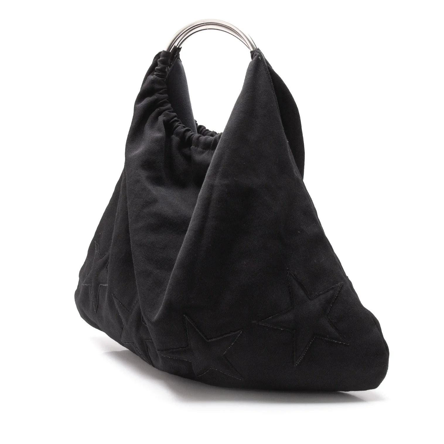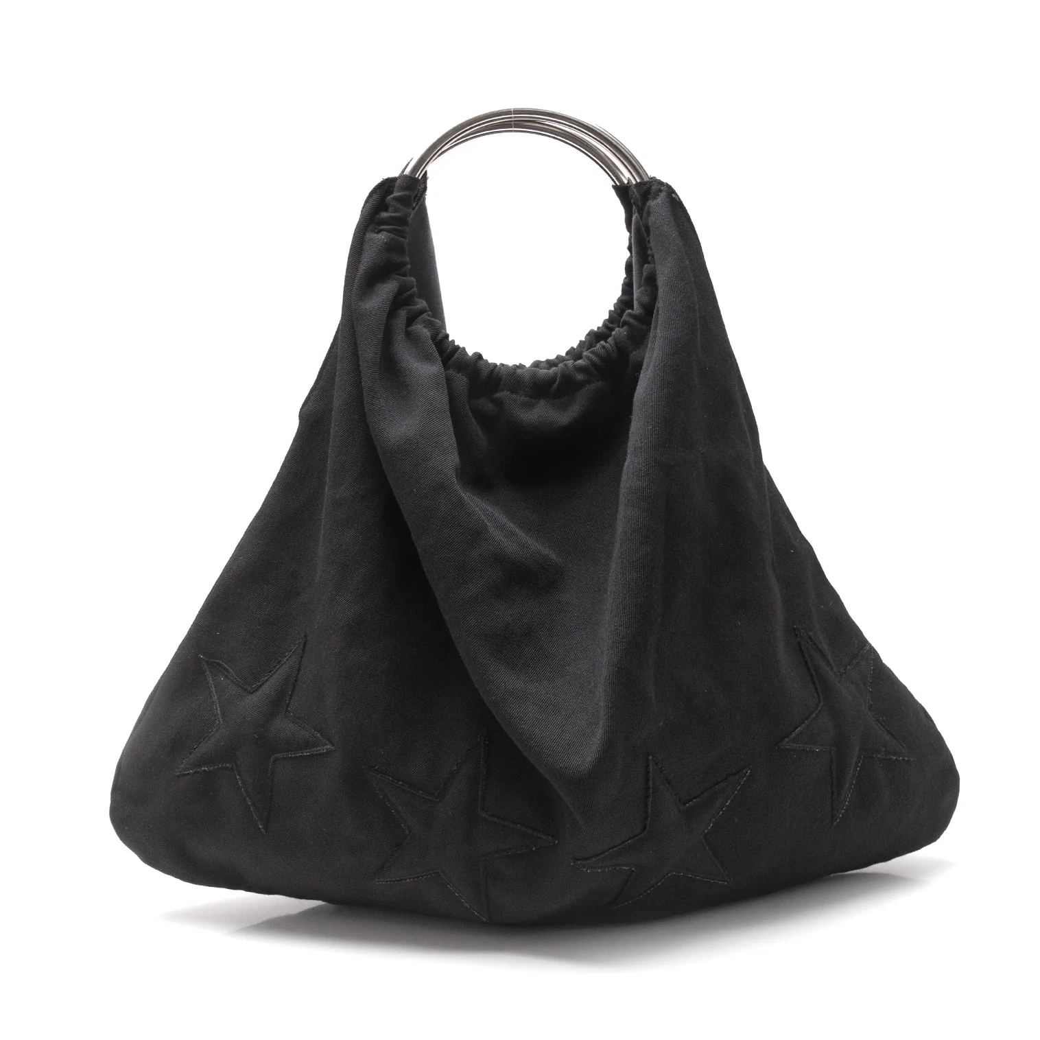 ローブドシャンブル コムデギャルソンrobe de chambre COMME des GARCONS メタルリングハンドルウールスターパッチバッグ 黒