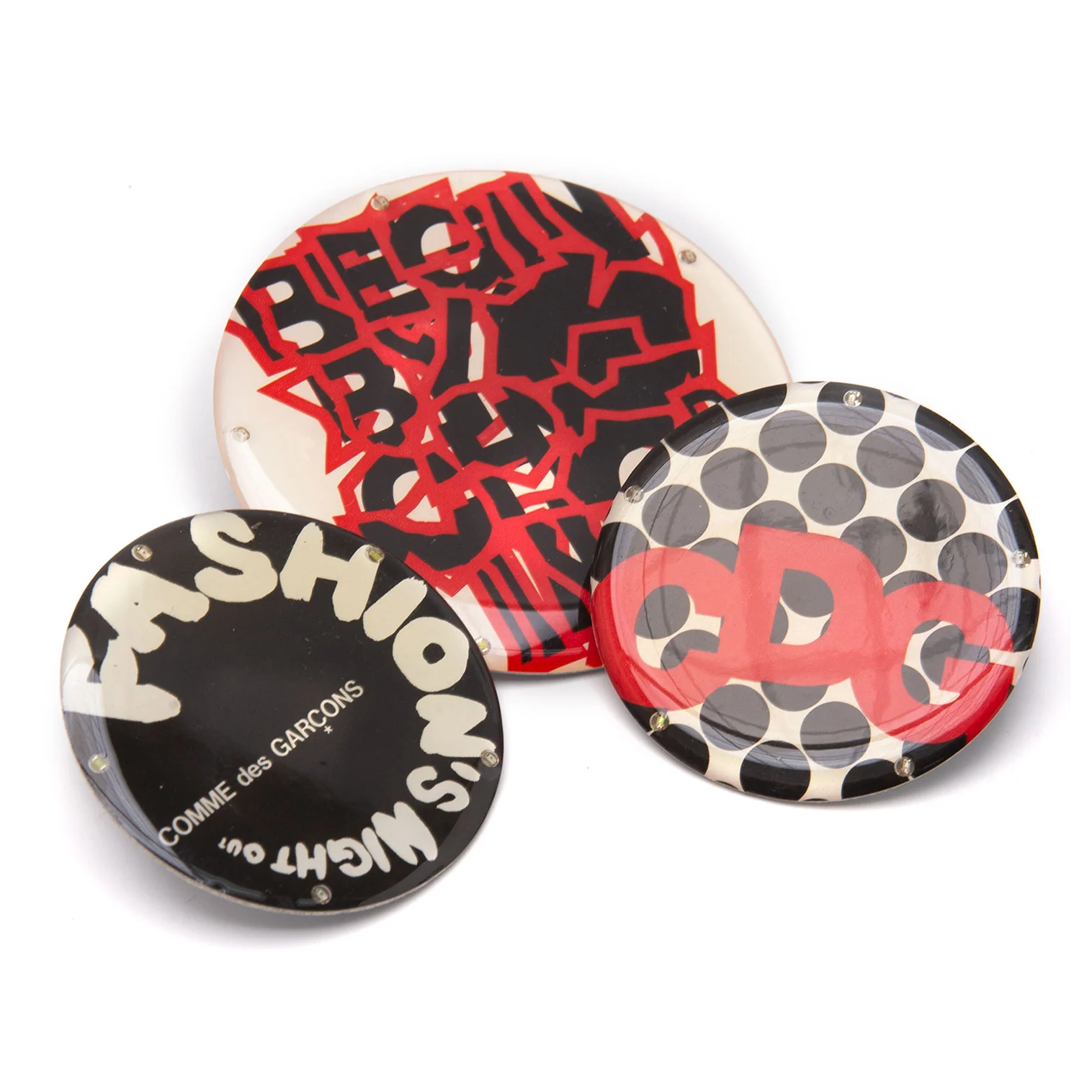 コムデギャルソンCOMME des GARCONS 2016FNOノベルティライト付きピンバッチセット 白黒赤