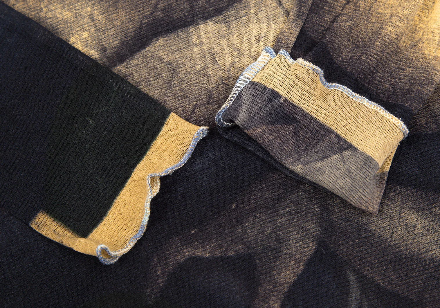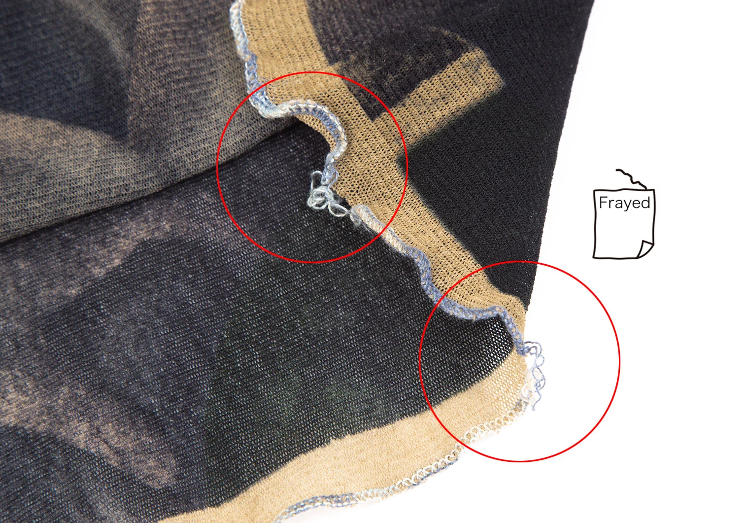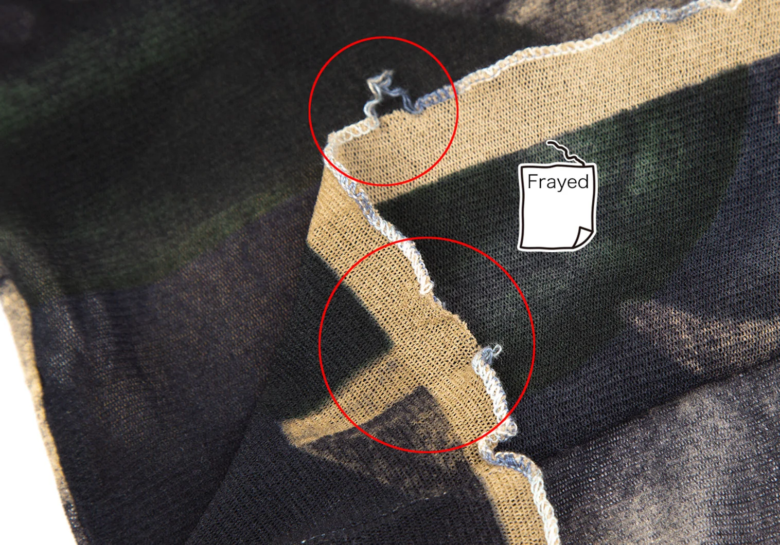 透け感があります。右脇下に縫い目の伸び、裾ステッチ部分にほつれがあります(写真参照)。その他目立ったシミ、汚れ等なくいい状態です。クリーニング済み