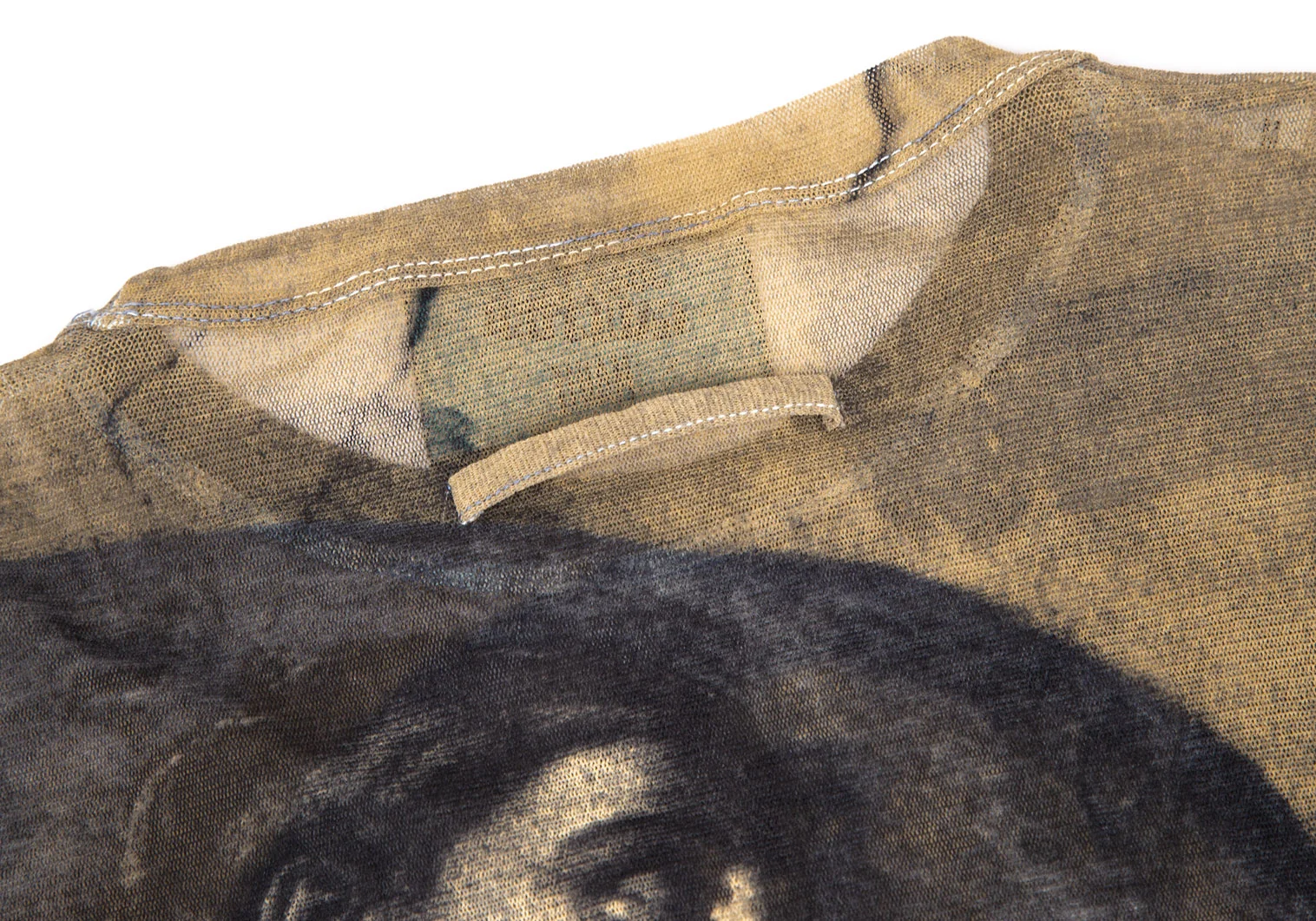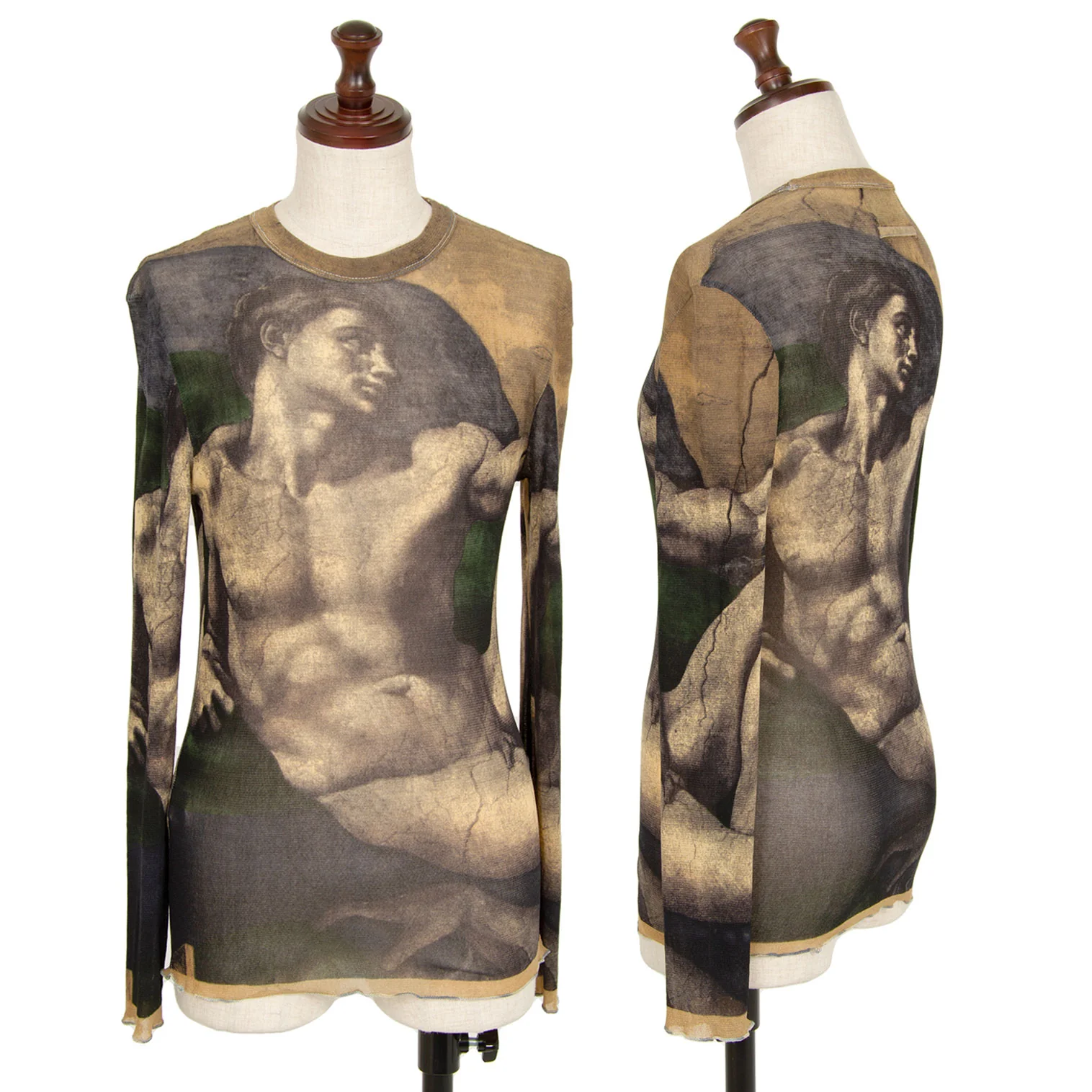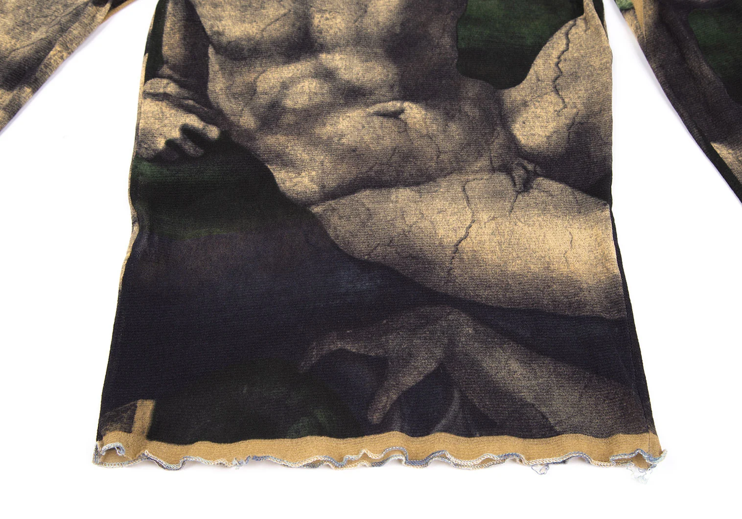 ジャンポールゴルチエ マイユJean Paul GAULTIER AILLE アダムの創造プリントパワーネットカットソー ベージュ黒M