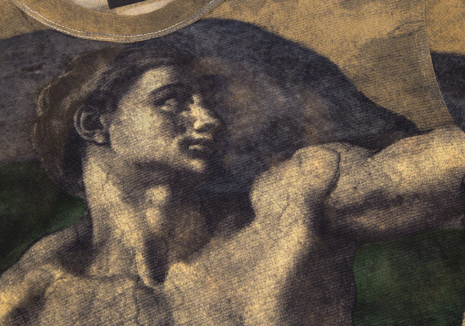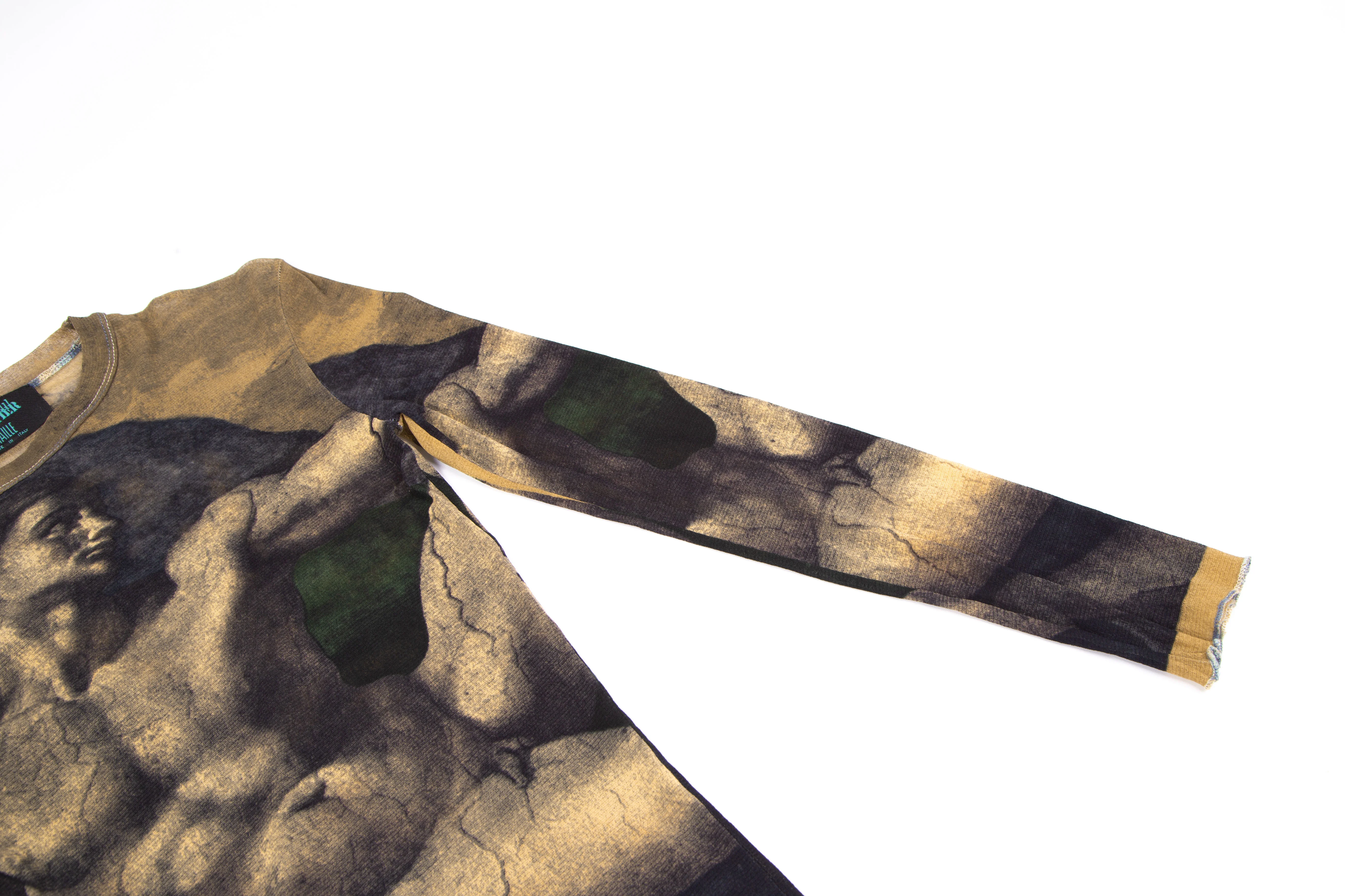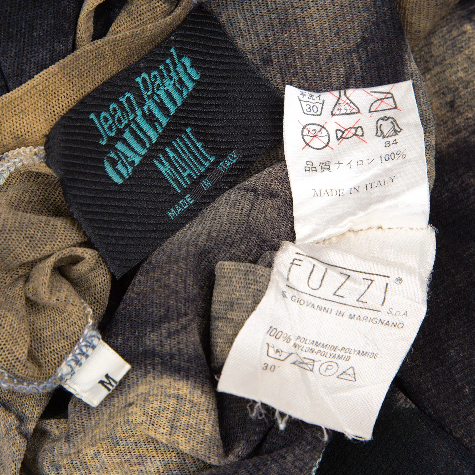 ジャンポールゴルチエ マイユJean Paul GAULTIER AILLE アダムの創造プリントパワーネットカットソー ベージュ黒M