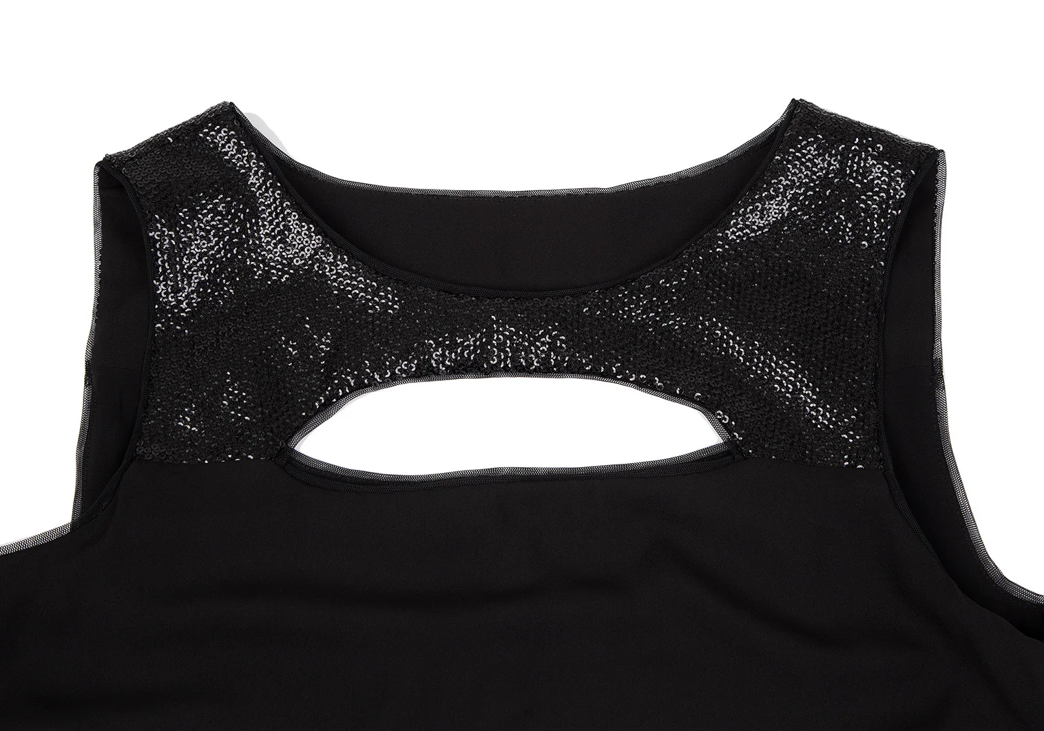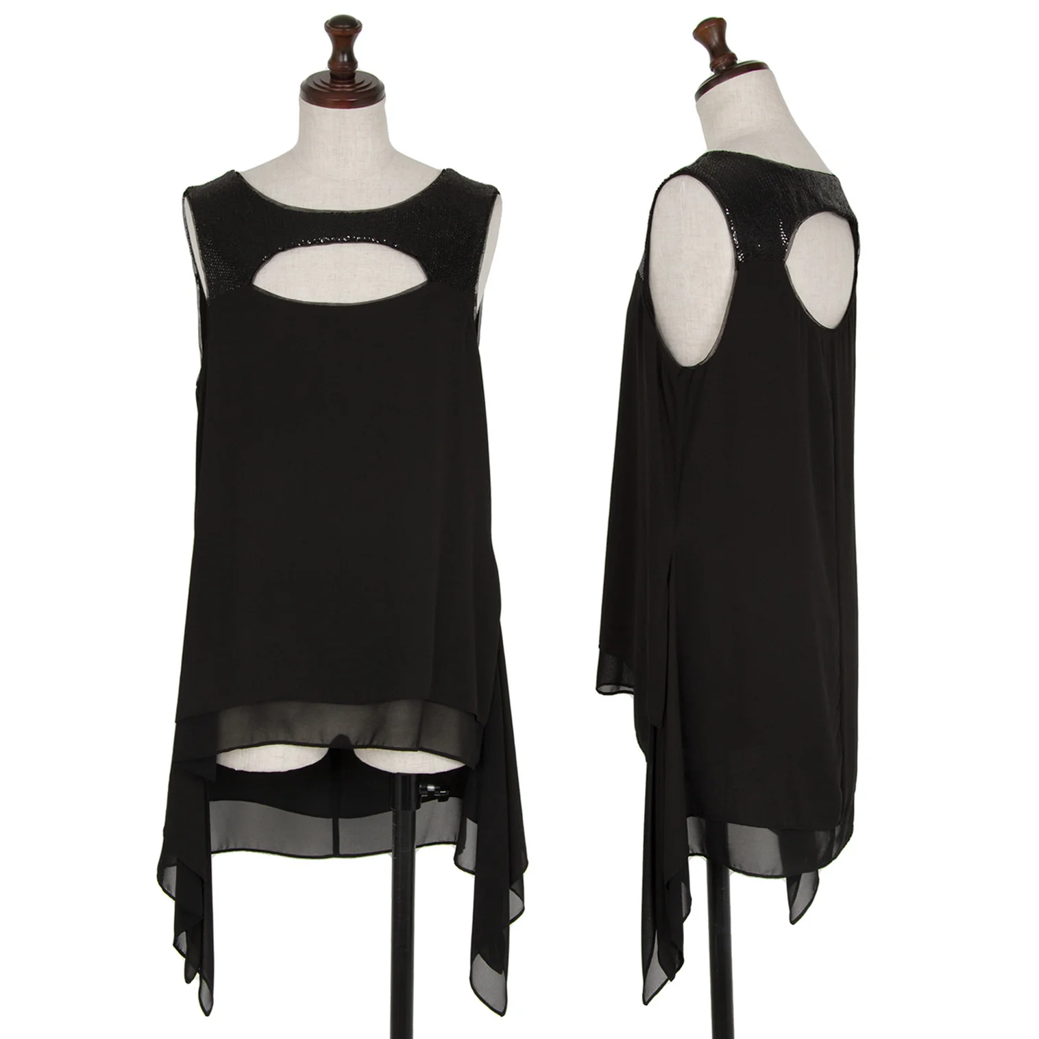 ビーシービージーマックスアズリアBCBGMAXAZRIA スパンコールカッティングデザインノースリーブトップス 黒S