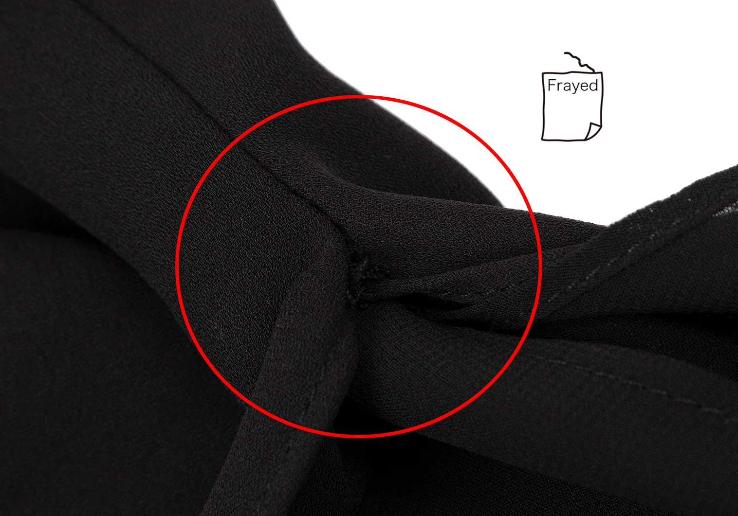 若干の透け感があります。左スリット根元にほつれがあります(写真参照)。その他目立ったシミ、汚れ、ほつれ等なくいい状態です。クリーニング済み