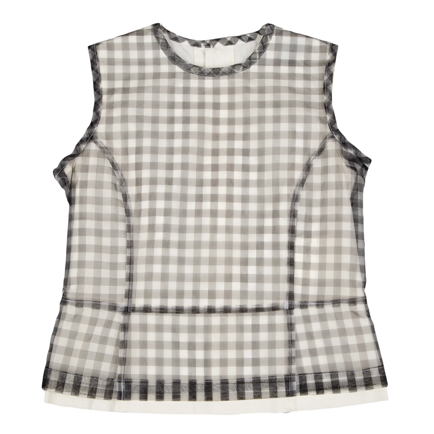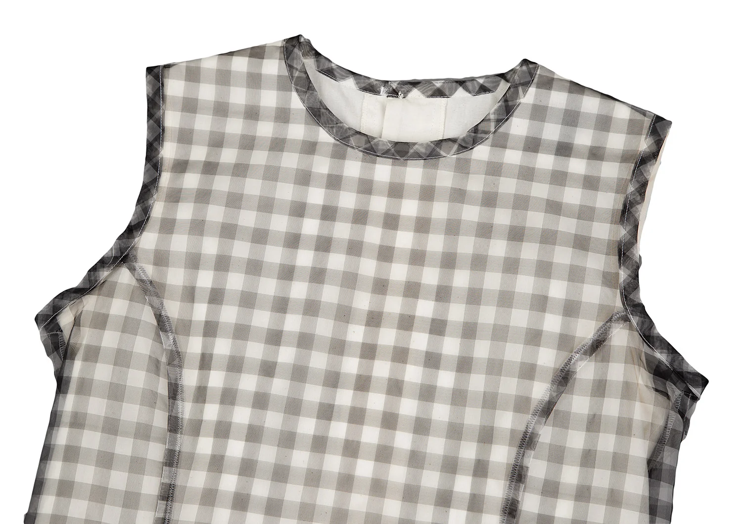 コムデギャルソンCOMME des GARCONS シースルーギンガムチェックレイヤードバックボタンノースリーブ 白黒生成りS