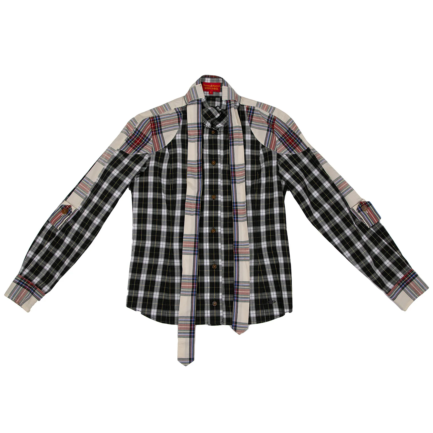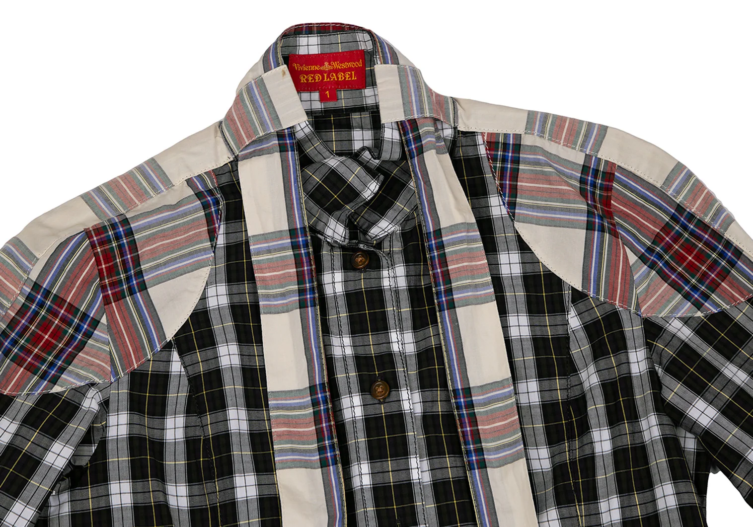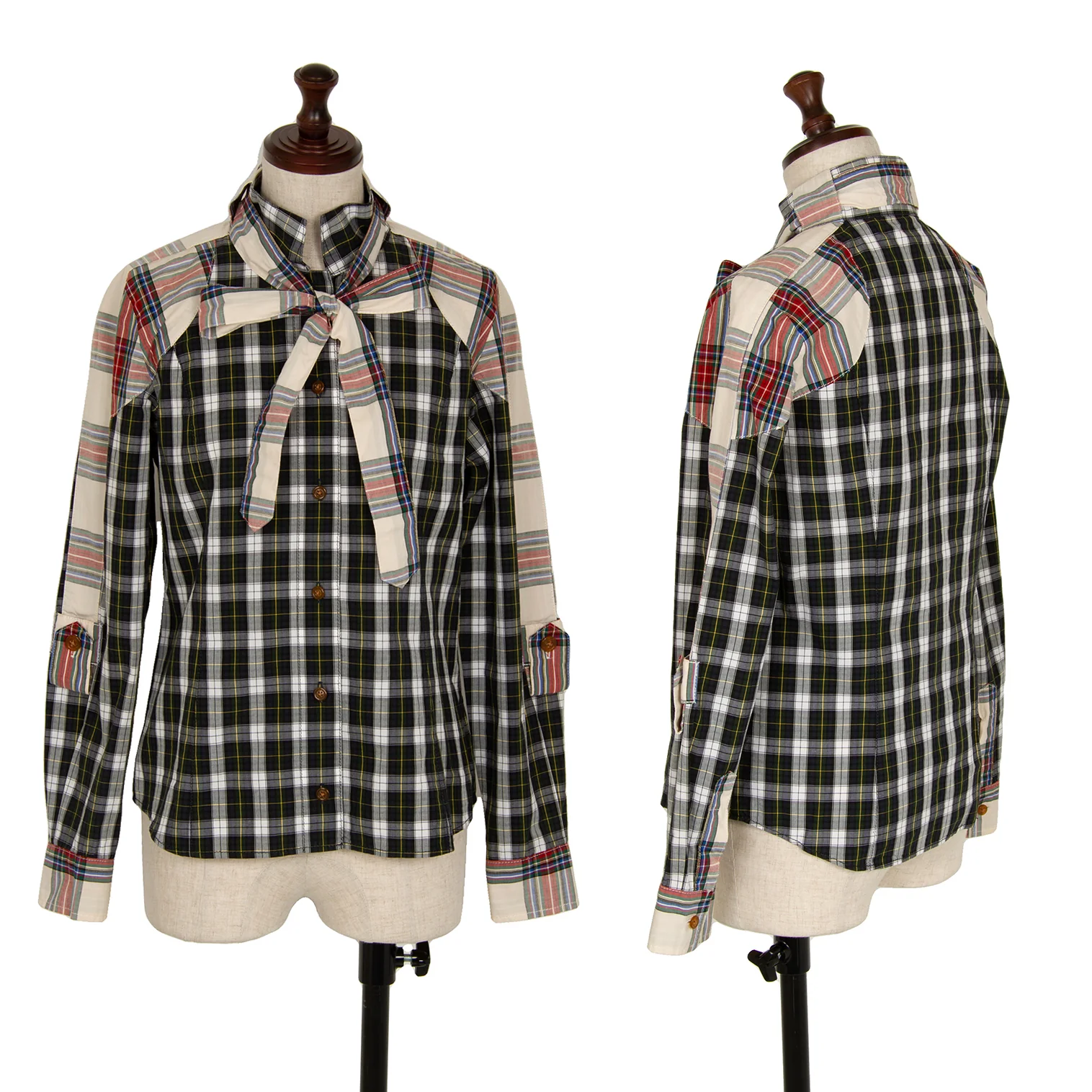 ヴィヴィアンウエストウッド レッドレーベルVivienne Westwood Red Label チェック切替リボンブラウス 白緑他1