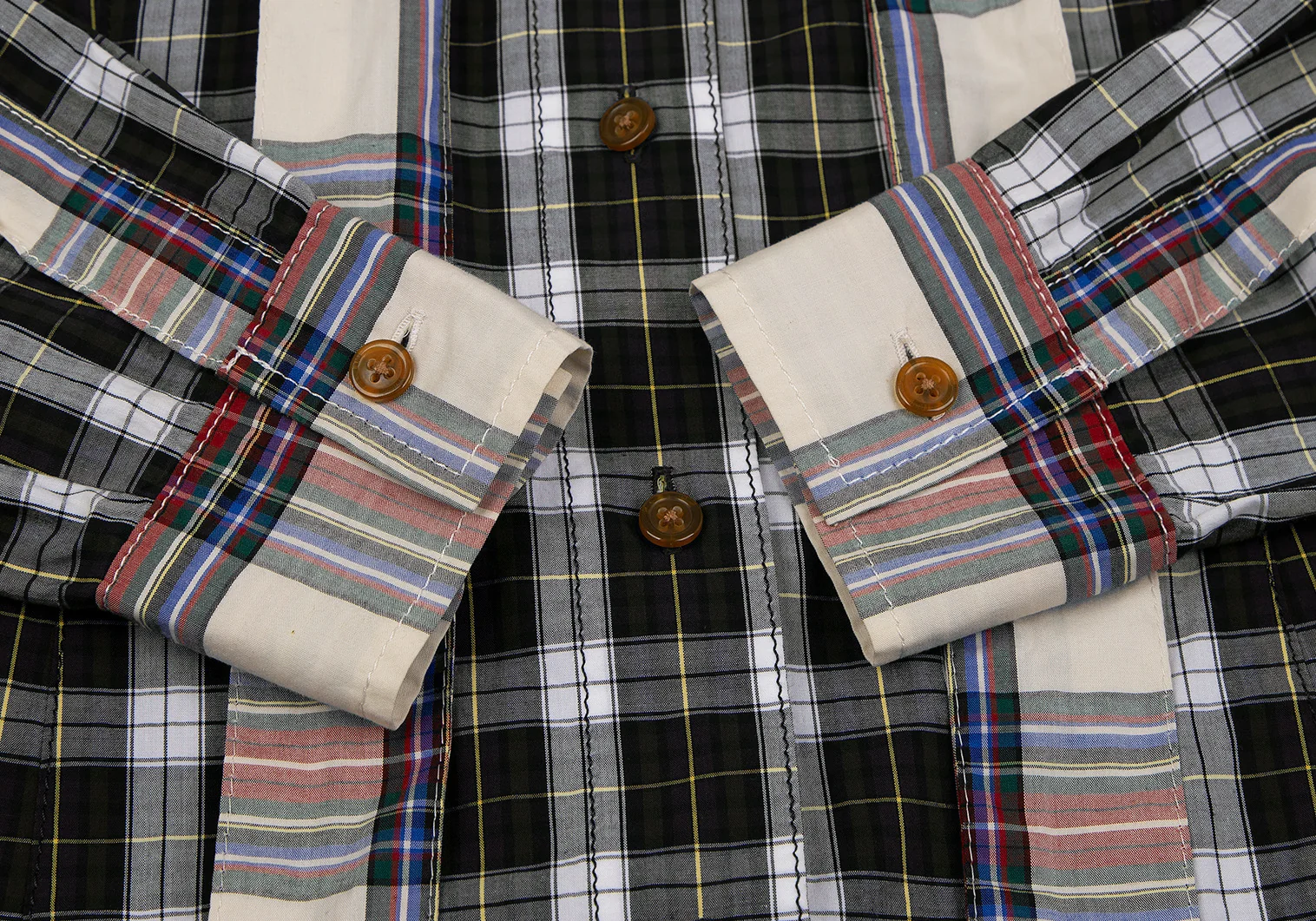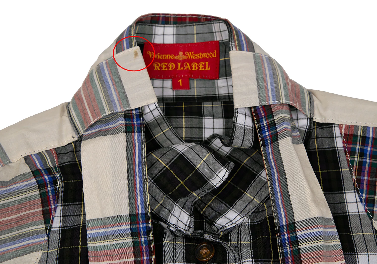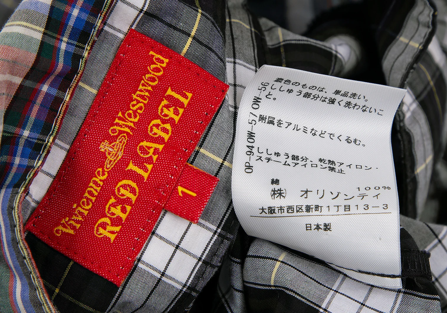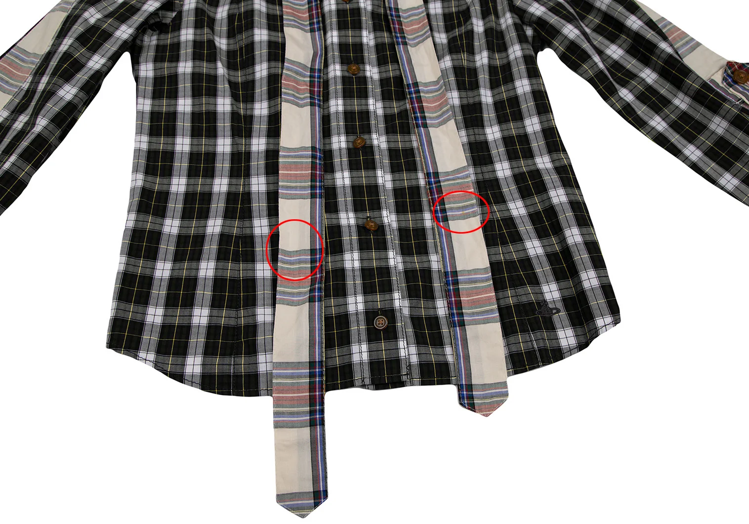 ヴィヴィアンウエストウッド レッドレーベルVivienne Westwood Red Label チェック切替リボンブラウス 白緑他1