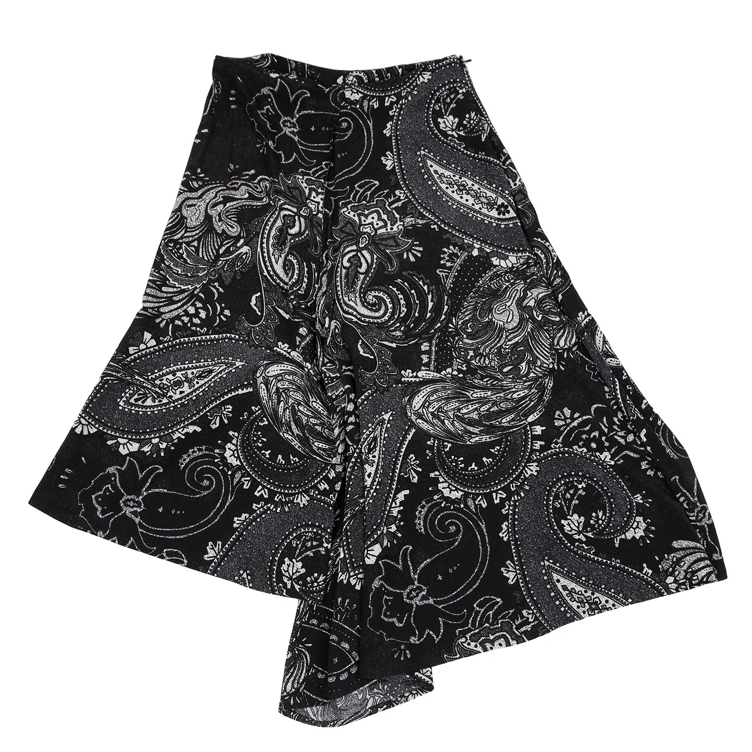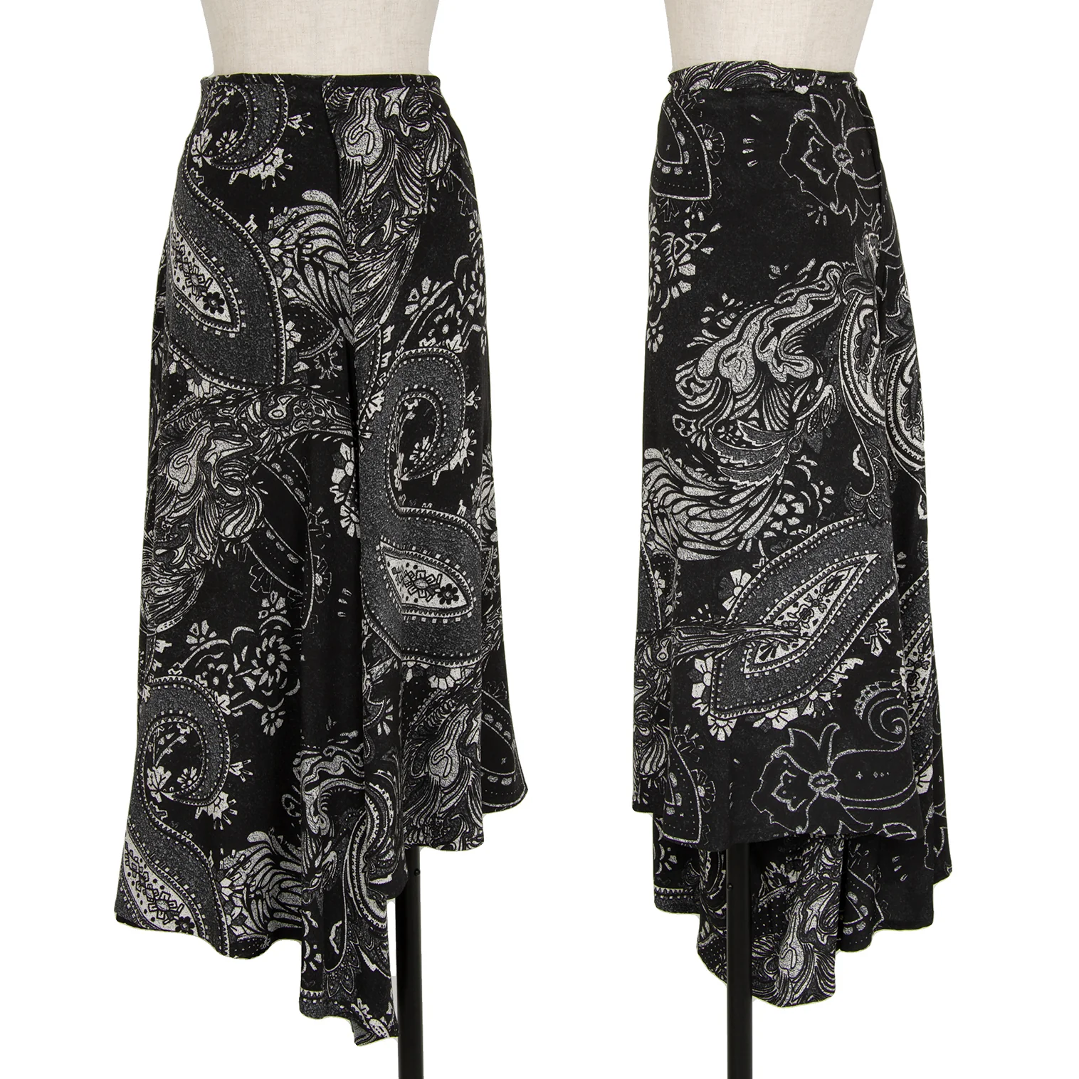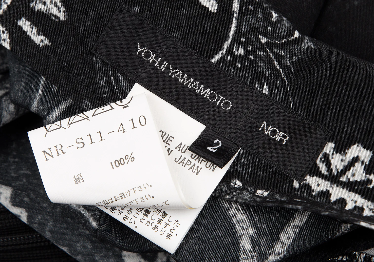ヨウジヤマモト ノアールYohji Yamamoto NOIR ペイズリープリントシルクアシンメトリースカート 黒2