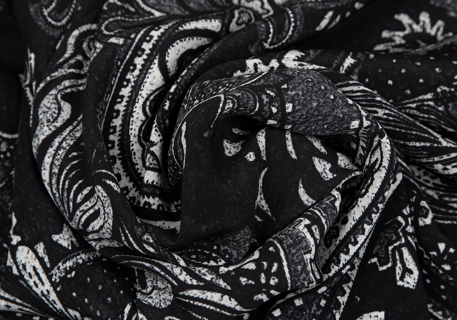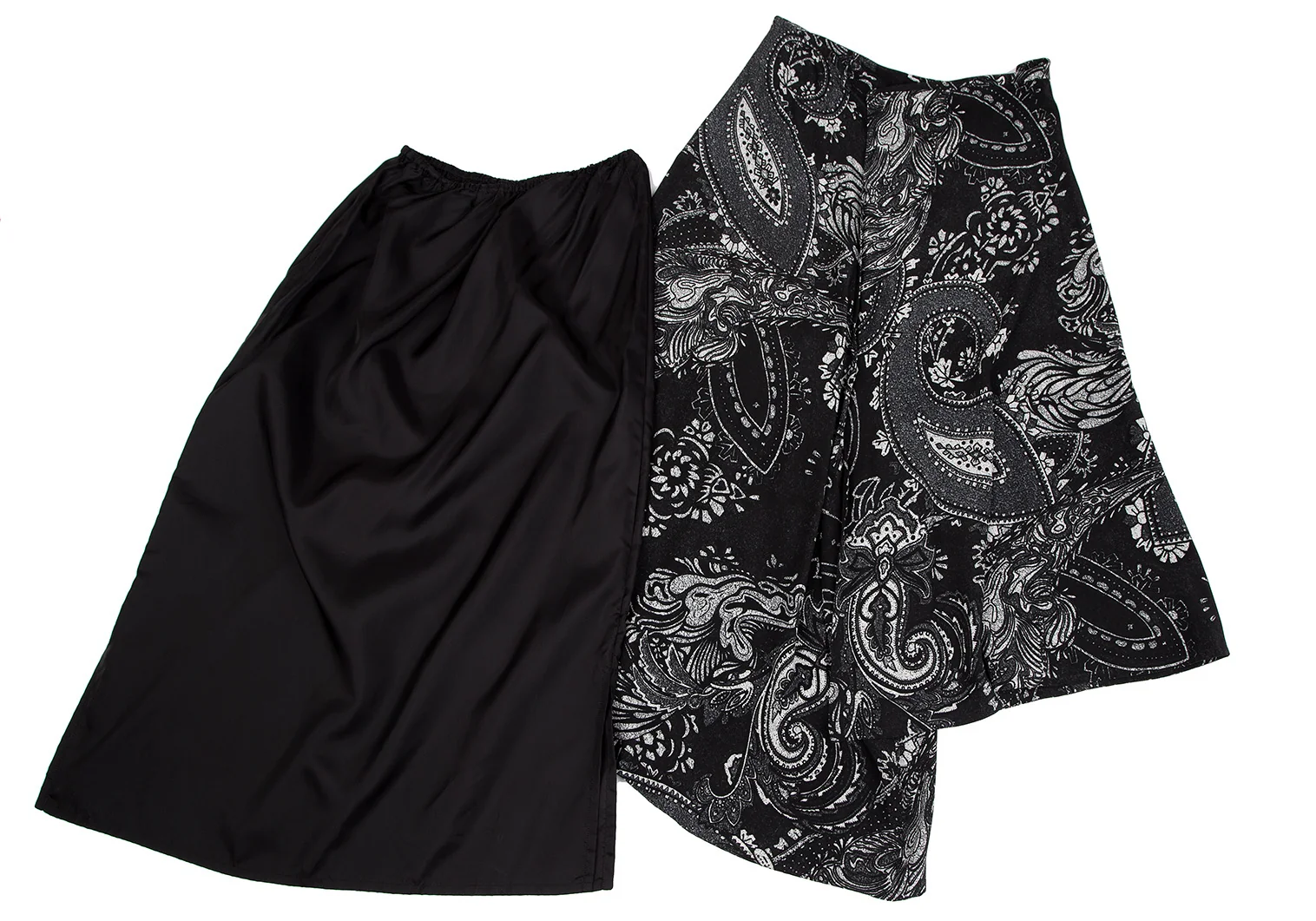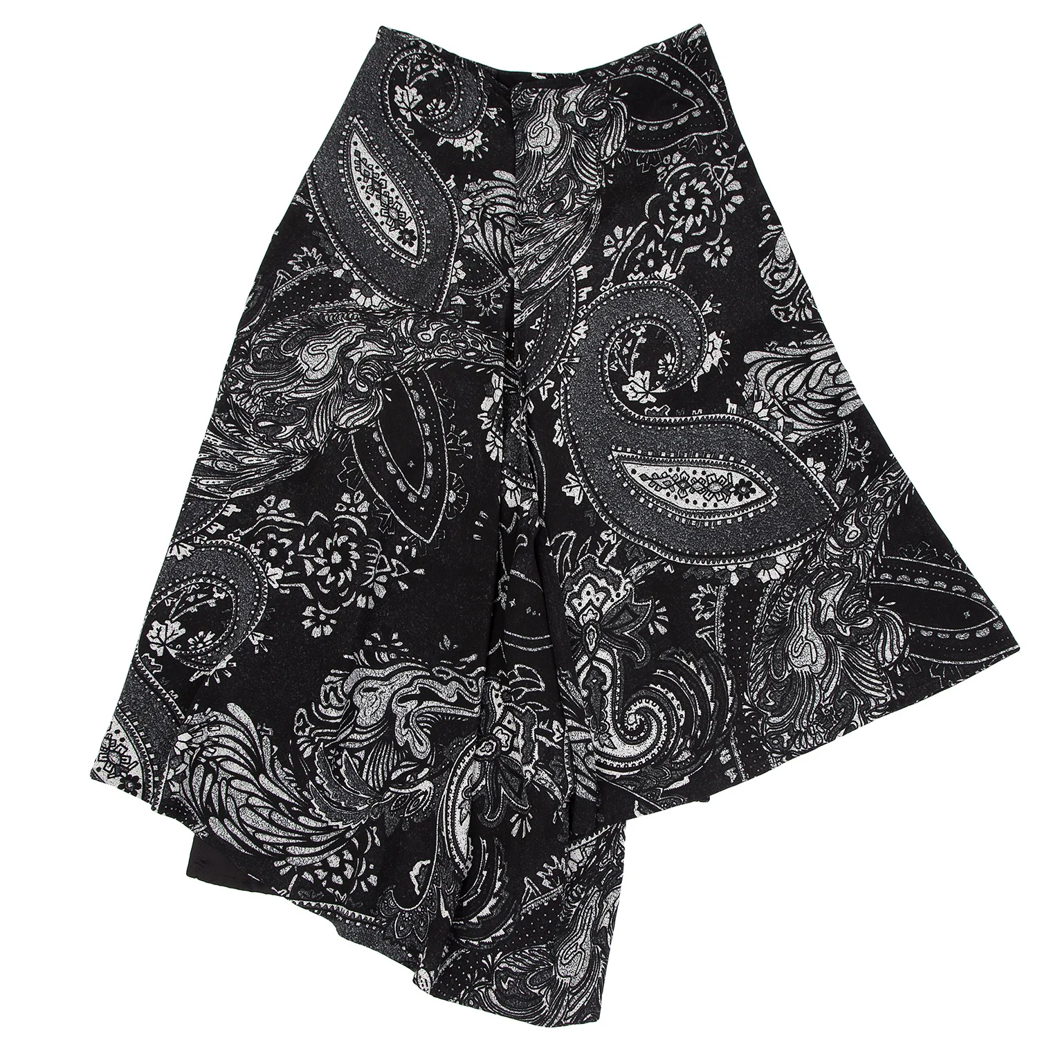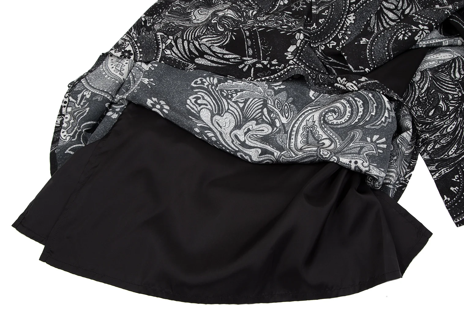 ヨウジヤマモト ノアールYohji Yamamoto NOIR ペイズリープリントシルクアシンメトリースカート 黒2
