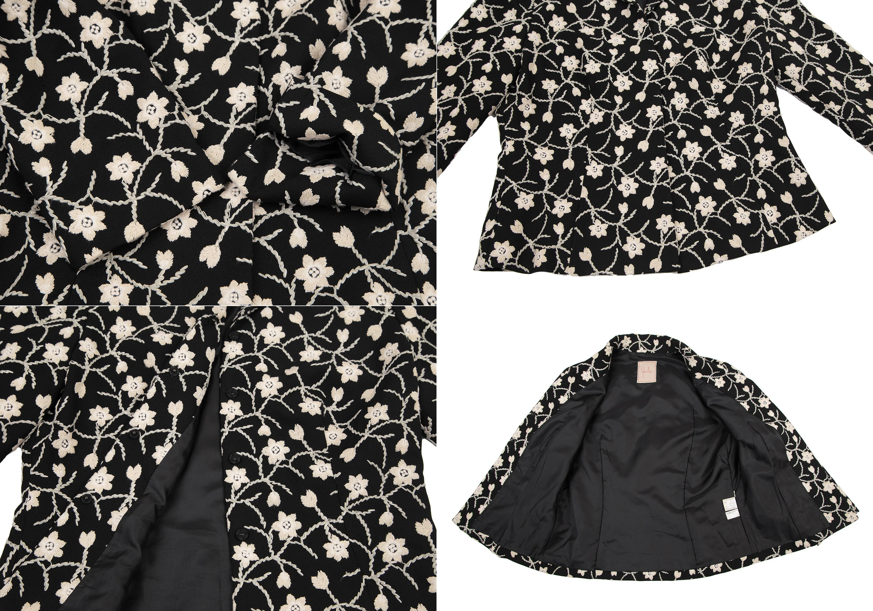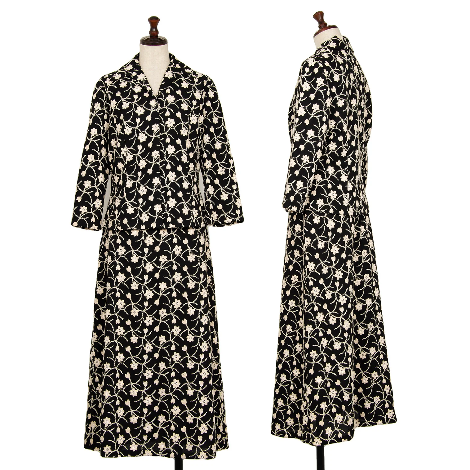 シビラSybilla ボタニカル刺繍セットアップスーツ 黒ベージュL