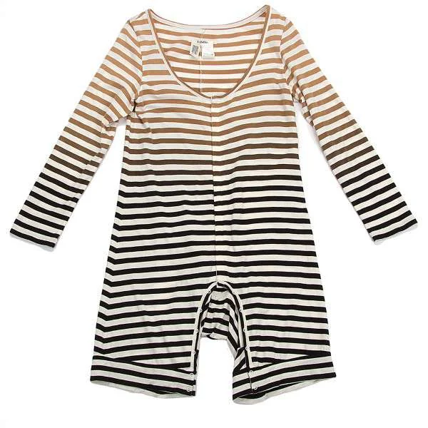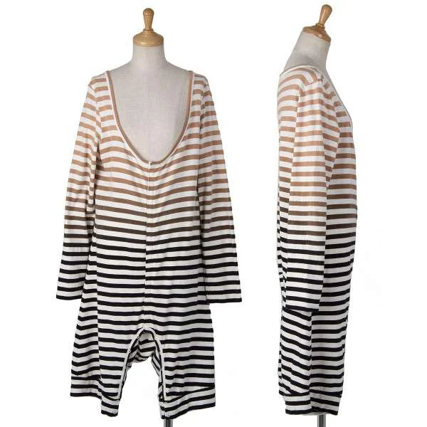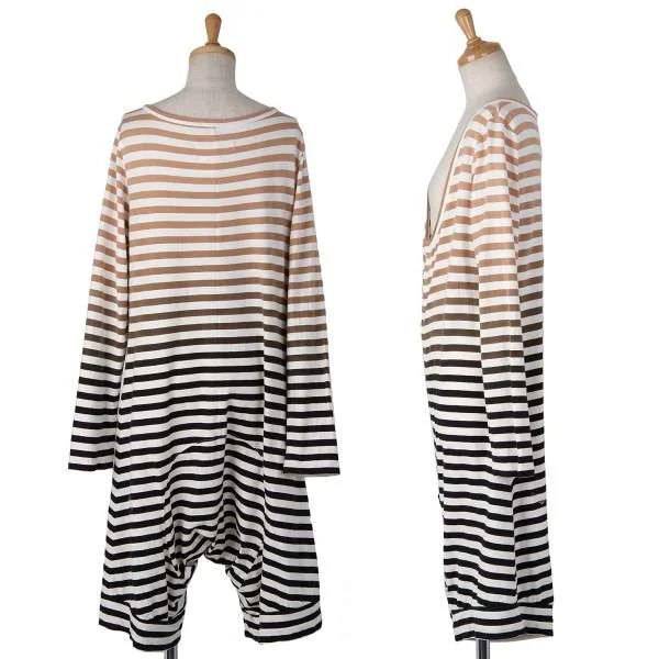リミフゥLIMIfeu  ボーダーグラデーションオールインワン 黒×オフ×ベージュS