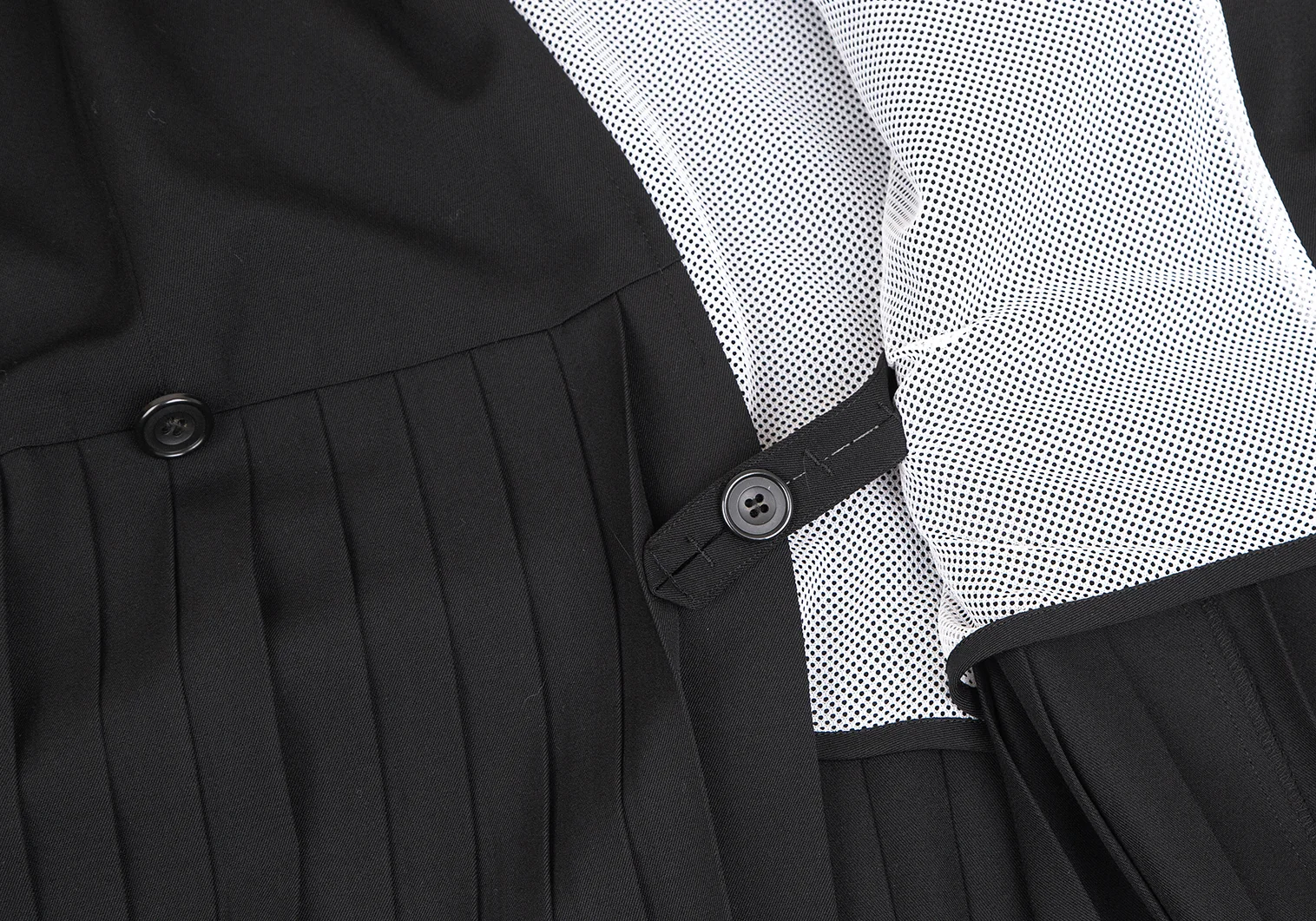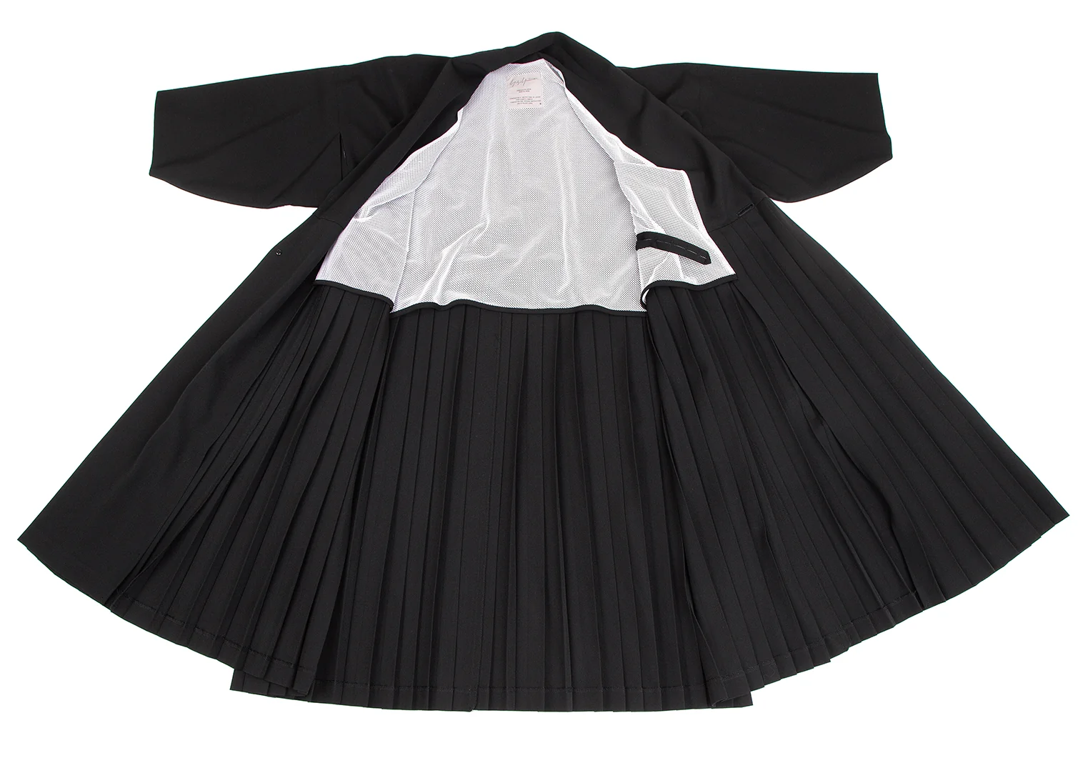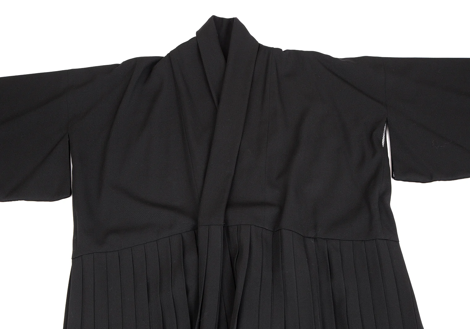 ヨウジヤマモト ファムYohji Yamamoto FEMME 裏メッシュウールギャバプリーツ切替キモノコート 黒S