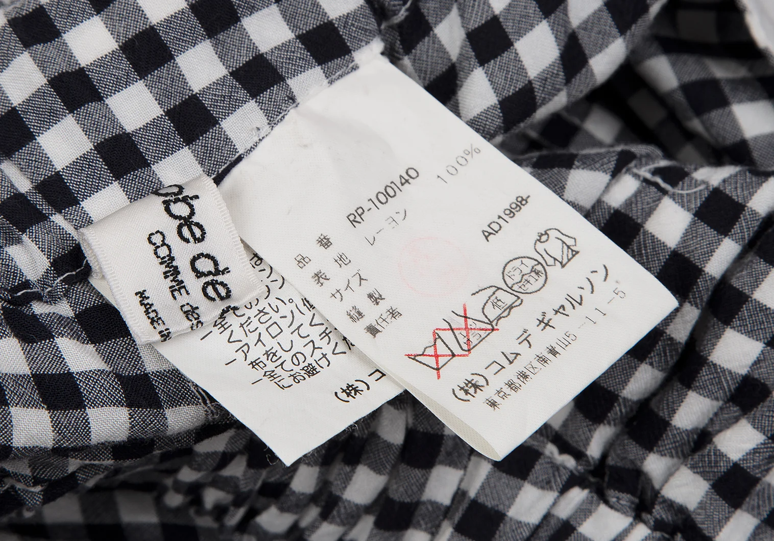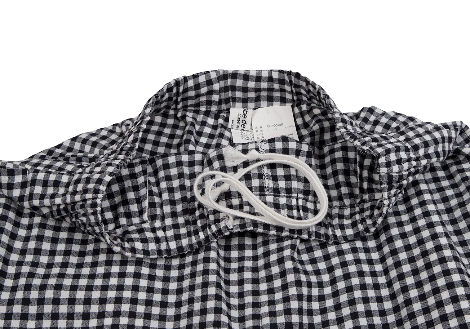 ローブドシャンブル コムデギャルソンrobe de chambre COMME des GARCONS ギンガムチェックレーヨンサルエルパンツ 白紺S位