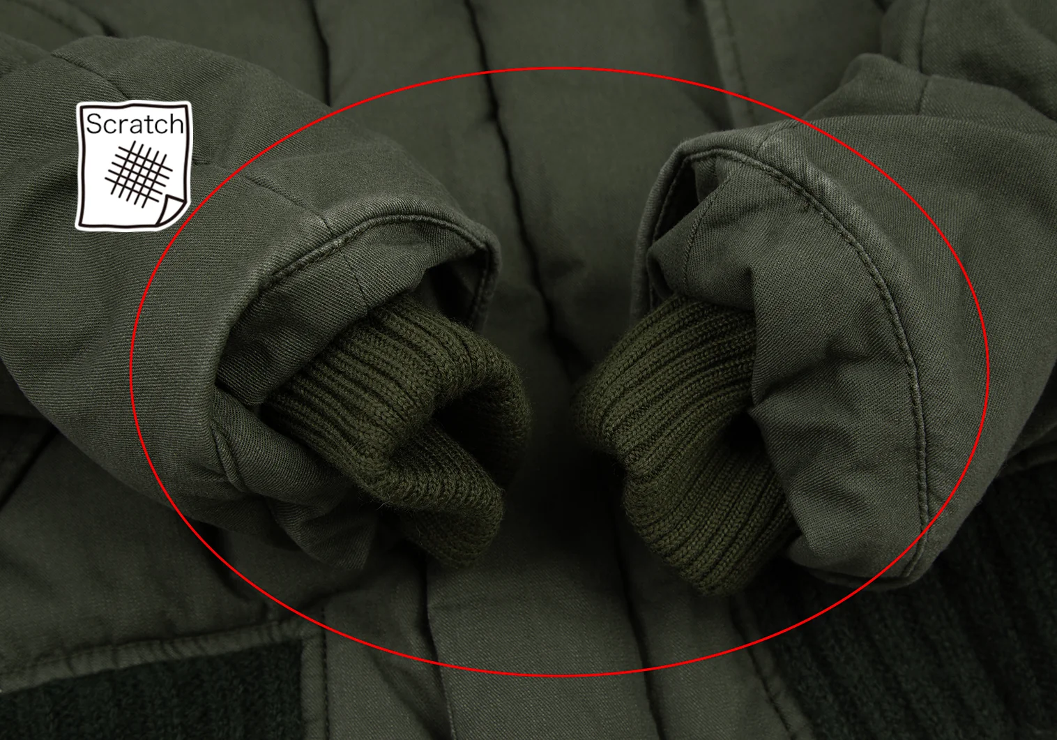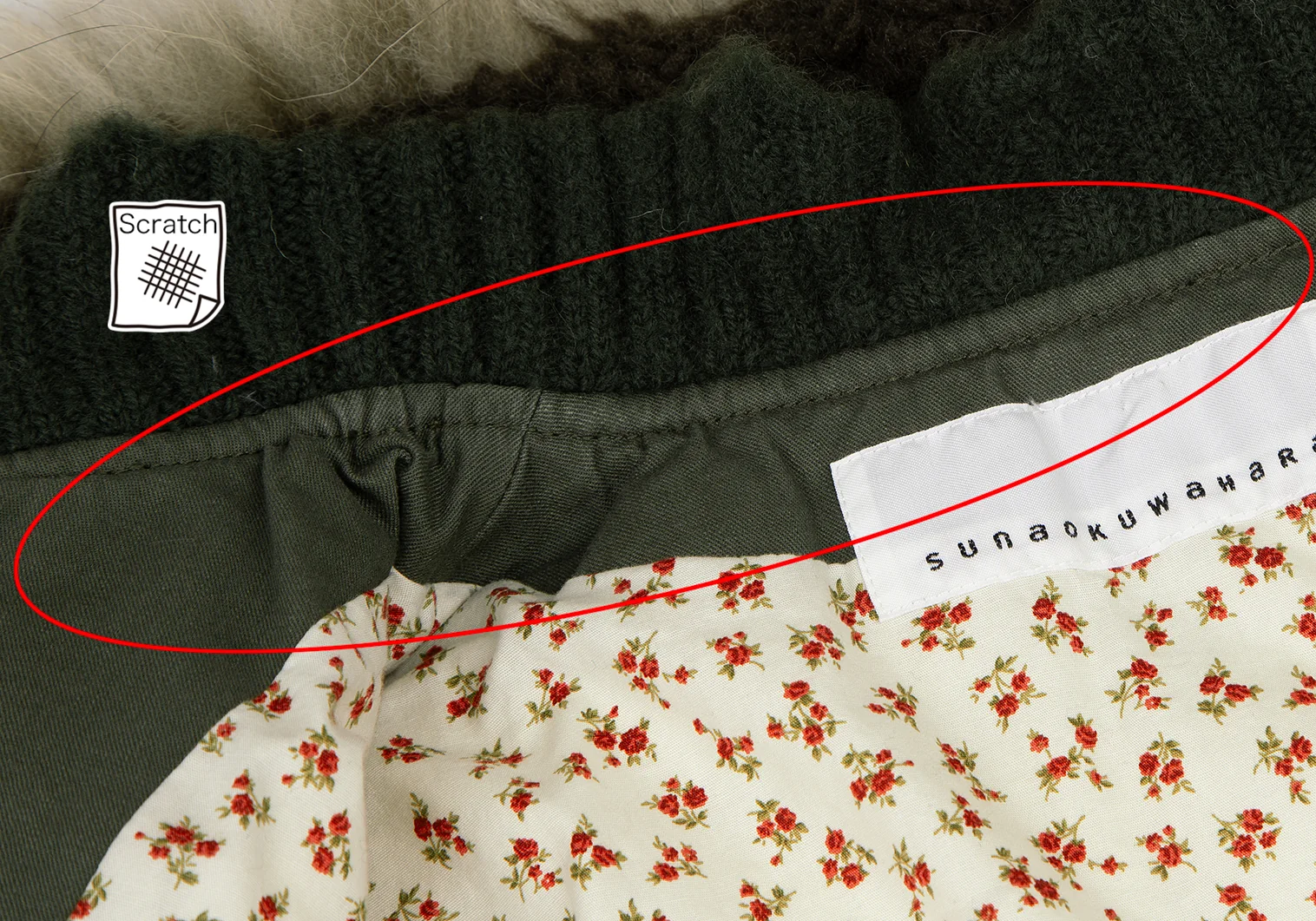 袖先・首裏の一部に擦れがあります。(写真参照)その他目立ったシミ、汚れ、ほつれ等なくいい状態です。クリーニング済み