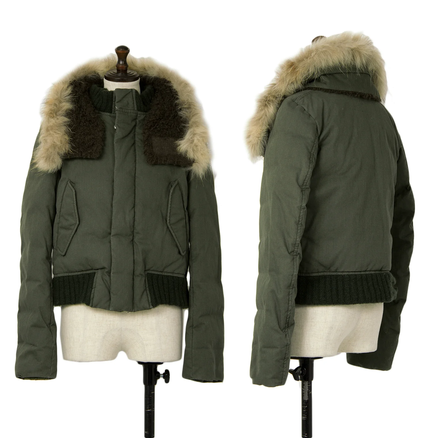 スナオクワハラsunaokuwahara ラクーンファーカラーダウンジャケット オリーブM