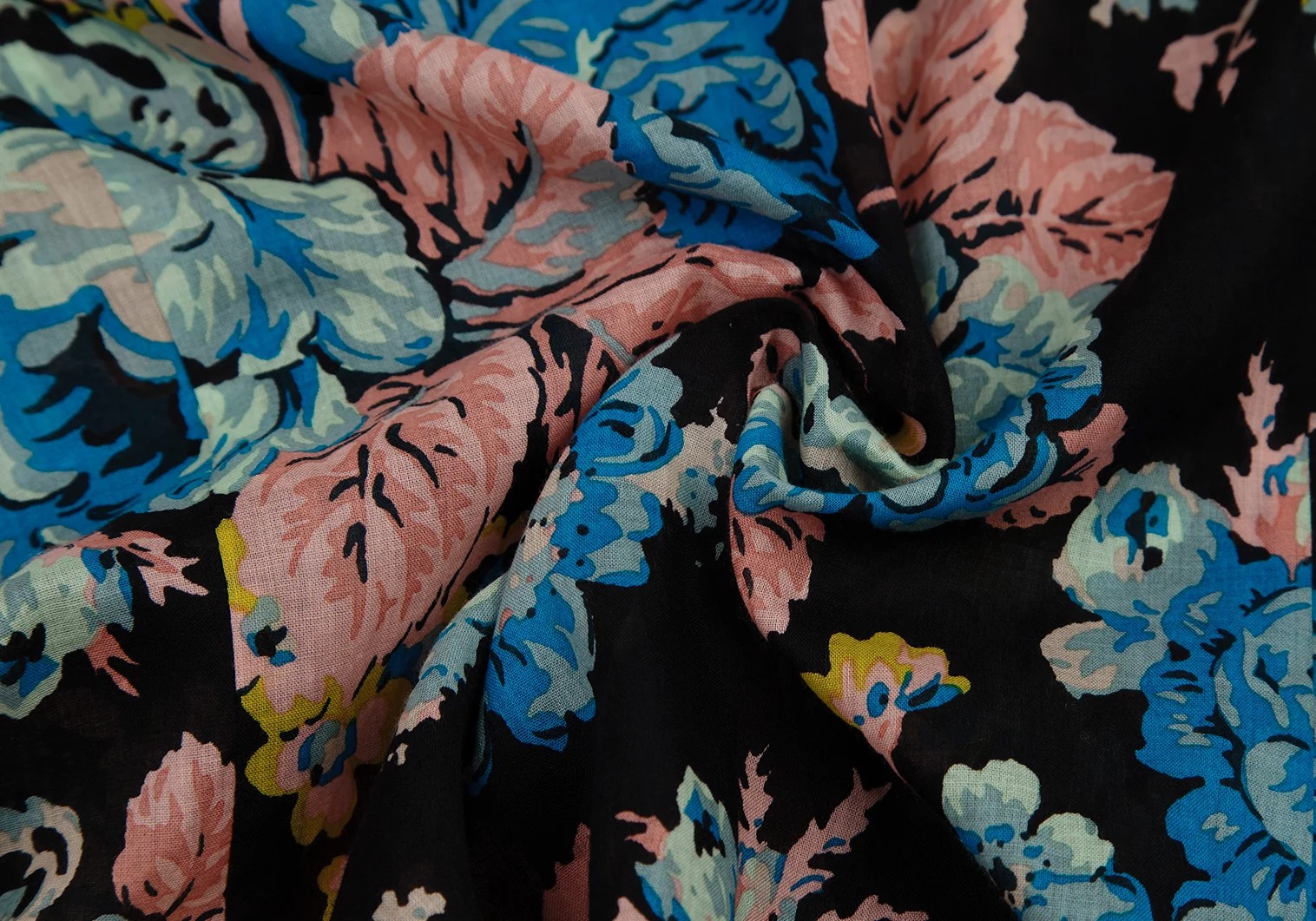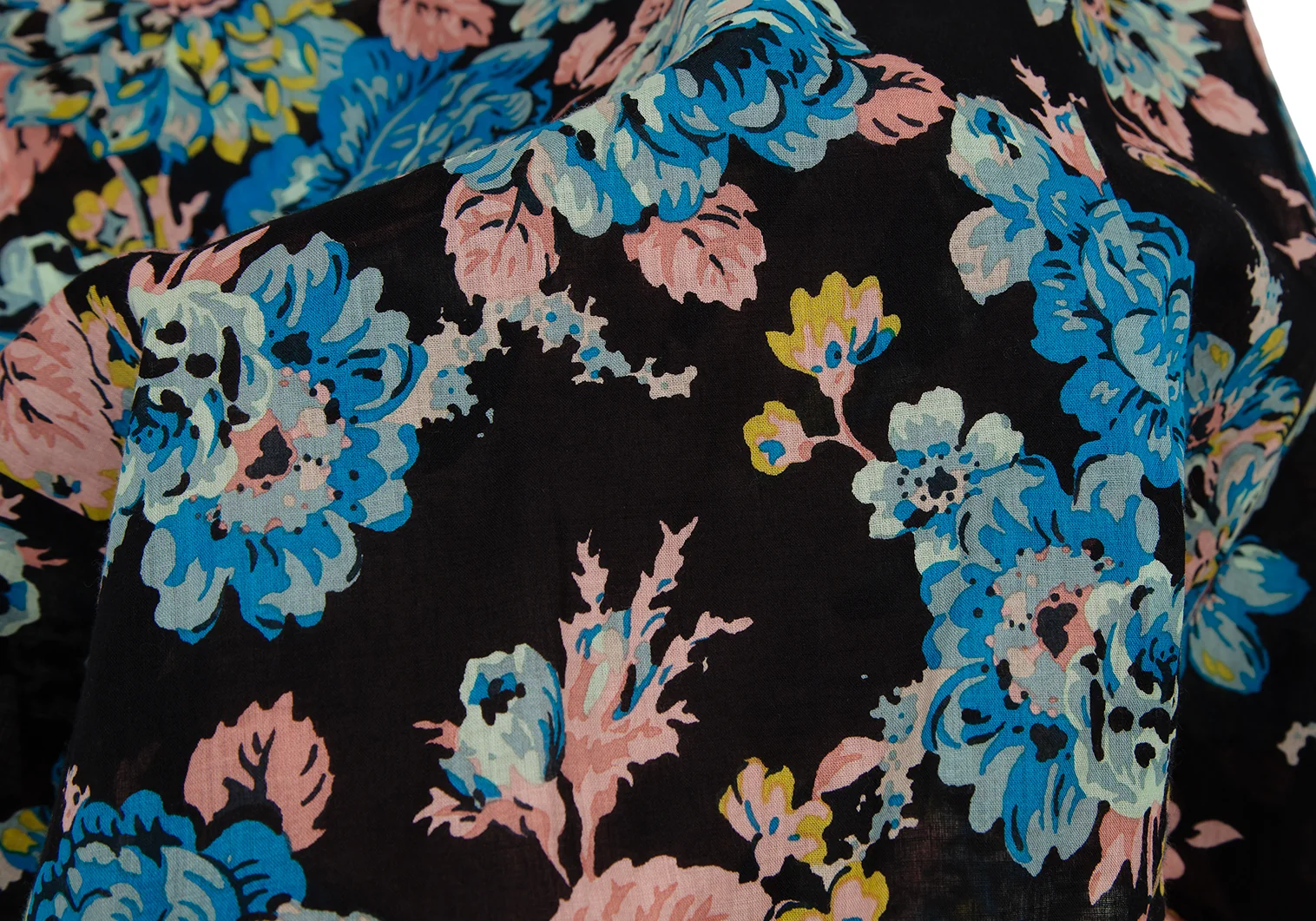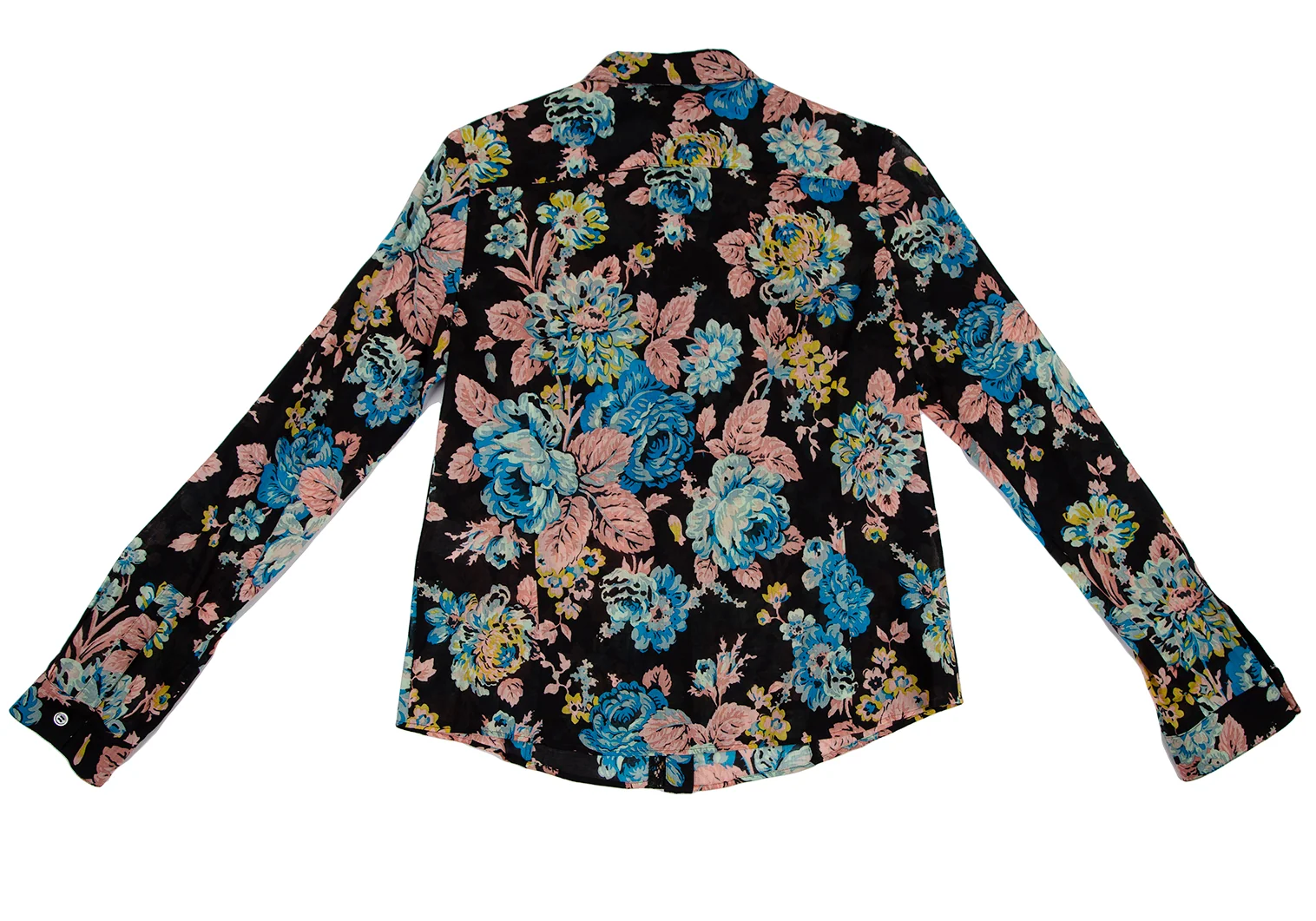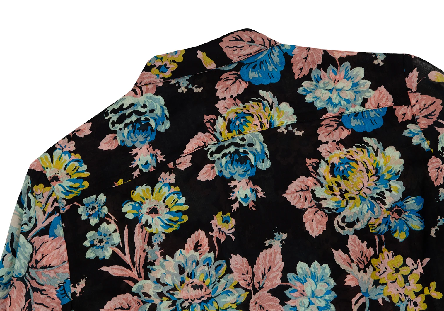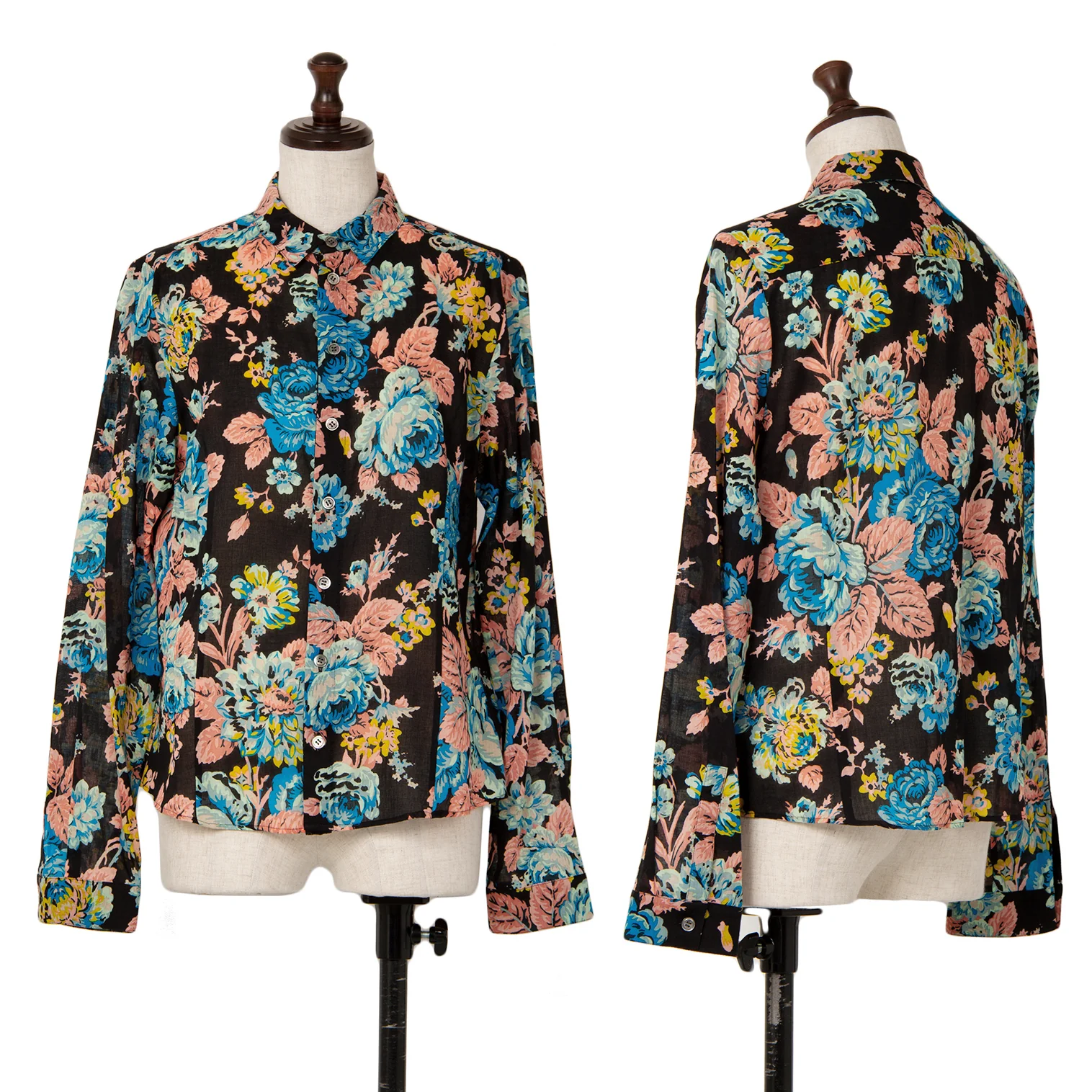 スナオクワハラsunaokuwahara レースフロント切替コットンボタニカルプリント長袖シャツ 黒マルチM