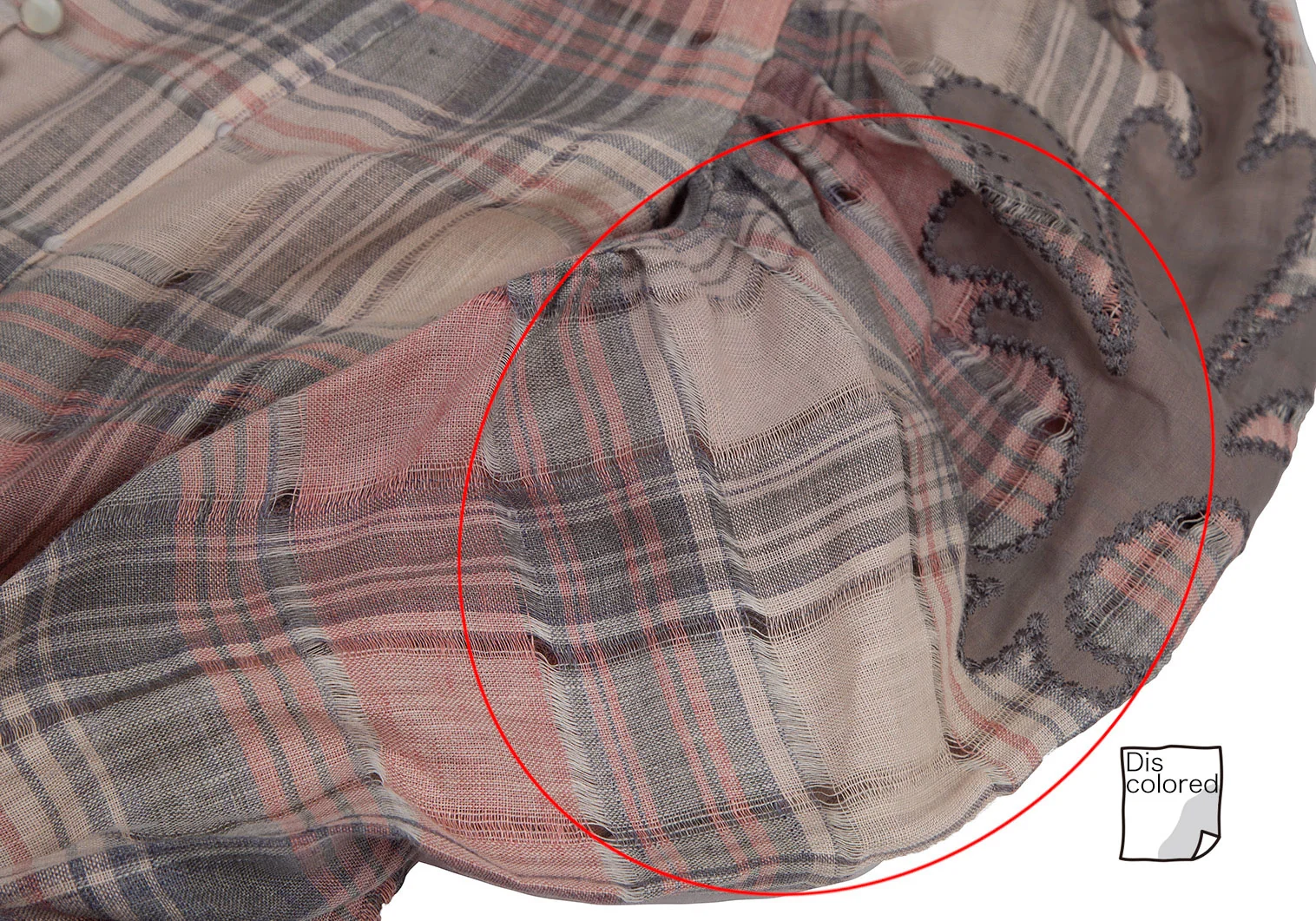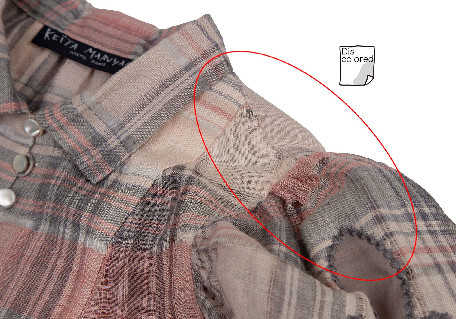 透け感があります。左肩・左袖に若干のヤケがあります(写真参照)。その他目立ったシミ、汚れ、ほつれ等はありません。クリーニング済み