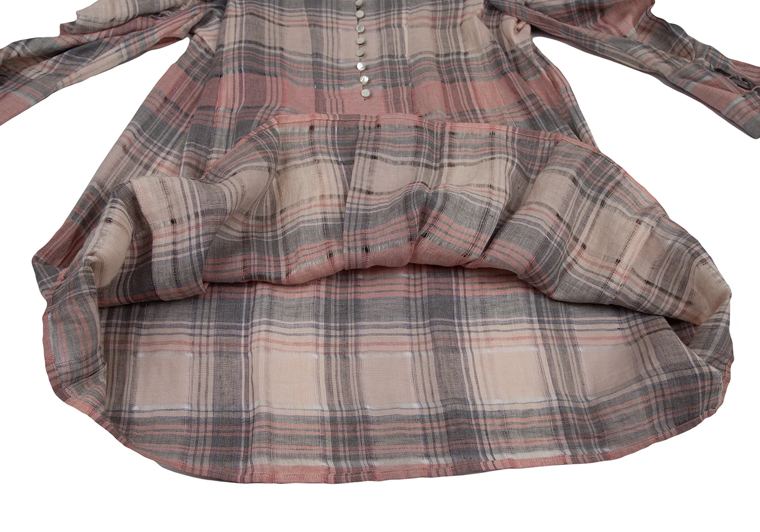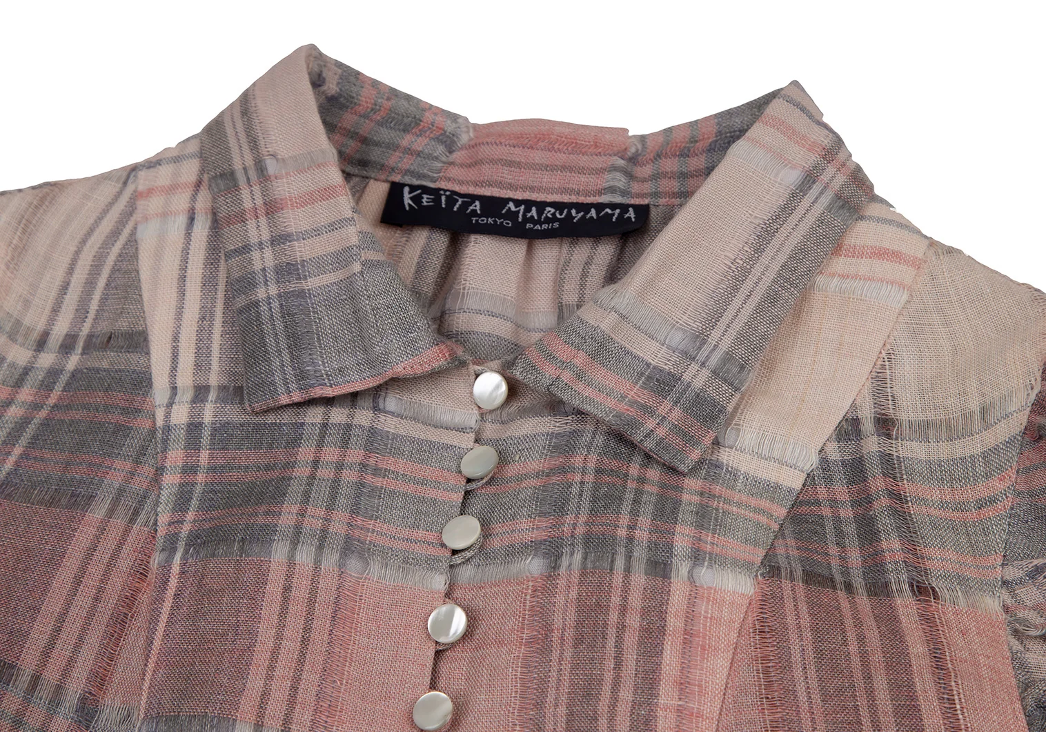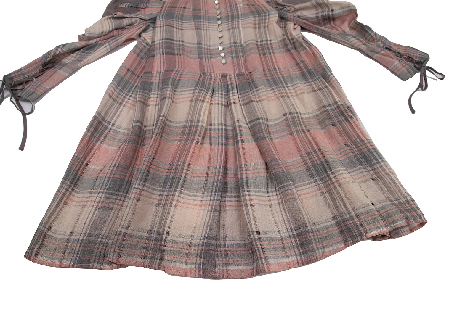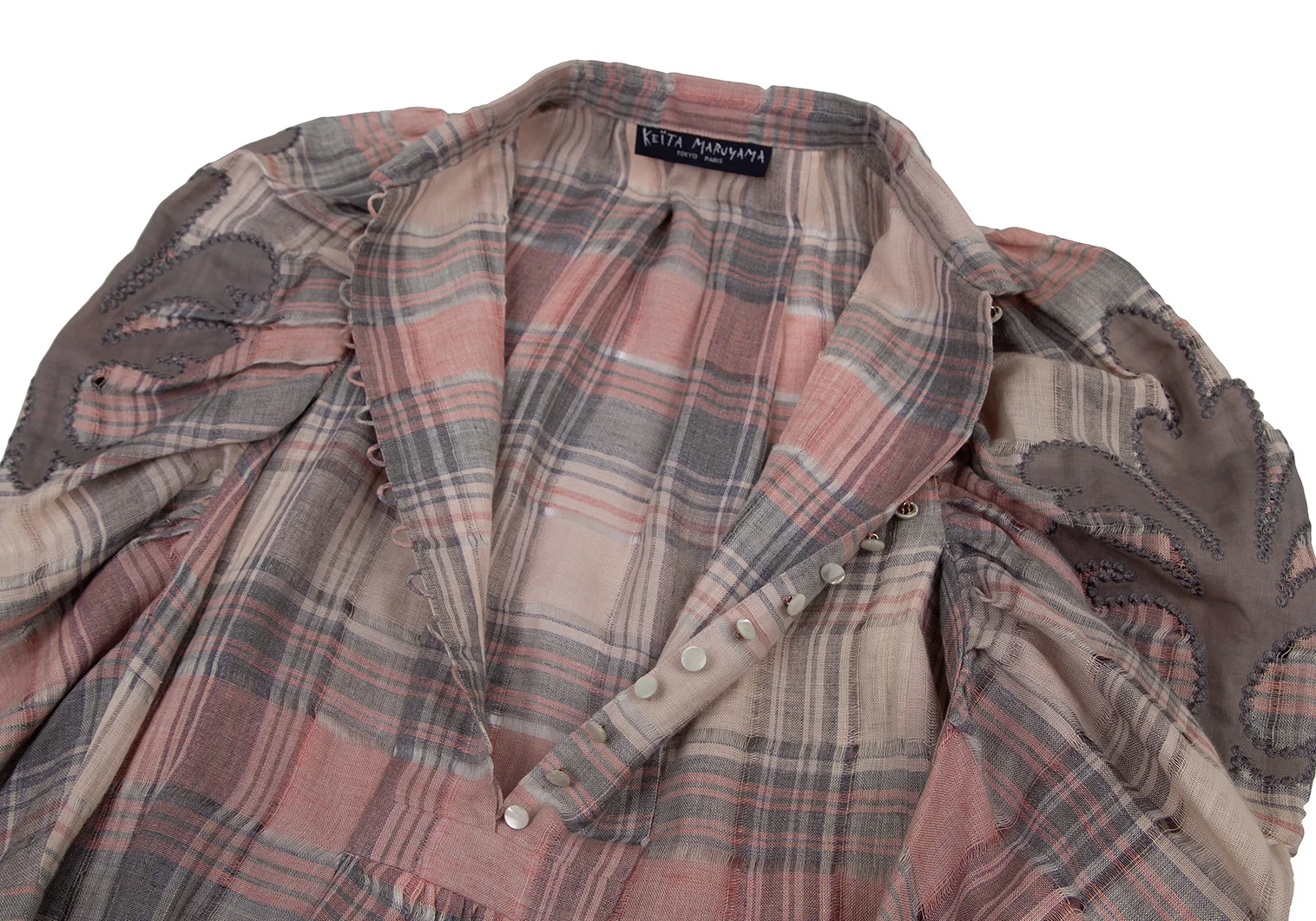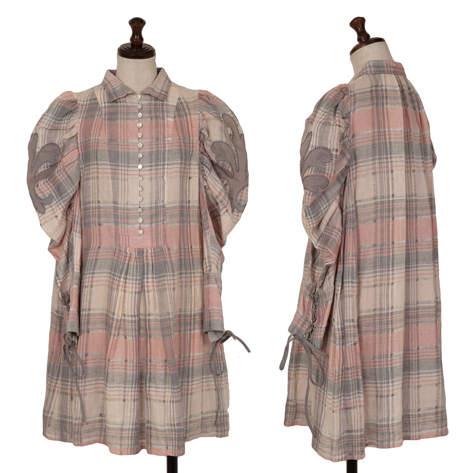 ケイタマルヤマKEITA MARUYAMA チェックギャザースリーブプルオーバーシャツワンピース ベージュピンク1