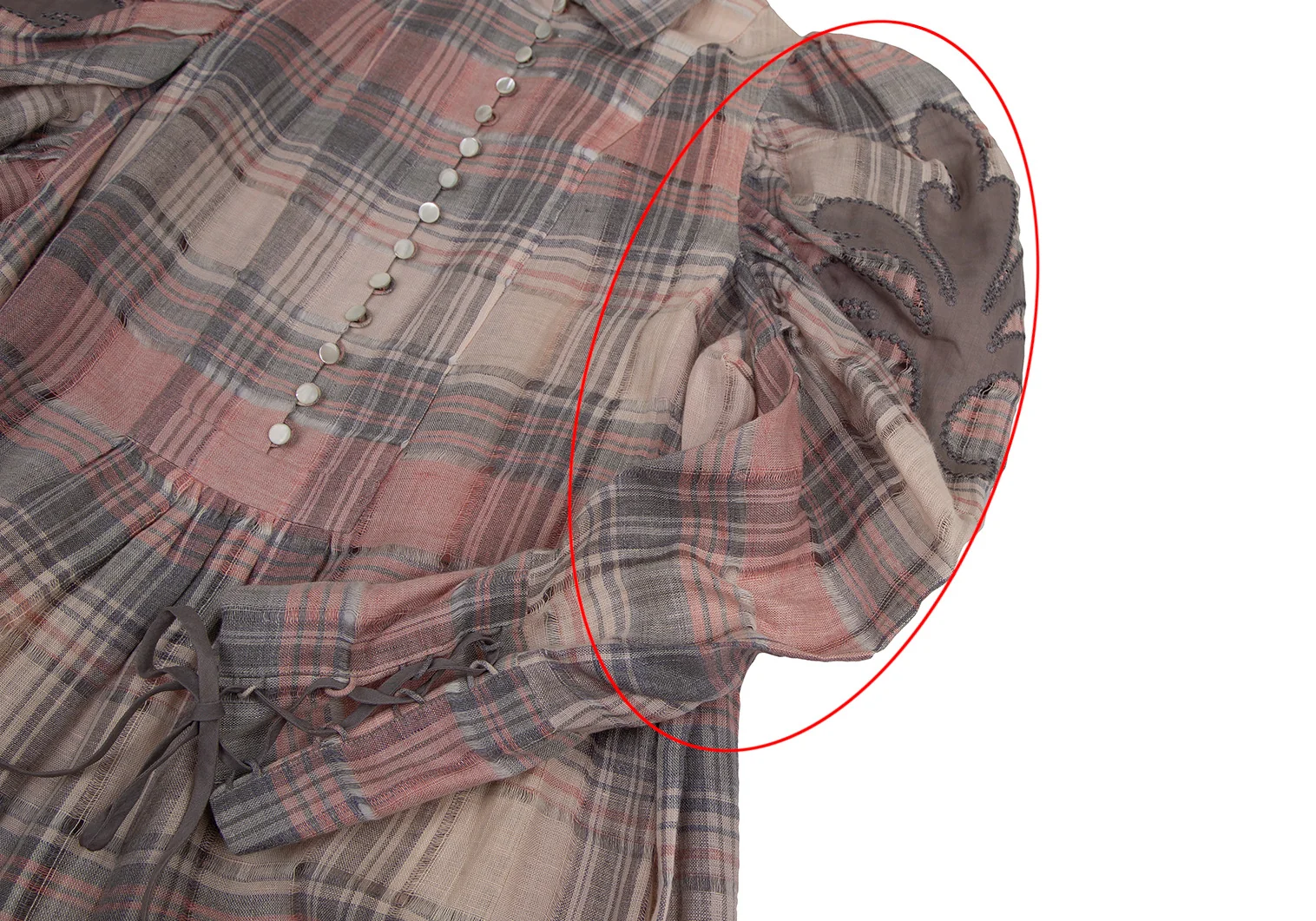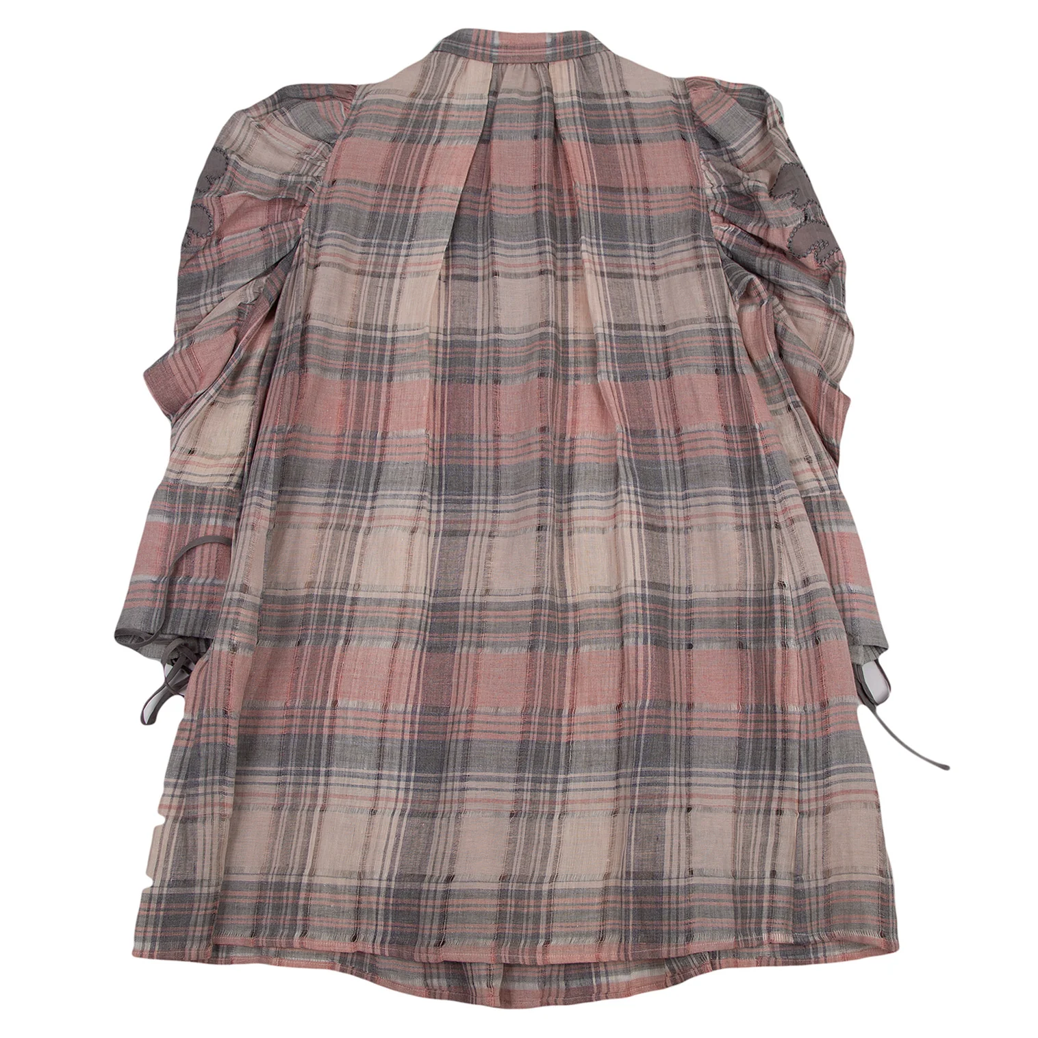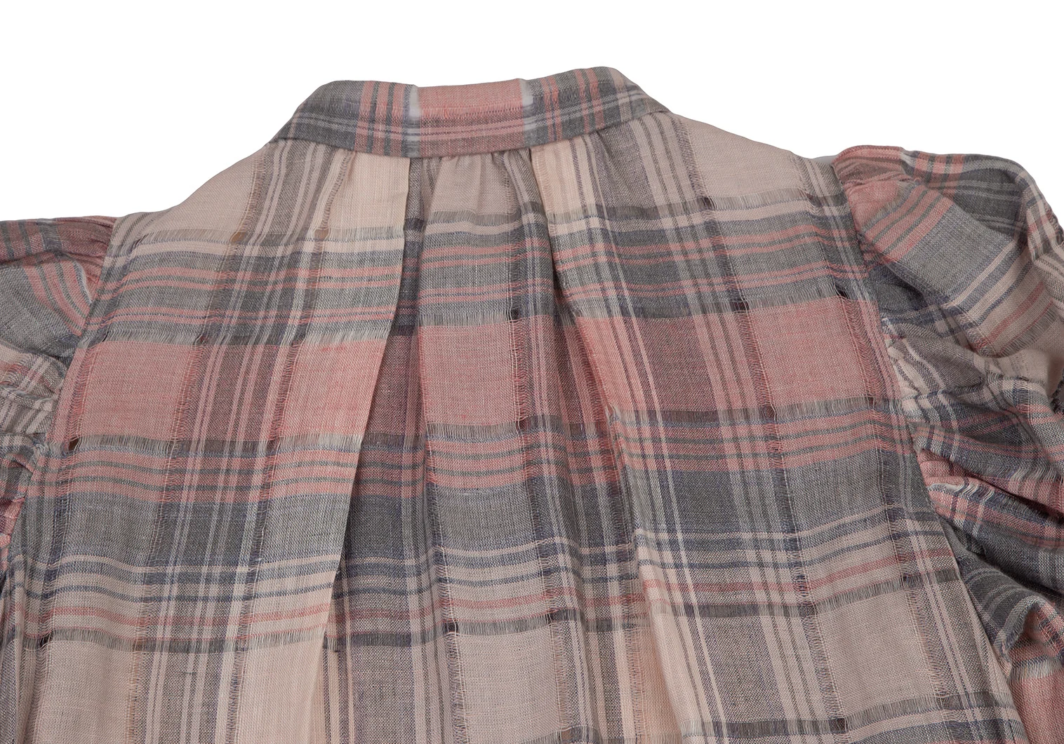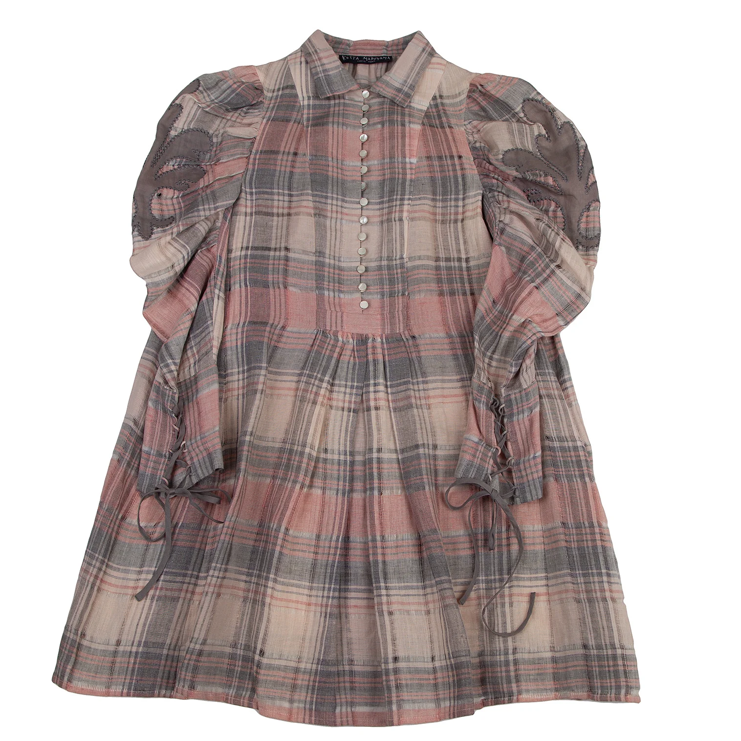 ケイタマルヤマKEITA MARUYAMA チェックギャザースリーブプルオーバーシャツワンピース ベージュピンク1
