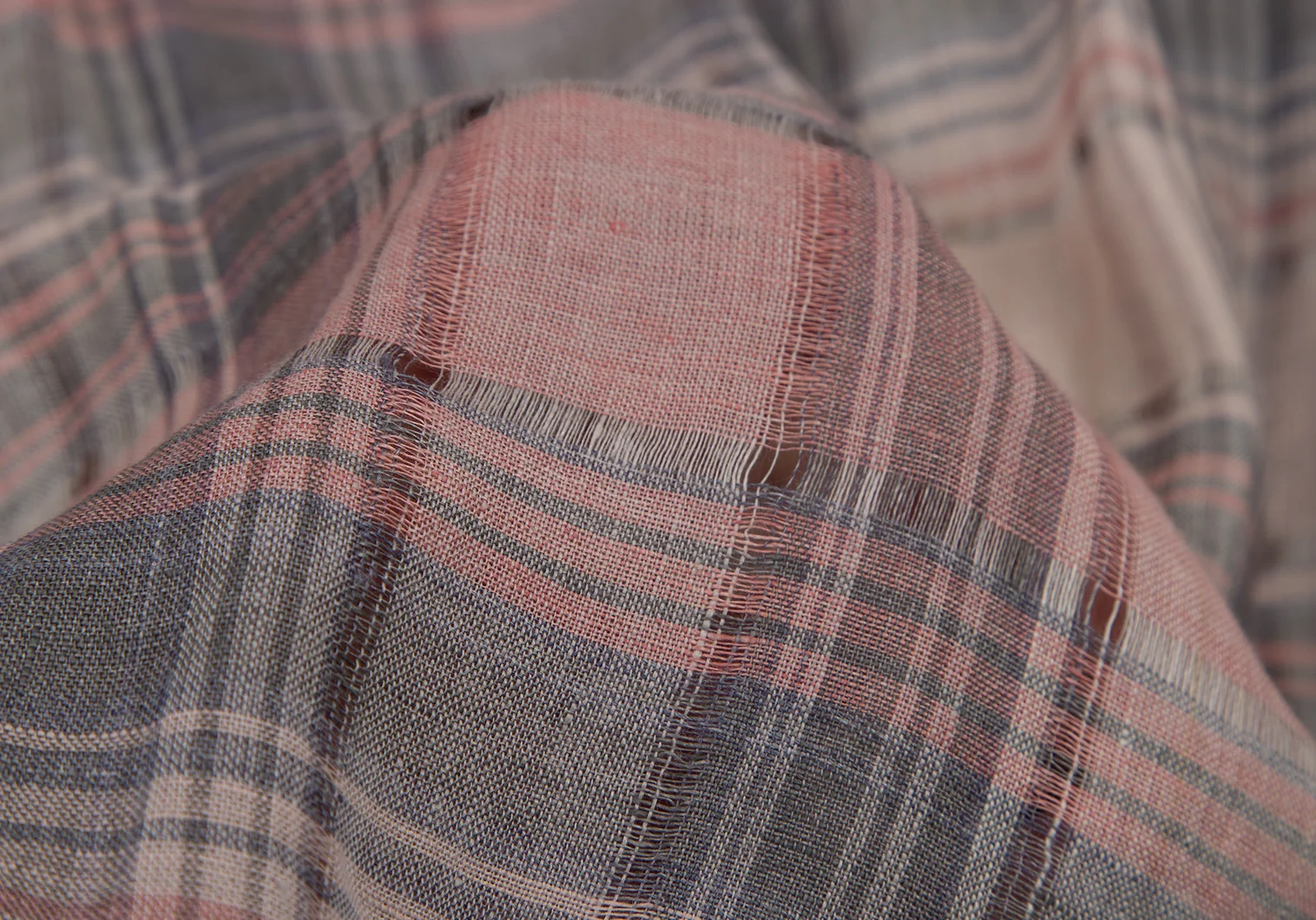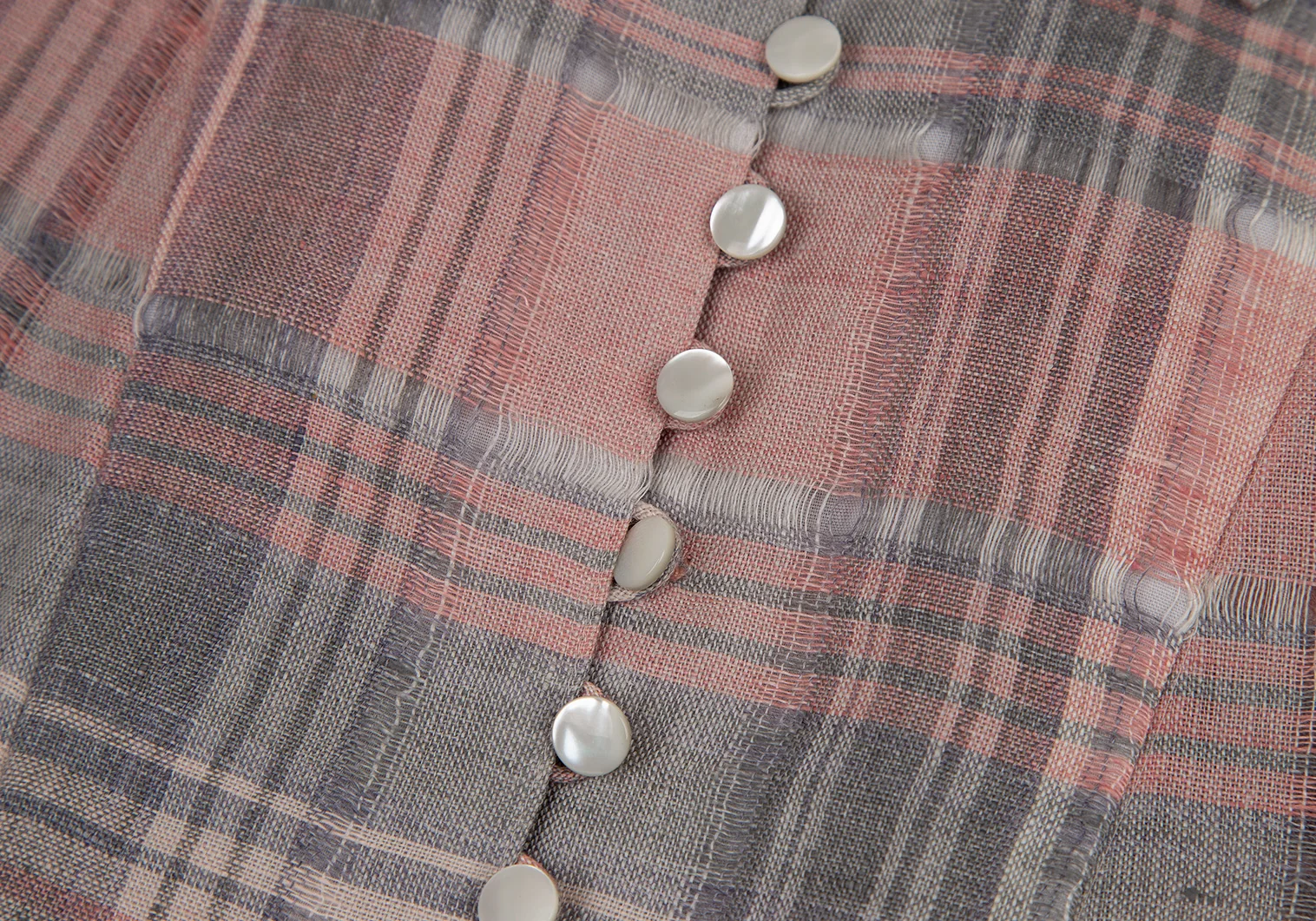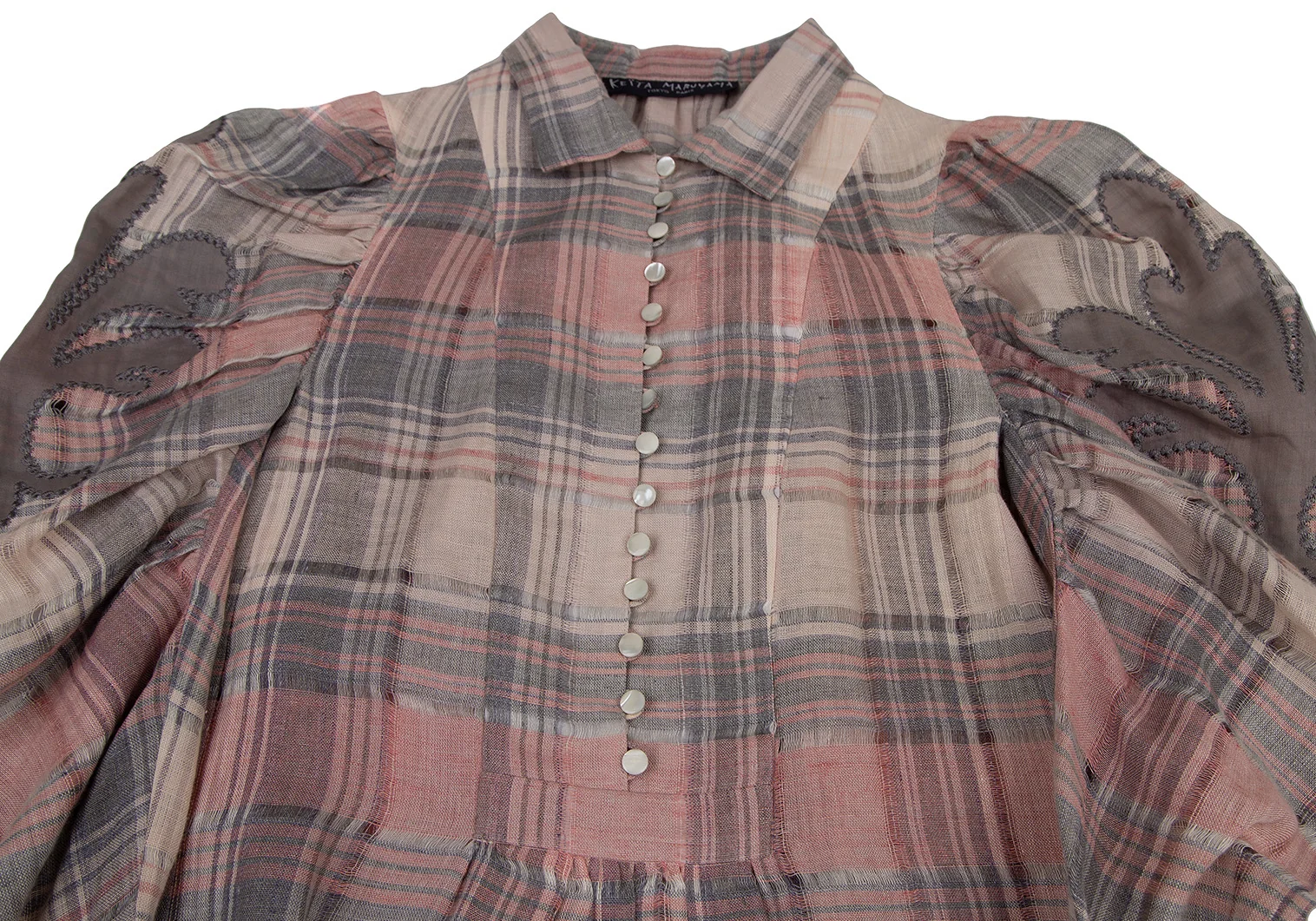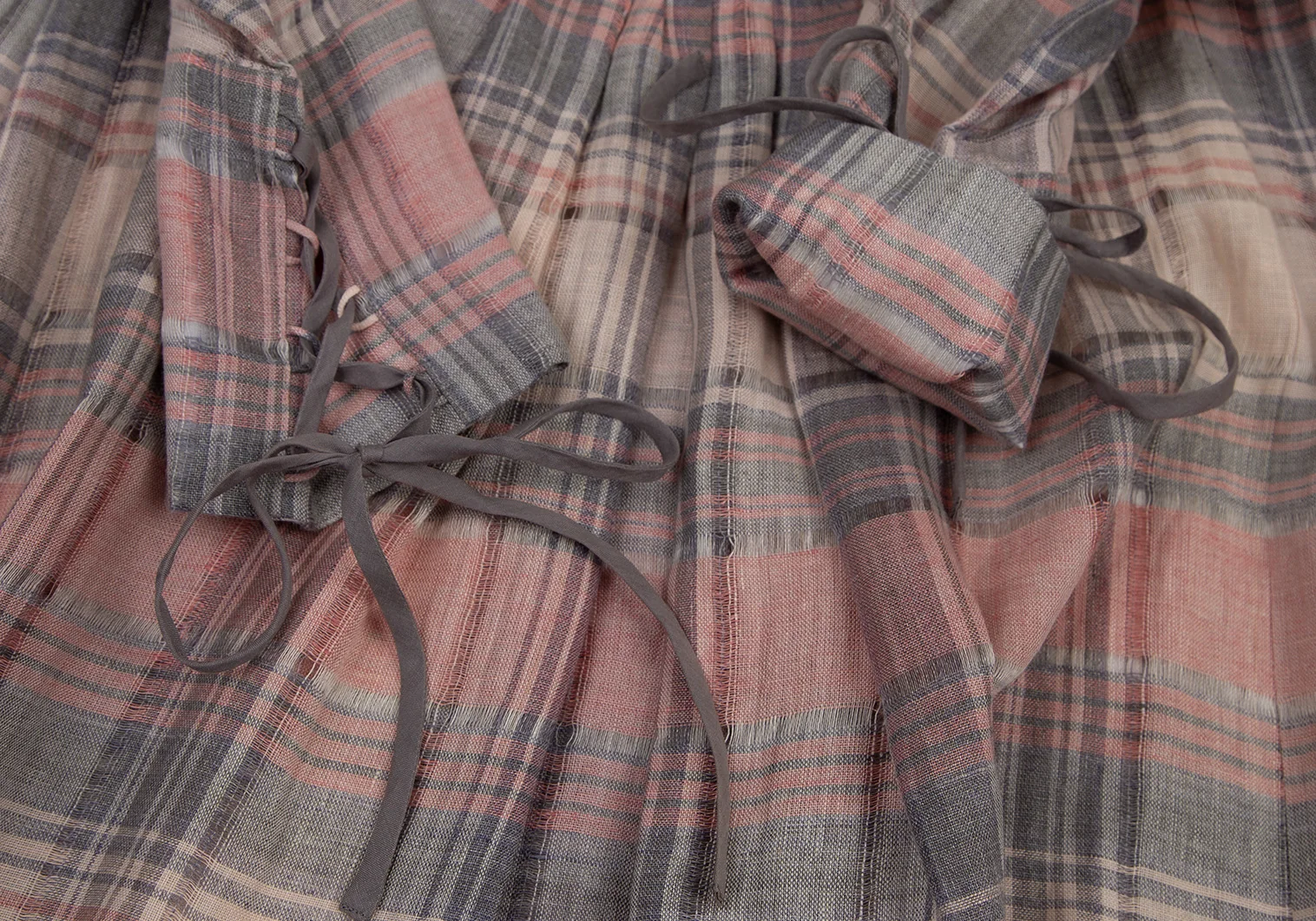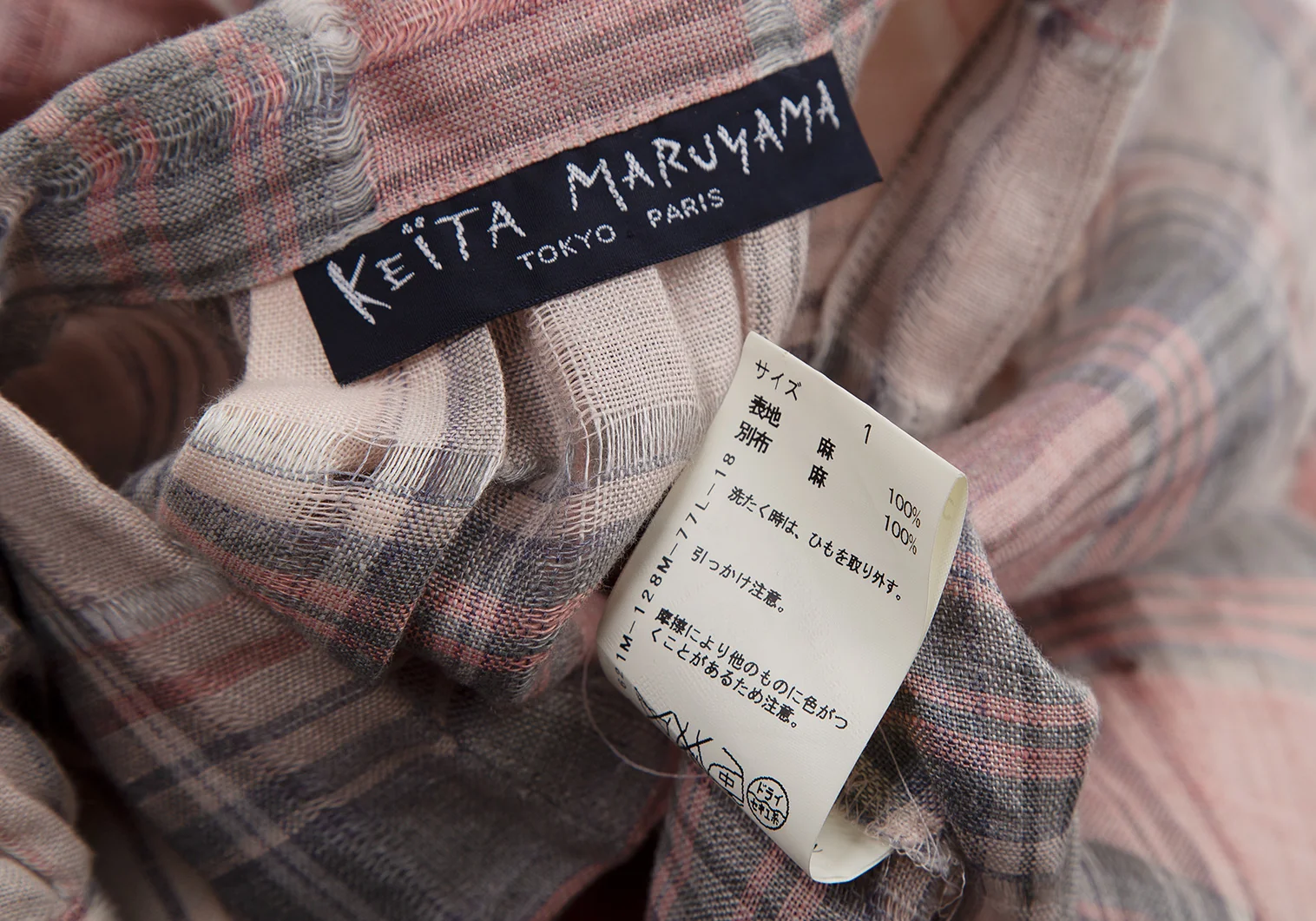 ケイタマルヤマKEITA MARUYAMA チェックギャザースリーブプルオーバーシャツワンピース ベージュピンク1