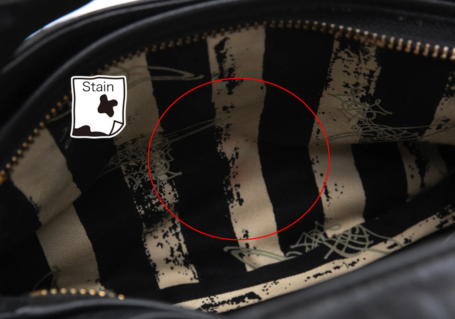 底にわずかにスレ、内側にシミ、ジップ内側に色移りがあります(写真参照)その他目立った傷や汚れなどなくいい状態です。